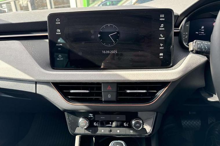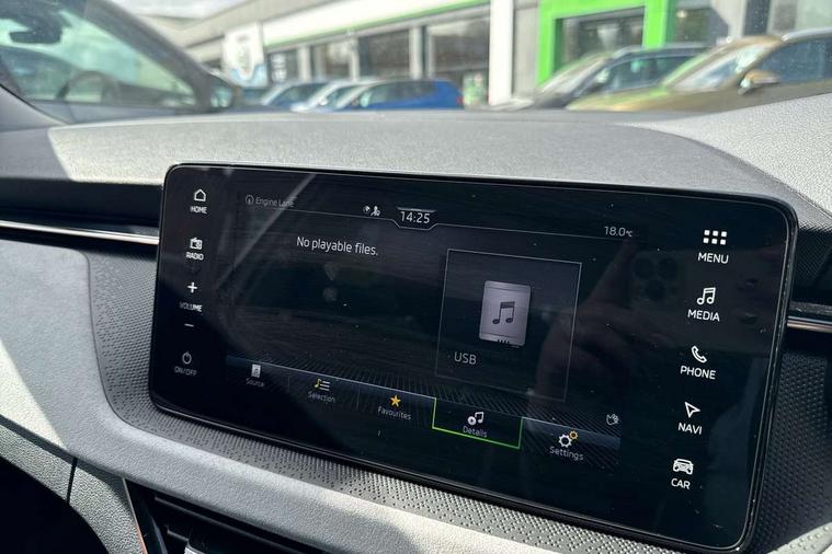 Advanced driver attention and drowsiness monitor, Bluetooth, e-Call (emergency call), Front assist system, PAS, Rear parking sensors, Speed limiter, Tailgate, Traffic sign recognition, Virtual Cockpit - 10.25" digital display, Voice control system, Wireless smartlink, 4 USB C ports, 8 Speakers, 9.2" Skoda navigation display, DAB radio, Auto dimming rear view mirror, Automatic headlamp activation with Coming home and Leaving home feature, Automatic high/low beam, Automatic intermittent wipers, Body colour bumpers, Body colour door mirrors and handles, Chrome moulding around grille, Chrome window frames, Front and rear electric windows, Heated rear window, LED 3rd brake light, LED brake lights, LED daytime running lights, LED front turning lights, LED high beam, LED low beam, Light sensors, Privacy glass, Rear LED fog light, Rear side wing doors, Rear wiper, Tinted windows, 12V socket in luggage compartment, 3 seat bench in 2nd row, Ambient lighting in white/red, Black / Copper armrest stitching, Cargo elements, Chrome inner door handles, Copper hotstamping, Door inserts in accent black, Driver and passenger sun visors with vanity mirror, Dual zone climate control, Front and rear roof lights, Front centre armrest, Front head restraints, Glasses storage in roof liner, Height adjustable driver seat, Height adjustable passenger seat, Ice scraper, Illuminated glove compartment, Inner circulation control with pollen filter, ISOFIX for front passenger seat, Isofix preparation for back seats, Leather gearknob and handbrake lever, Lodge cloth upholstery, Luggage net under rear parcel shelf, Manual lumbar support for front seats, Net package and top tether hooks in boot space, Pearl grey ceiling, Pocket on the back of both front seats, incl. mobile phone pockets, Rear centre armrest, Single front passenger seat, Textile floor mats, Third rear headrest, Ticket holder, Top tether for front passenger seat, Umbrella in driver's door, 3x3 point rear seatbelts, ABS, Child locks, Curtain airbags and front side airbags, Disc brakes, Driver and front passenger airbags, ESP, Hill hold control, Manual leather parking brake, One tone horn, Passenger airbag switch off function, Seatbelt reminder for driver and front passenger, Tyre pressure monitoring system, Anti theft alarm system with interior monitoring, backup horn and towing protection, Anti-theft wheel bolts, Remote central locking with 2 remote folding keys, SAFE function for remote central locking, Decorative inserts,