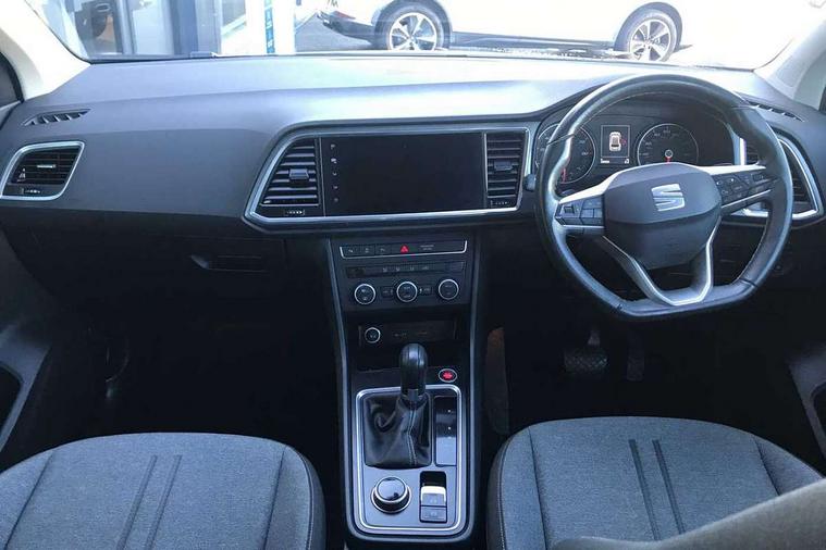 Cruise control system with speed limiter, E-call, Outside temperature gauge, PAS, SEAT drive profile with driving experience button - Normal, Sport, Eco and Individual mode, gearshift, steering and throttle response, Self parking functionality (includes front and rear parking sensors), Trip computer, Wireless full link smartphone integration, Wireless phone charger, Steering wheel mounted audio/phone controls, Black wheel arch surrounds, Body colour bumpers, Chrome front grille frame, Chrome roof rails, Chrome side window trim, Daytime running lights, Door mirrors with welcome light silhouette, Dynamic headlight range control with self adjusting whilst driving, Electric adjustable/heated/folding door mirrors, Front and rear electric windows, Full LED headlamps with lens and LED front fog lamps with cornering function, LED rear tail lights with dynamic indicators, Rear fog lights, Rear side wing doors, Rear wash/wipe, Simulated exhaust pipes, 12v socket in front, 3 seat bench in 2nd row, 60/40 split folding rear seat, Cloth upholstery with front comfort seats, Dual zone climate control, Front and rear head restraints, Front centre armrest, Front seat back storage pockets, Height adjustable driver and passenger seat with lumbar adjustment, ISOFIX points in outer rear seats with top tether anchorage points, Leather steering wheel and gear knob, Rear armrest and easy back seat release mechanism from boot, Single front passenger seat, Storage compartment under driver's seat, Interior lighting pack - Ateca, Navigation system pack with DAB - Ateca, 3x3 point rear seatbelts, ABS, Traction control system (TCS), Electronic stability control (ESC) and Electronic differential lock system (XDS), Airbags - Driver and front passenger airbag with deactivation, front side, two curtain and driver's knee airbags, Electric parking brake with auto hold function, Front and rear seatbelt reminder, Front assist with autonomous emergency braking, Hill hold control, Manual rear child locks, Tiredness recognition system, Traction control, Tyre pressure monitoring system, Alarm, Keyless entry, Locking wheel bolts, Chrome interior detailing, 18" Performance machined alloy wheels 36/2 in nuclear grey,