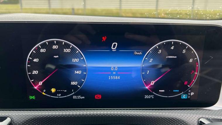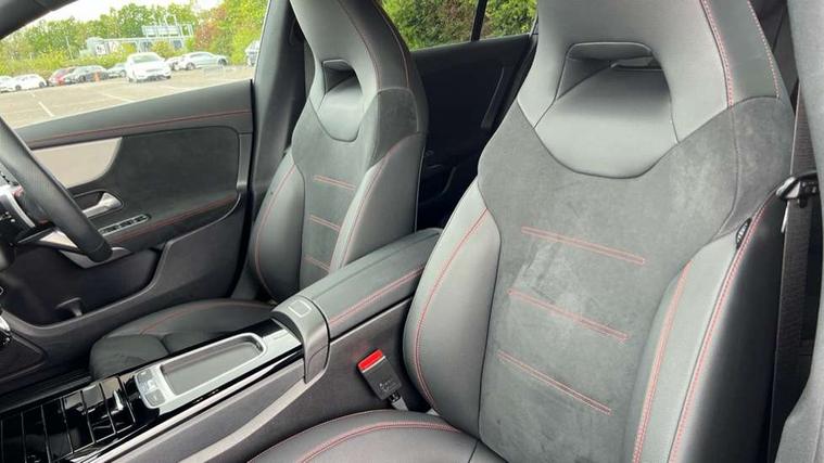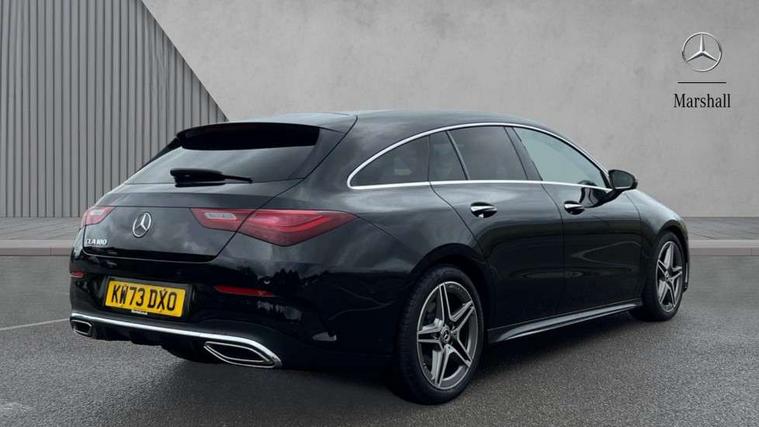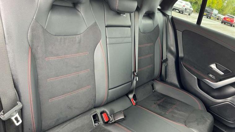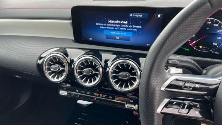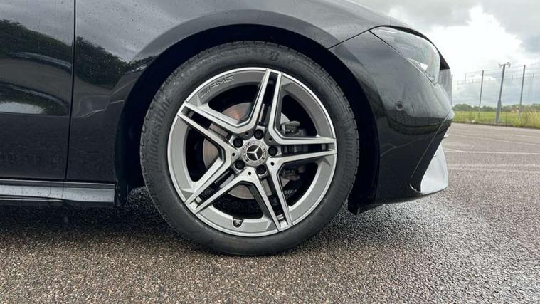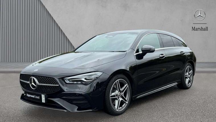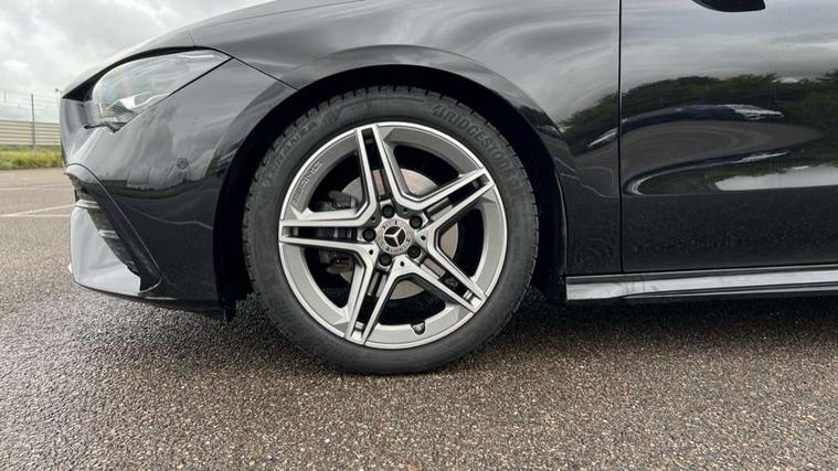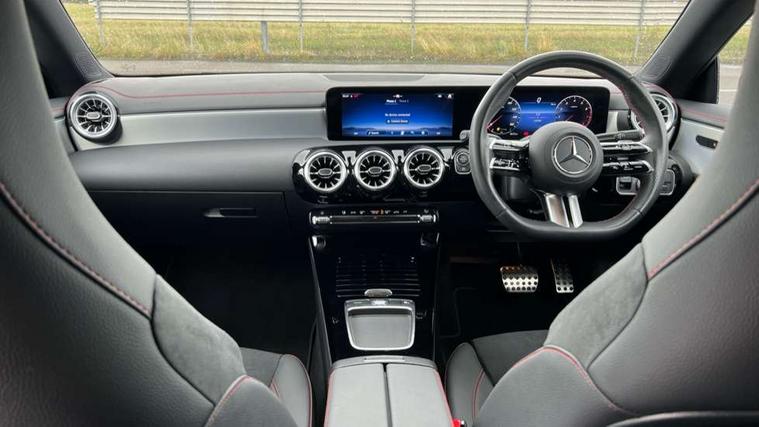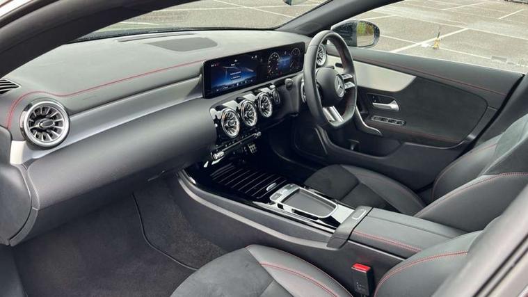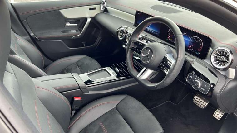 10.25 inch Instrument display with digital cockpit, 10.25 inch touchscreen central media display, Active lane keeping assist, Attention assist - Monitors steering behaviour and long journey fatigue, Bluetooth connection, Car wash mode, Cruise control with limiter, Direct steer system, DYNAMIC SELECT with a choice of driving modes (ECO, Comfort, Sport and Individual), ECO start/stop function, Fluid level warning indicator for fuel, oil, coolant and washer fluid, Hard-disk navigation, Hey Mercedes Voice activation, Lamp failure indicator, Mercedes me connect including emergency call system, accident recovery, breakdown management and maintenance, Mercedes me remote services, Outside temperature gauge, Owners manual in English, Pre-installation of private car share, Radio aerial integrated into front and rear windshields, Service indicator (ASSYST), Smartphone integration with Apple CarPlay and Android auto, Speed limit assist, Tailgate, Trip computer in multifunction display with current consumption indicator, Wireless charging in the front centre console, Comfort suspension with ride height lowering, Rear axle multi-link, DAB digital radio tuner, MBUX multimedia system, Mercedes Benz sound system (100 W) with 6 speakers, Pre installation for Mercedes Benz Link, Adaptive brake lights, AMG body styling with AMG front apron and rear apron and visible exhaust tailpipe in chrome trim elements, Body colour door handles, Electric windows, Electrically adjustable and heated door mirrors with integrated LED indicators, Exhaust system with 2 Visible tailpipe trim elements and rear apron with trim in chrome, Headlamp assist automatic headlamp activation, Heated glass rear windscreen + timer control, High gloss aluminium beltline strips, High level LED third brake light, Interior mirror with black reading lamps and frameless, LED high performance headlamps with integrated LED daytime running lights and adaptive highbeam assist, LED tail lamp, Privacy glass with dark tinting on rear side windows and rear window, Radiator grille with Mercedes-Benz pattern in chrome with central Mercedes star and single louvre with chrome inserts, Rain sensing windscreen wipers with two sensitivity settings, Rear fog lamp, Rear side wing doors, Rear wiper, Variable front intermittent wipers, Window line trim strip in high gloss aluminium, 3 seat bench in 2nd row, 3 twin spoke flattened multifunction steering wheel in nappa leather - horizontal twin spoke in high gloss black, vertical twin spoke in silver chrome, 4 way lumbar support, 40:20:40 split folding rear seats with backrest, Air conditioning - One zone thermatic automatic climate control with automatically controlled air distribution, Air vents with surround in silver chrome, Artico man-made leather/Microcut microfibre upholstery, Automatic child seat recognition sensor, Black roof lining, Brushed stainless steel sports pedals with rubber studs, Floor mats with stitched AMG lettering, Front centre armrest with stowage, Galvanished gear shift paddles in silver chrome, Heated front seats, Interior lighting - 64 colour Ambient lighting, Luggage net on driver/front passenger seat backrest, Manually height and reach adjustable steering column, Rear head restraints, Single front passenger seat, Sport seats with fixed head restraints, Stowage compartment in centre console with retractable cover, Sunvisors with illuminated vanity mirrors, Twin front cupholders, Two outer rear seat isofix and top tether child seat fixing points, Keyless go comfort pack - CLA with easy pack tailgate, Light and sight pack - CLA, Mirror pack - CLA, Parking pack with reversing camera - CLA, Seat comfort pack - CLA, USB package plus - CLA, Active bonnet pedestrain safety measure which detects an impact and raises bonnet by 65mm, Active brake assist includes forward collision warning system with autonomous braking, Adaptive brake assist with hold function and hill start assist, Anti lock braking system (ABS) with brake assist, Black seat belts, Bonnet with power domes, Brake calipers with Mercedes-Benz lettering, Brake pad wear warning indicator, Childproof locks manually operated for rear doors and electrically operated for rear power windows, Crash responsive emergency lighting, Driver and front passenger head and sidebags, Driver and front passenger windowbags, Drivers knee airbag, Dual stage driver and front passenger airbags, Electric parking brake, Electronic stability programme with acceleration skid control, ESP curve dynamic assist, Front and rear seatbelt reminder, Front passenger seat occupancy sensor, Perforated front brake discs, Three point rear seat belts, Tyre pressure monitoring system, Warning triangle and first aid kit, Alarm system with immobiliser and interior protection -Thatcham category 1, Guard 360 deg vehicle protection - tow away protection with visual, acoustic warning, interior monitoring, preinstallation for parking damage, Remote central locking and crash sensor with emergency opening function, Light aluminium with longitudinal grain interior trim, 18" AMG 5 twin spoke light alloy wheels painted in termolite grey with high sheen finish, Summer tyres, Tirefit tyre sealant kit,