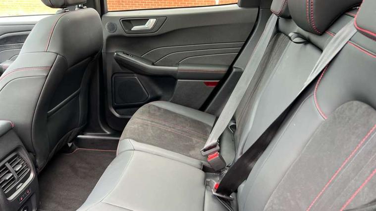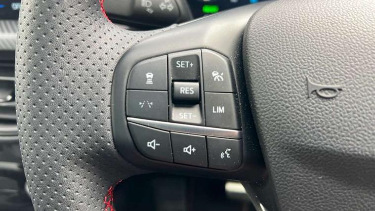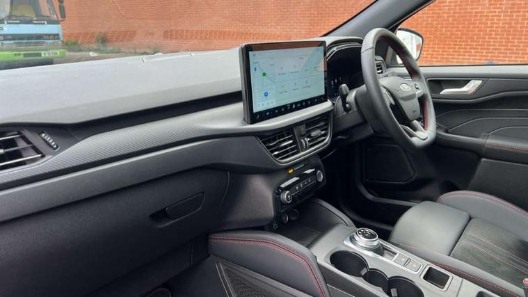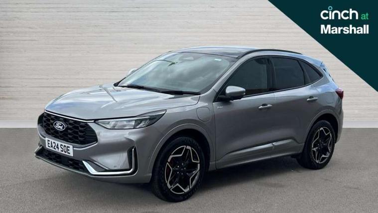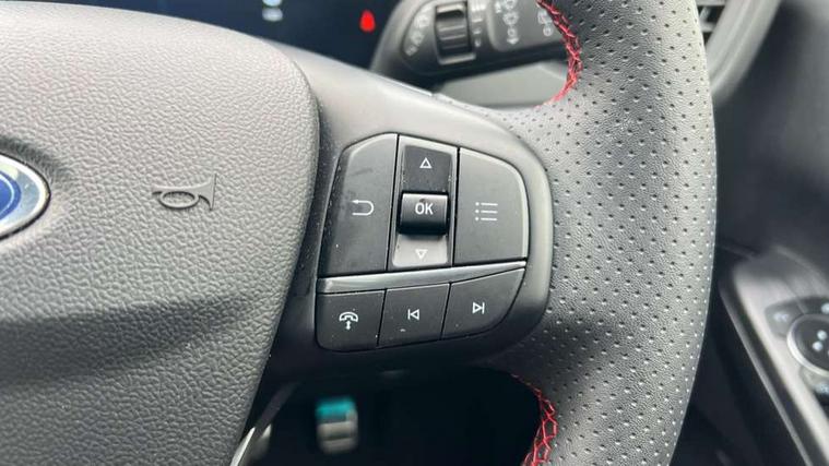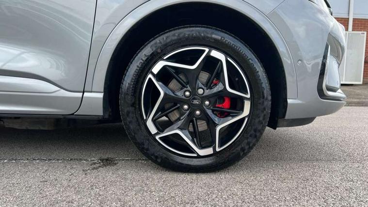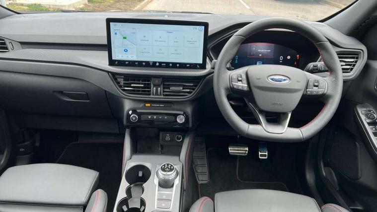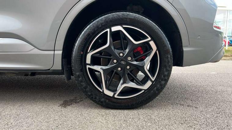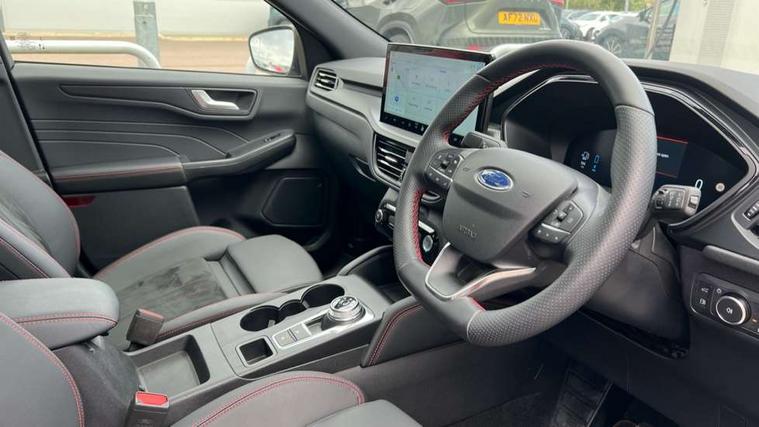 12.3" digital colour instrument cluster, 360 degree camera, e-Call (emergency call), Ford easy fuel, Ford SYNC 4 Navigation with 13" touchscreen, DAB radio, emergency assistance, Andriod Auto/Apple CarPlay, 5G modem & Ford Pass connect, Front and rear parking sensors, Hands free power tailgate, Lane centering assist, Lane keeping aid with lane departure warning, Power assist steering, Selectable drive modes, Service interval indicator, 3-Pin Home charge cable (230V/16A Domestic socket), Sports suspension, Twist beam rear suspension, B&O premium audio system with 10 speakers, subwoofer and 2 USB ports, Auto headlamps with high and low beam, Black roof rails, Body colour bumpers, Front LED fog lamps, Large rear spoiler, LED daytime running lights, LED rear lights, Pop out door edge protectors, Power front/rear windows with global close, Power heated folding door mirrors with puddle lights, memory function and camera, Power opening panoramic roof, Quickclear heated windscreen, Rain sensing wipers, Rear privacy glass, Rear side wing doors, Rear wiper, ST-Line body styling kit, Third brake light, 12 way ergonomic power adjust driver's seat with memory (AGR certified), 12 way ergonomic power adjust passenger seat (AGR certified), 2nd row sliding seats, Electronic automatic temperature control (EATC), Front and rear head restraints, Partial premium touch sensico upholstery, Rear centre head restraint, Single front passenger seat, Sports seats, Driver assistance pack with intelligent adaptive cruise control - Kuga FHEV/PHEV, Winter pack - Kuga, 3x3 point rear seatbelts, Airbags - front driver/passenger, front and rear curtain, Drivers knee airbag, Dynamic brake support, Electronic stability control (ESC) and ABS, Evasive steering assist, Ford MyKey Gen 2 safety system, Manual child proof rear door locks, Pre collision assist with autonomous emergency braking, Rear seat Occupancy alert, Red brake calipers, Tyre pressure monitoring system, Engine immobiliser, Keyless entry and Ford power start button (Keyless start), Locking wheel nuts, Remote powered central double locking doors, Thatcham category 1 alarm,