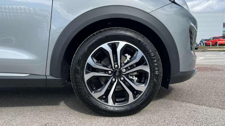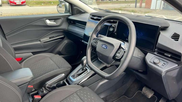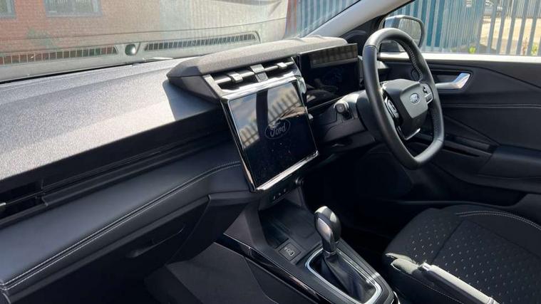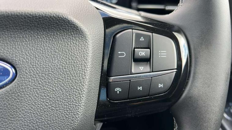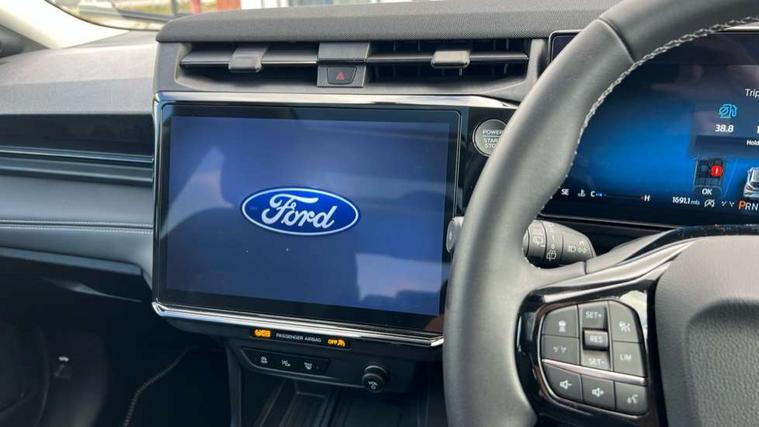 Driver impairment monitor, Emergency call service, Ford easy fuel, Full digital 12.8" instrument cluster, Lane keeping aid with lane departure warning, Power assist steering, Selectable drive modes(Normal, sport, Eco, trail, slippery), Speed sign recognition, Standard suspension, 12" landscape touchscreen display with wireless apple car play and android auto 6 speaker audio system, Ford pass connect and emergency assistance, Ford SYNC4 with connected navigation, Automatic headlights with rain sensing wipers and auto high beam, Front fog lamps, LED daytime running lights, LED rear lamps, LED third brake light, Quickclear heated windscreen, Rear privacy glass, Rear side wing doors, Rear wiper, 3 seat bench in 2nd row, Centre console with armrest and stowage, Electronic automatic temperature control (EATC), Ford megabox extended bootspace, Front and rear head restraints, Front floor mats, Manual 4 way driver seat adjust with lumbar adjustment, Single front passenger seat, Titanium cloth upholstery, 3 rear seatbelts, Child safety lock, Electronic stability control (ESC) and hill start assist, Pre-collision assist with autonomous emergency braking, pedestrian/cyclist detection & post-collision braking, Tyre pressure monitoring system (TPMS), Thatcham alarm, 17" Absolute black machined finish alloy wheel,