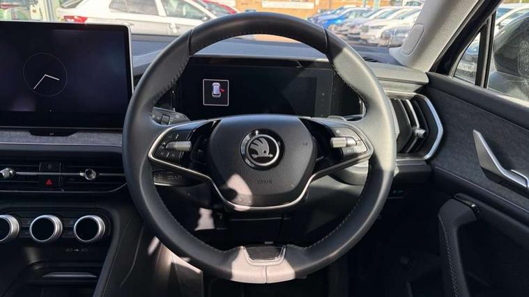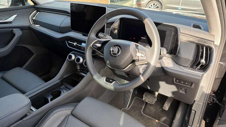 13" satellite navigation touchscreen display, Blind spot detection with door exit warning, Bluetooth system, ChatGPT functionality, Drive mode selector, Driver alert with fatigue sensor, Driver drowsiness alert system, Dry display cleaner, e call+, Front cross traffic assist, Lane assist, PAS, Rear traffic assist, Tailgate unlocking from outside, Traffic sign recognition, USB C Port x 2 in front centre console, Virtual Cockpit - 10.25" digital display, Voice control system, Wireless charging for two smartphones (15W) with cooling function, Wireless SmartLink for Apple CarPlay and Android Auto, Stop/start function, 2x USB-C in the rear, DAB Digital radio, Aero front windscreen wipers with intermittent function, Auto dimming rear view mirror, AWL (all weather lighting) and all weather light with cornering function, Black wheel arch surrounds, Body colour bumpers, Body colour door mirrors and handles, Cornering light and poor weather light, Electric folding /adjustable/separted heated/folding door mirrors, auto dimming with boarding sports and memory function, Electric front and rear windows, Exterior black decorative trims, Heat insulating glass in windshield, Heated rear window, Ice scraper in fuel tank cap, Invisible tailpipe, LED daytime running lights, LED rear fog light, LED third brake light in rear spoiler, Light assistant with automatic headlight control and coming home feature, Logo projection in door mirrors, Privacy glass, Rear side wing doors, Rear spoiler, Rear window wiper, Red decorative strip between rear LED lights, Safety reflectors on front and rear doors, Window control switches with black trim, Windscreen wipers with rain sensor, Without engine designation, 1.5l bottle holder points in all door, 12V socket in boot, 1x centre rear reading light, 2 seat bench in 3rd row, 3 configurable smart dials with 32mm coloured display, 3 seat bench in 2nd row, 4 foldable roof handles with rear coat hooks, Ambient interior lighting - Dashboard, front-door stowage compartments, front and rear door panels and footwell lighting, Automatic gear selector on steering wheel, Chrome interior door handles, Driver/front passenger reading lights, Fabric headlining, Fixed bench 40:60:40 split folding backrests, Front and rear floor mats, Front centre armrest with jumbo box storage compartment, cup holder and 12V socket, Front courtesy lights, Height adjustable front headrests, Isofix child seat fittings in outer middle row rear seats and front passenger with top tether, Manually adjustable steering column, Pollen filter, Rear centre armrest with cupholders, Rear seat boot backrest release, Retractable luggage compartment cover, Single front passenger seat, Sliding trunk cover, Small Bags on the inner sides of the front backrests, Storage pocket including mobile phone pockets on the backs of the front seats, Sunvisors with illuminated vanity mirrors, Three rear height adjustable headrests, Ticket holder on A Pillar, Tri zone climate control, Umbrella in door panel x1 made from sustainable materials, Upper and lower glovebox with card holder and coin compartment, USB C port by rear view mirror for charging only (15W), Exterior styling pack - Kodiaq, Auto door release and activation of warning lights in the event of an accident, Driver and front passenger airbag with knee airbag and front passenger airbag deactivation, Electric child locks, Electronic parking brake, ESC (incl. ABS+EMD+MSR+ASR+EDL+HBA+DSR+RBS+ESBS+MCB+TSA+XDS), Front assist with braking reaction to vehicles, pedestrians and cyclists, Front disc brakes, Fuel cut off safety device, Height adjustable front 3 point seatbelts + pretensioners, Hill hold control, Junction assist with automatic emergency braking, Rear disc brakes, Safety vest holder in door, Seat belt reminder for all seats, Three point rear seat belts, Two tone horn, Tyre pressure monitor, Anti-theft wheel bolts, Immobiliser, Remote central locking with 2 keys, Breakdown kit,