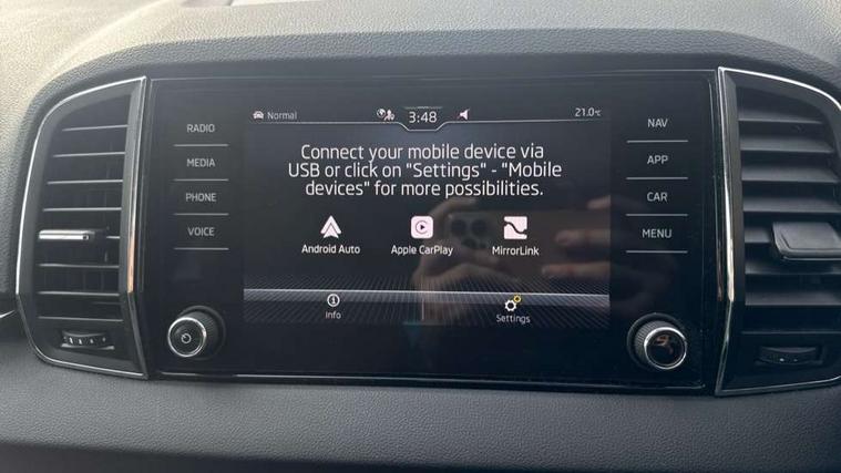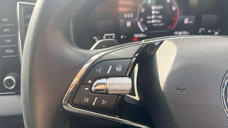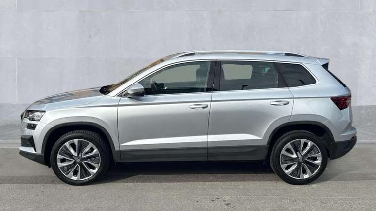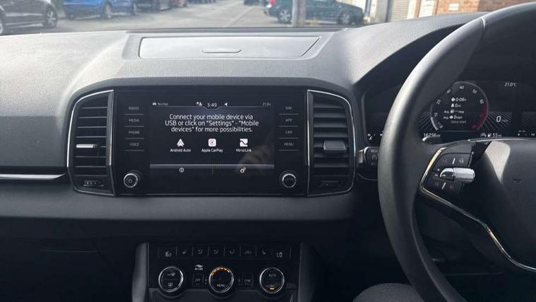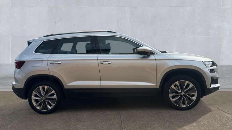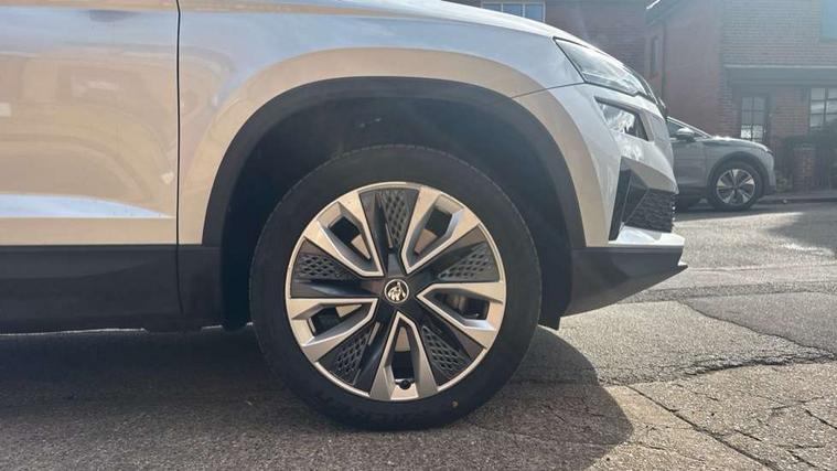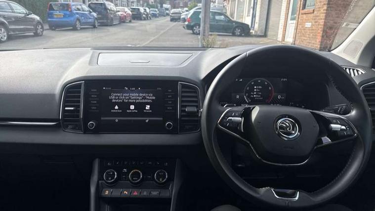 8" Digital display, Care connect, Driver fatigue sensor, Emergency services call system, Outside temperature gauge, Service interval indicator, SmartLink wireless for Apple and wired for Android, Start/stop system with regenerative braking, USB C Port x 2 in front centre console, 8 Speakers, DAB radio with Bluetooth, USB connection, Acoustic glass, Aero front windscreen wipers with intermittent function, Auto dimming rear view mirror with light and rain sensors, Black electric window control buttons, Body colour door mirrors and handles, Dynamic headlight range control with cornering light function, Electric front and rear windows with child proof lock, Heated rear windscreen, LED daytime running lights, LED rear lights with high functionality welcome effect and dynamic indicators, Light assistant (coming/leaving home/tunnel light), Plastic scuff plates, Privacy glass, Rear side wing doors, Rear spoiler, Rear window wiper with washer system and intermittent control, Safety reflectors on front doors, 1.5 litre bottle holders in driver and front passenger door panels, 12V socket in boot, 12v socket in front centre armrest with storage compartment and rear air vents, 2 spoke leather heated multifunction steering wheel with DSG paddles, 2 x Tablet holder, 3 rear height adjustable headrests, 3 seat bench in 2nd row, 4 foldable roof handles with rear coat hooks, Black floor carpet, Chrome inner door handles, Double sided boot floor, Foldable hooks in the boot, Front head restraints, Height adjustable front three point seats belts with tensioners, Height/reach adjust steering wheel, Ice scraper, Illuminated glovebox, Illuminated luggage compartment, Isofix child seat preparation for front passenger seat, Isofix child seat preparation outer rear, Manual lumbar support for front seats, Pen holder, Pollen filter, Rear boot cover, Rear reading lights, Rubbish bin door, Safety vest holder, Single front passenger seat, Storage box in upper central dashboard closed, Sunvisors with illuminated vanity mirrors, Textile floor mats, Ticket holder, VarioFlex seats with standard rear seat release, Boot pack - Karoq, Design Pack - Karoq, Parking pack - Karoq, Automatic door unlocking in case of crash, Automatic fuel cut off in case of crash, Child locks on rear doors, Driver airbag, Electronic parking brake with auto hold function, Emergency rear braking signal, ESC including ABS, MSR, ASR, EDS, HBA, DSR, RBS, MKB and traction control, Front side airbags, Hill hold control, Knee airbags, Passenger airbag with switch-off function, Pedestrian monitor, Seatbelt reminder signalisation and pretensioner for all seats, Three point seatbelts rear, Two tone horn, Tyre pressure display, Tyre pressure monitor, Alarm with interior monitoring, back up horn and tilt sensor with safe function, Electronic engine immobiliser, Keyless entry and start/stop, Remote central locking with 2 remote folding keys, Chrome framed air vents, 18" Miran alloy wheels in black, Anti-theft wheel bolts protection, Tool kit,