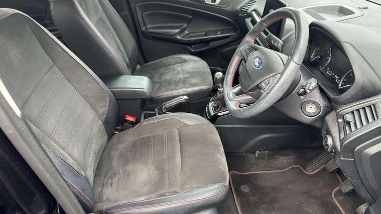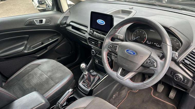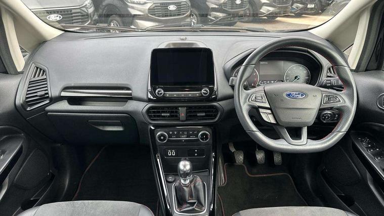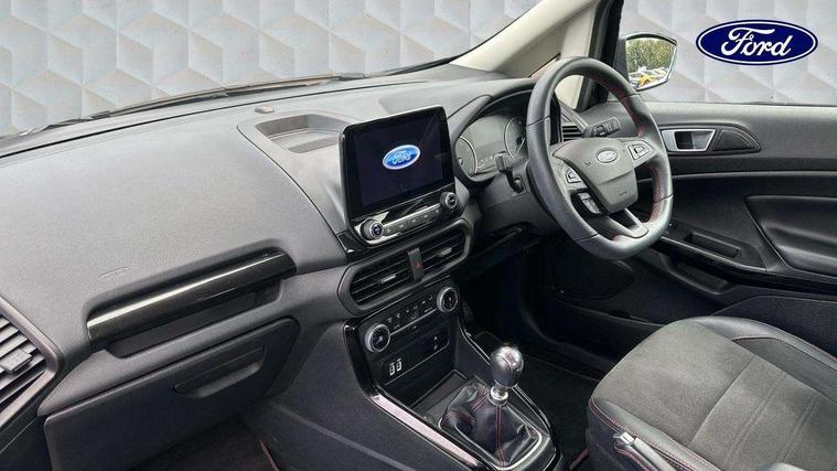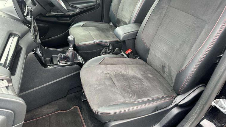 Cruise control, e-Call (emergency call), Easy fuel capless refuelling system, Ford SYNC 3 nav system with DAB radio, 8" screen, emergency assistance, Apple car play/Android auto, 2x USB, 6 speakers, Ford pass connect, Intelligent speed limiter, PAS, Rear parking sensors, Rear view camera, Traffic sign recognition, Trip computer, Sports suspension, Steering wheel mounted audio controls, Auto dimming rear view mirror, Automatic front wipers, Automatic headlights, Black roof rails, Body colour door handles, Body coloured bumpers, Chrome lower window surround, Electrically adjustable and heated door mirrors, Front fog lights, Headlight levelling control, Large rear spoiler, LED day running lights, LED third brake light, Power front and rear windows, Puddle lights, Quickclear' heated windscreen, Rear wiper, ST Line body styling kit - Black headlamp bezel, front and rear sport bumpers, body colour lower door claddings, ST-Line front grille, 12V socket in front and rear, 60/40 split rear seats, Ambient lighting, Centre console with sliding front armrest, Cooled glovebox, Courtesy lights with map reading light, Driver height adjust, Driver seat height/lumbar adjust, Driver's side glovebox, Driver/passenger sunvisors and lidded vanity mirrors, EATC - Electronic Auto Temperature control, Folding grab handles, Front head restraints, Front seat back map pockets, Illuminated glovebox, Illuminated luggage compartment, Isofix system on outer rear seats, Luggage compartment carpet, Neosuede/Partial sensico leather upholstery, Overhead console with sunglasses holder, Rake adjustable rear seats, Reach + rake adjustable steering column, Rear headrests, Sensico trimmed steering wheel, handbrake and gearshift gaiter with red stitching, ST-Line Front floor mats with red stitching, Stainless steel sports pedals, Storage drawers under front seats, Tie down hooks, Variable boot floor, 3x3 point rear seatbelts, ABS, Autonomous emergency braking, Child locks on rear doors, Curtain airbags, Driver airbag, Drivers knee airbag, Electronic Stability Programme with hill launch assist, Front passenger airbag deactivation, Front side airbags, Passenger airbag, Pre collision assist system with AEB, Seatbelt reminder for driver and front passenger, Traction control, Tyre pressure monitoring system, Immobiliser, MyKey system, Remote central locking, Thatcham 1 volume sensing alarm, Low rolling resistance tyres, Tyre inflation kit,