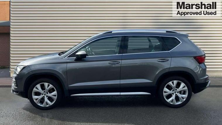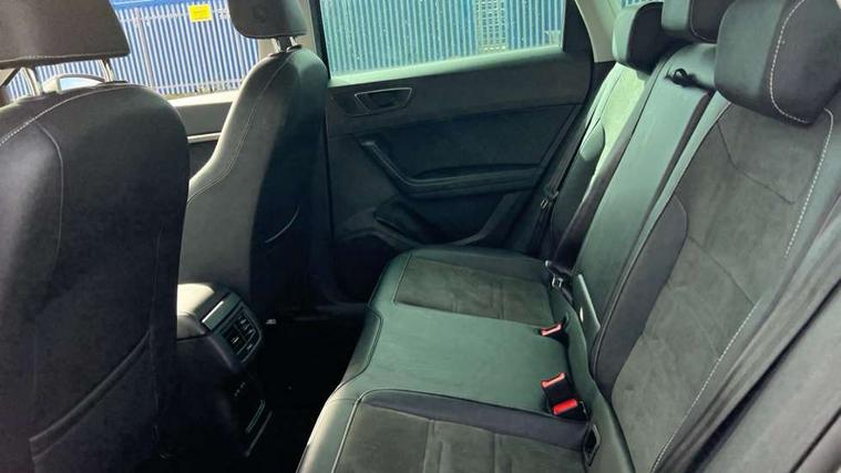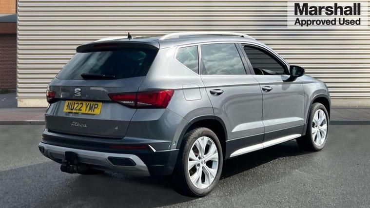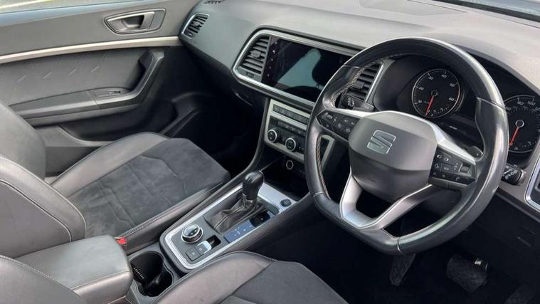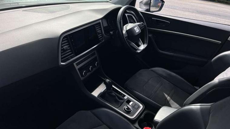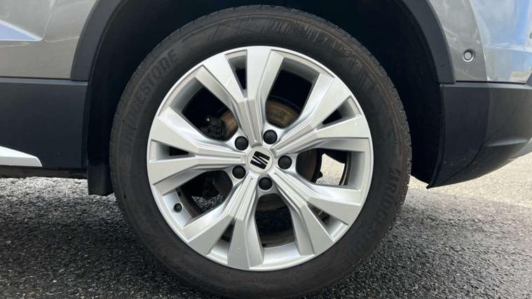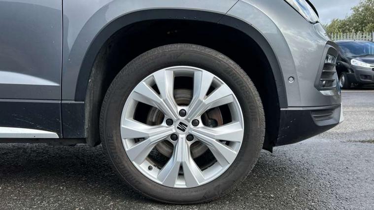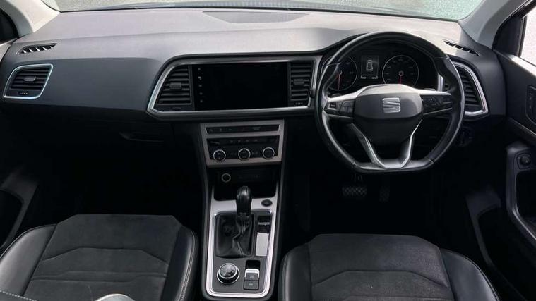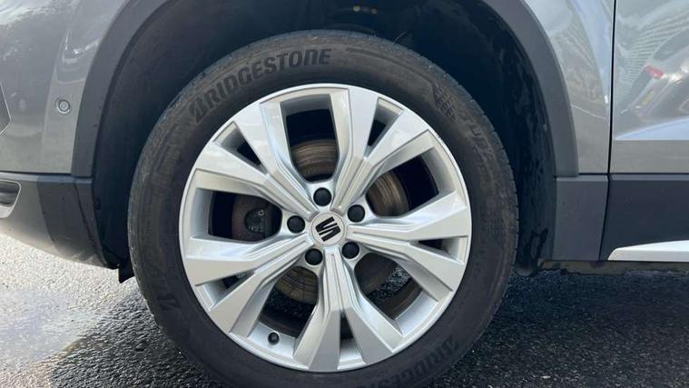 E-call, Outside temperature gauge, Progressive power assisted steering, Rear view camera, SEAT drive profile with driving experience button - Normal, Sport, Eco, Individual, off-road and snow modes, gearshift, steering and throttle response, Self parking functionality (includes front and rear parking sensors), Trip computer, Wireless full link smartphone integration, Wireless phone charger, Steering wheel mounted audio/phone controls, Black simulated exhaust pipes, Body colour bumpers, Body coloured wheel arch surrounds, Chrome front grille frame, Chrome roof rails, Chrome side window trim, Dark tinted rear windows, Daytime running lights, Door mirrors with welcome light silhouette, Dynamic headlight range control with self adjusting whilst driving, Electric adjustable/heated/folding door mirrors, Front and rear electric windows, Front grille hot stamping, Full LED headlamps with lens and LED front fog lamps with cornering function, Heated windscreen, Illuminated aluminium front door sill, LED rear tail lights with dynamic indicators, Rear fog lights, Rear side wing doors, Rear wash/wipe, Reflex silver side mouldings, Third brake light, 12v socket in front, 3 seat bench in 2nd row, 60/40 split folding rear seat, Dual zone climate control, Front and rear head restraints, Front centre armrest, Front seat back storage pockets, Height adjustable driver and passenger seat with lumbar adjustment, ISOFIX points in outer rear seats with top tether anchorage points, Leather steering wheel and gear knob, Microsuede upholstery with front comfort seats, Rear armrest and easy back seat release mechanism from boot, Single front passenger seat, Steering wheel mounted gearshift paddles, Storage compartment under driver's seat, Convenience pack - Ateca, Interior lighting pack - Ateca, Navigation system pack with DAB - Ateca, Safe and driving pack - Ateca, 3x3 point rear seatbelts, ABS, Traction control system (TCS), Electronic stability control (ESC) and Electronic differential lock system (XDS), Airbags - Driver and front passenger airbag with deactivation, front side, two curtain and driver's knee airbags, Electric parking brake with auto hold function, Front and rear seatbelt reminder, Hill hold control, Manual rear child locks, Tiredness recognition system, Traction control, Tyre pressure monitoring system, Alarm, Keyless entry, Locking wheel bolts, Chrome interior detailing, 18" Brillaint silver alloy wheels,