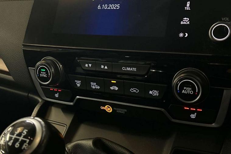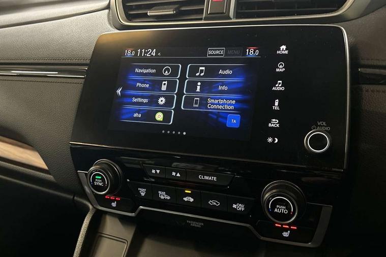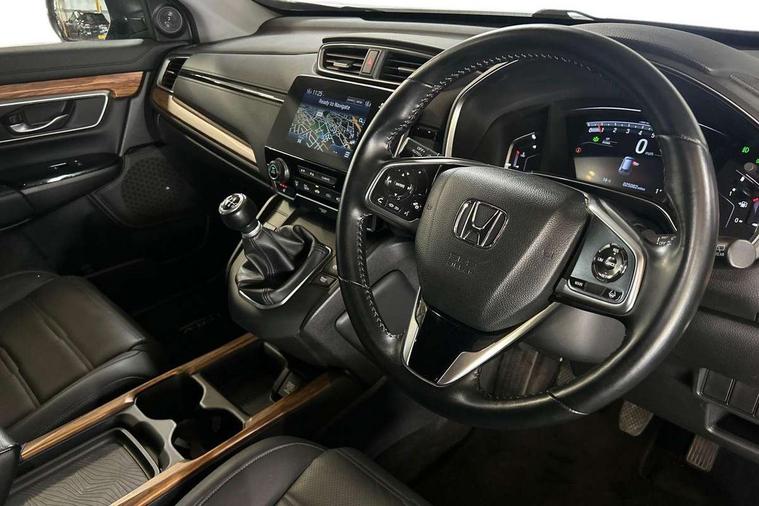 Adaptive cruise control, Agile handling assist, BLIS (Blind Spot Information System) with dual power heated blind spot mirrors, Bluetooth hands free telephone connection, Economy mode, Electric power steering, Emergency stop signalling system, Forward collision warning, Front and rear parking sensors, Honda CONNECT with GARMIN Navigation + 7" touchscreen, DAB radio, Apple CarPlay, Android Auto, Aha app integration and internet browsing, Idle stop, Intelligent multi info display, Lane departure warning system, Lane keep assist system, Rear view camera, Road departure mitigation, Speed limiter, Traffic sign recognition, Vehicle stability assist, 2 USB sockets in rear, 2x USB sockets in front, 8 Speakers, DAB Digital radio, Steering wheel mounted controls, Subwoofer, Aspheric door mirrors, Auto dimming rear view mirror, Automatic headlights with dusk sensor, Body colour bumpers, Body colour door handles, Cornering light, Door mirrors tilt when reversing, Electric front windows/one touch facility, Electric rear windows + one touch facility, Electrically adjustable and heated door mirrors, Electrically retractable door mirrors, Front windscreen de-icer, LED daytime running lights, LED front fog lights, LED Headlights, LED rear lights, Rain sensor, Rear privacy glass, Rear wiper, Roof rails, Shark fin roof aerial, Trailer stability assist, Welcome home function, 60/40 split folding rear seat, Accessory sockets, Ambient interior lighting, AWD emblem rear, Cargo hooks, Courtesy lights, Driver's electric adjustable lumbar support, Driver/passenger front seatback pockets, Driver/passenger sunvisors with illuminated vanity mirrors, Dual zone automatic climate control, Electric lumbar adjustment on passenger's seat, Footwell ambient lighting, Front centre armrest, Front map lights, Front passenger seat height adjust, Gear shift indicator, Heated front seats, Height adjustable driver's seat, Illuminated glovebox, Instrument panel with garnish wood film, Isofix child seat preparation, Leather gearknob, Leather steering wheel, Leather upholstery, Rear air vents, Rear centre armrest, Rear headrests, Rear reading lights, Rear seat conversation mirror, Silver interior door handles, Sunglasses holder with mirror, Tilt/telescopic adjustable steering wheel, Tonneau cover, Trunk light, 5 x 3 point seatbelts, ABS/EBD, Anti-whiplash front headrests, Brake assist function, Collision mitigation braking system, Deflation detection system, Driver airbag, Electronic parking brake with auto hold, Front and rear curtain airbags, Front side airbags, Hill start assist, Passenger airbag deactivate switch, Honda super locks, Immobiliser, Remote keyless entry, Security alarm, Ultrasonic sensor and tilt sensor, Temporary spare wheel,
