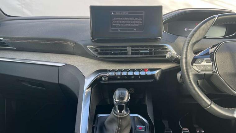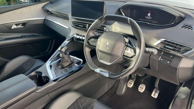 3D connected navigation with 10" HD touchscreen + voice recognition system, Bluetooth telephone facility, Driver attention alert system, Extended traffic sign recognition, Exterior temperature indicator with ice warning, Front parking sensors, Lane departure warning system, Mirror screen with mirror link, apple carplay and android auto, Multi function trip computer, PEUGEOT i-Cockpit with 8.0" capacitive touchscreen in centre console, Peugeot i-cockpit with compact multi-function sports steering wheel, PEUGEOT i-Cockpit with configurable 12.3" Head-up digital instrument panel, PEUGEOT SOS and assistance, Rear parking aid, Rear passenger USB charging sockets (x2) (type A), Speed limit recognition and recommendation, Dynamic stability control and electronic anti-skid system, Stop/start function, DAB Digital radio, USB socket, Automatic hazard light activation upon heavy brake application, Automatic triggered rear windscreen wiper in reverse gear, Body colour door handles, Body colour rear roof spoiler with stainless steel edging trim, Body protectors (bottom of front and rear bumpers + wheel arches + protection at bottom of doors) in black, Chrome front wing trim, Chrome rear bumper facia, Dark tinted rear side windows + tailgate window, Electric operated/heated door mirrors, Fog Mode, Frameless electrochrome rear view mirror, Front door sills with stainless steel insert featuring 'PEUGEOT' lettering, Front windscreen wiper with magic wash cleaning system, Full LED headlights with LED fog lights with static cornering function, Gloss black B and C pillar and aerodynamic deflector trim, Gloss black front bumper air scoops, Gloss black rear cluster connecting strip, GT emblem in satin copper (front wings and tailgate), Headlights left on audible warning, Heated rear windscreen with integrated antenna, LED daytime running lights, LED rear number plate lighting, LED side indicator lights integrated into door mirrors, LED third brake light, Nera black door mirrors, One touch electric front/rear windows with pinch protection, Power folding door mirrors with blind spot detection indicator and auto dipping function in reverse gear, Radiator grille in chrome edge trim and facets, Rear LED Peugeot signature 'Claw Effect' lights, Rear side wing doors, Stainless steel roof arches, Twin exhaust tailpipe, 1/3 to 2/3 split folding rear seats, 12V Sockets in dashboard, rear cabin and load area, 2 cupholders in front centre console, 2x Rear coat hooks, 3x Isofix child seat fittings in the front passenger and outer rear seats, 4 Grab handles retractable and damped, Aikinite stitching in armrest, gear lever and dashboard facia, Aluminium pedals, Blue ambient lighting for connecting zone, Blue ambient lighting to front door panels, central storage and cupholders, Centre front armrest with butterfly wing opening and illuminated storage compartment, Dual zone automatic climate control, Electric power steering with reach and rake adjustable steering column, Flocked front door pocket interior with blue ambient lighting, Flocked glovebox interior, Foldable front passenger seat, Footwell illumination, Front interior light with 2 reading spotlights and rear interior light with timer, Front seat back map pockets, Gear shift indicator, Height adjustable front seats, Illuminated glovebox, Individual left and right controls in boot for seat folding, LED interior lighting in storage spaces and load area, Mistral floor mats with Aikinite contrast stitching, Mistral full grain perforated leather steering wheel with aikinite stitch detail and satin chrome 'GT' emblem, Rear bench seat with central armrest and ski hatch, Rear centre console ventilation system, Roof lining - Mistral black, Satin chrome dashboard trim, Satin chrome digital instrument panel and touchscreen trim, Satin chrome front door panel recess trim, Satin chrome interior door handles, Satin chrome scorpion's tail and toggle switch trim, Seatbelt not fastened audible and visual alert for front seats, Seatbelt unfastened on the move audible and visual alert for front and rear seats, Sunvisors with illuminated vanity mirrors, Two position boot floor, Drive assist pack - 3008, Driver sport pack - 3008, Visibility pack - 3008, 3x Rear three-point retractable seatbelts with force limiters in the outer rear seats, ABS (Anti-lock Braking System) with EBD (Electronic Brakeforce Distribution) and EBA (Emergency Braking Assistance), Adaptive driver and front passenger airbags with passenger airbag deactivation function, Driver and front passenger side airbags, Electric child locking functionality on rear windows and doors, Electric parking brake, Front and rear curtain airbags, Front optimised safety headrests and 3 x rear retractable headrests with height adjustable, Front three point retractable seatbelts with pre tensioners and force limiters, Front ventilated disc brakes and rear disc brakes, Hill start assist, Two tone horn, Automatic door locking when moving off, Electronic immobiliser, Perimetric and volumetric alarm with lift and tilt sensor, Peugeot Open and Go System, Remote control central locking with two plip keys, Grey greval alcantara dashboard and door panel inserts, Puncture repair kit including compressor, sealant cartridge and towing eye,