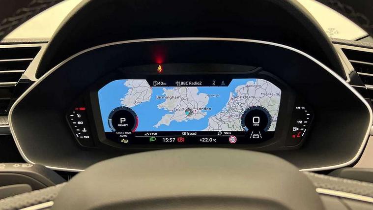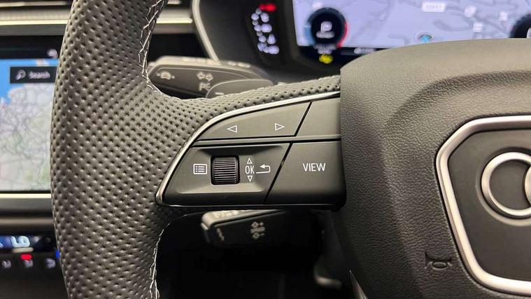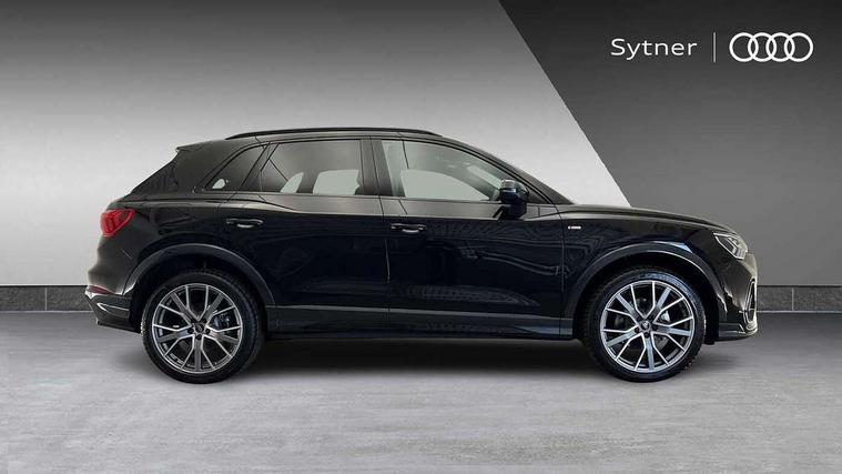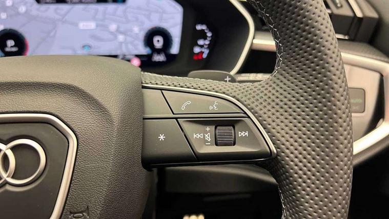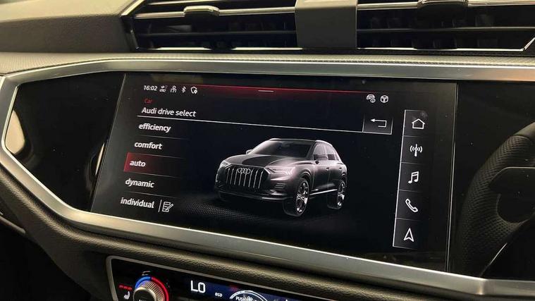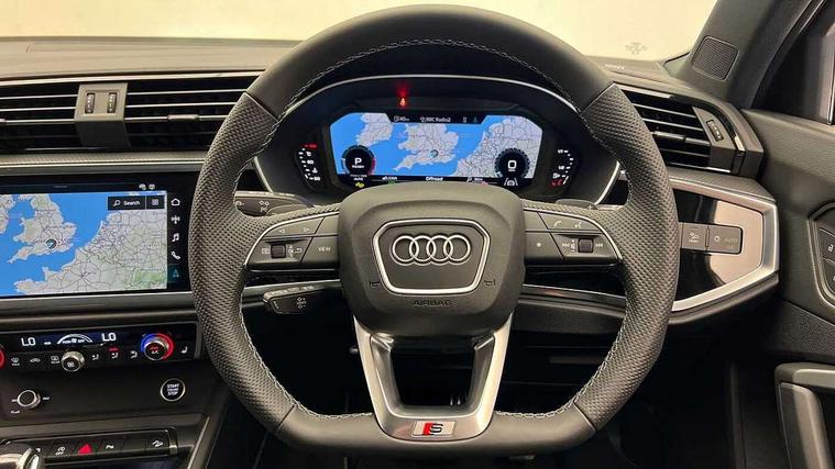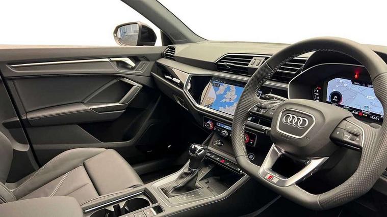 Amazon alexa Integration, Audi connect safety and service, Audi drive select, Audi lane departure warning, Audi Virtual Cockpit - 10.25" display, Bluetooth interface, Camera based traffic sign recognition, Distraction and Fatigue warning, Legal emergency call, MMI Navigation Plus with high resolution 10.1 inch touchscreen colour display, Power operated tailgate, Progressive steering, Service interval indicator, Smartphone interface includes wireless Apple carplay/Android Auto, Start stop system with recuperation, Voice control system with natural language interaction, Diesel particulate filter, Sports suspension, 2 USB-C ports with charge and data functions, 6 passive loudspeakers, DAB digital radio module, Acoustic windscreen, Audi Beam uses LEDs to project the Audi logo onto the ground as you exit your Q3, Auto dimming door mirrors, Auto dimming frameless rear view mirror, Black roof rails, Electrically folding, adjustable and heated door mirrors with integrated LED side indicators and kerb view function for passenger side, Front and rear electric windows, Front fog lights, Grille vertical bars in aluminium silver/Matt, High gloss black finish B and C pillars, LED Dynamic rear indicators, LED headlights with LED daytime running lights, LED rear lights, LED third brake light, Privacy glass dark tinted rear and rear-side windows (from B-pillar backwards), Rain and light sensors, Rear diffuser grille in grained matt black, Rear diffuser strip in matt anthracite black, Rear side wing doors, Rear wiper, S line bumpers in contrasting Manhattan grey, Variable front intermittent wipers, 12V socket in rear centre console, 3 seat bench in 2nd row, 40:20:40 folding with manual adjustment for 60:40 forwards/backwards position and backrest angle, Adjustable rear seat bench/backrest with centre armrest and cupholder, Black cloth headlining, Dual zone electronic climate control, Electric lumbar support, Front and rear black floor mats with contrast stitching in rock grey, Front and rear headrests, Front centre armrest, Height and reach adjustable steering wheel, Illuminated door sill trims with S logo, ISOFIX child seat mounting for front passenger with airbag deactivation and outer rear seat including top tether attachment point for outer rear seats, Manual front seats with height adjustment, Perforated leather gearknob, Single front passenger seat, Stainless steel luggage compartment sill finisher, Stainless steel pedals, Twin leather upholstery with front sport seats + S embossing, Black styling pack - Q3, Non smoking pack - Q3, 3x3 point rear seatbelts, 6 airbags - Driver, front passenger, curtain and side windows, Audi pre-sense front with pedestrain and cyclist recognition, Electrically operated child locks on rear doors, Electromechanical parking brake, Electronic stabilisation control including ABS, ASR and EDL, Front seatbelt reminder, Hill descent control, Hill hold assist, Pre sense basic, Seatbelt monitoring, Tyre pressure warning, Warning triangle and first aid kit, Anti theft wheel bolts, Immobiliser, Remote central locking, Thatcham approved category 1 anti theft alarm, Aluminium look interior elements, Detail dashboard around MMI touch colour display in glass look, black with surround in aluminium look, Leatherette door armrest, Piano black inlay,