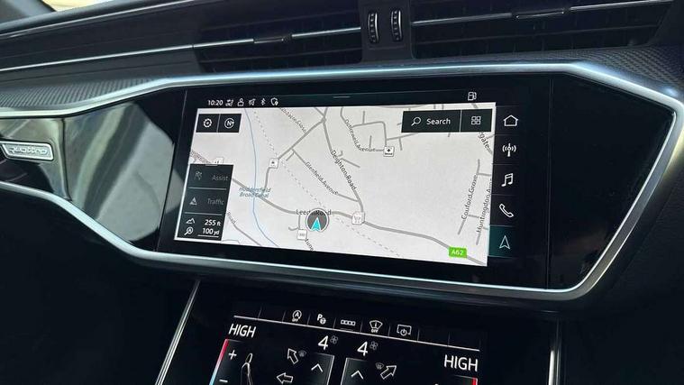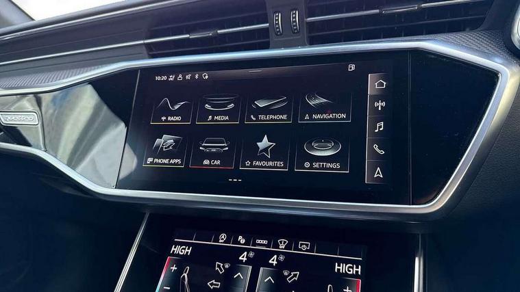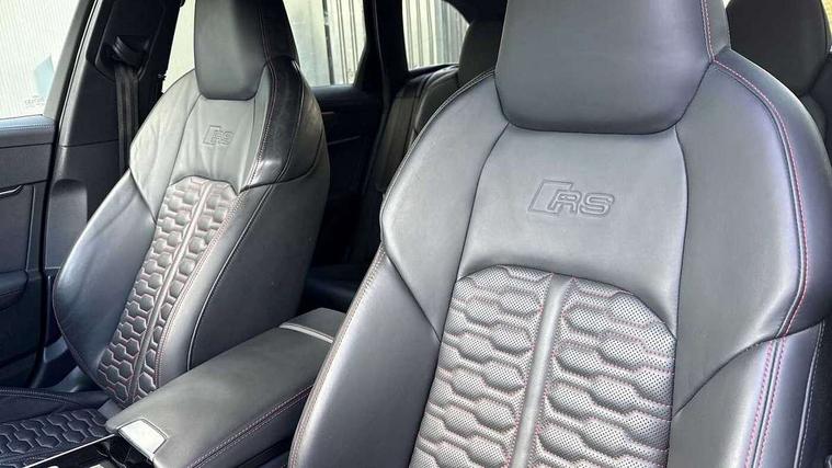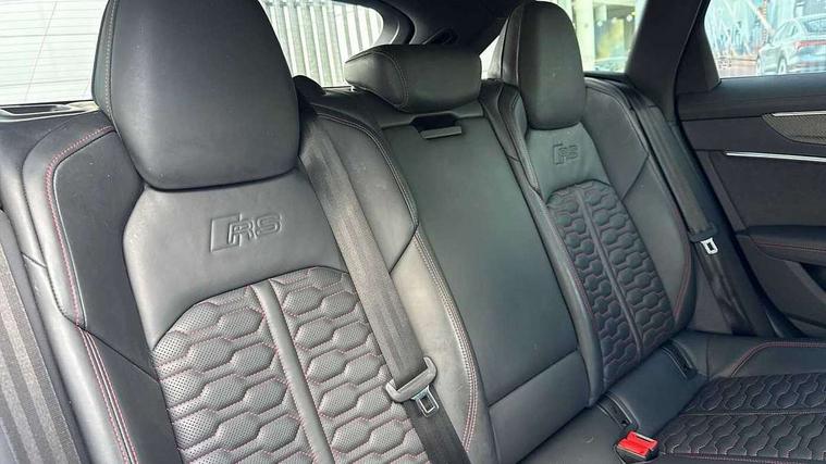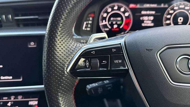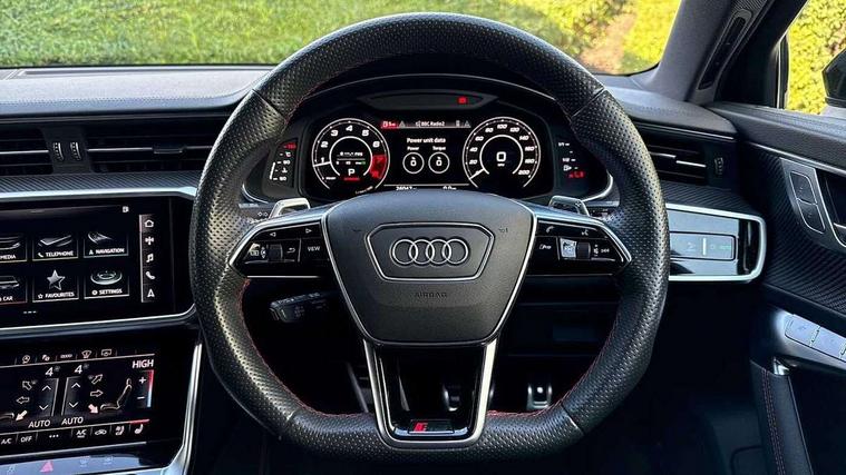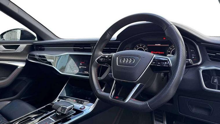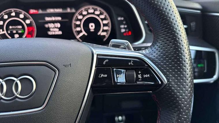 360 degree parking camera, Audi connect safety and service (e-call), Audi connect with Amazon Alexa Integration, Audi drive select, Audi smartphone interface includes wireless Apple carplay/Android Auto, Audi virtual cockpit plus with RS specific design and 12.3" display with additional graphic display options, Automatic start/stop system, Bluetooth interface, Dynamic all wheel steering, Lane departure warning system, MMI navigation with MMI touch + twin touch screens 10.1" and 8.6" with haptic and acoustic feedback, Operating buttons in black, glass look with haptic feedback including extended aluminium look, Power door closure, Power latching doors, Power operated tailgate, Service interval indicator, Voice control system, 73 litre fuel tank, Increased top speed to 174mph, Quattro sports differential, RS Sports suspension plus with dynamic ride control, 2 USB-C ports with charging functionality in the rear, Audi music interface, Bang & Olufsen 3D Premium Sound System, DAB Digital radio, Adaptive windscreen wipers with integrated washer jets, Black mirror caps, Body colour rear roof spoiler, Electric front/rear windows, Electric Panoramic opening glass sunroof, Electrically folding auto dimming/adjustable/heated door mirrors with LED side indicators and kerb view function for passenger side, Frameless auto dimming interior rear view mirror, HD Matrix LED headlights with Audi laser light with dynamic light design and dynamic turn signal, Headlight washers, Heat insulating glass in side and rear windows, Illuminated door sill trims with RS lettering, LED rear combination lamps with dynamic light design and dynamic turn signal, Privacy glass with rear/side windows and acoustic glazing side windows, Radiator grille in honeycomb structure, large front air inlets and rear diffuser in gloss black, Rain and light sensors, Rear sports exhaust system with gloss black oval tailpipe, Rear wiper, RS front bumper with air inlets on both side, Wheel arch extensions, 3 spoke RS flat bottomed leather multifunction steering wheel with shift paddles, heated funtion, contrast stitching, RS mode button and RS emblem, 4 way electric lumbar support for driver and front passenger, 4 zone deluxe automatic climate control, Aluminiium gear shift paddles, Audi Sport logo projection (Audi Beam) in front and rear, Black cloth headlining, Electric steering wheel adjustment, Electrically adjustable front seats with driver memory, Front and rear headrests, Front centre armrest, Front seat ventilation, Front/rear floor mats, Heated front and rear seats, ISOFIX child seat mounting and Top Tether with front passenger airbag deactivation, RS Front sports seats, Stainless steel pedals and foot rest, Valcona leather upholstery with perforated honeycomb and RS lettering, Air quality pack - RS6, City assist pack - RS6, Extended LED interior multi coloured lighting pack - RS6, Gloss black styling pack - RS6, Parking assistance plus pack - RS6, Storage pack - RS6, Tour pack - RS6, 2 x 3-point rear seat belts, Airbags - Front side, front and rear including head, Audi pre-sense front, Direct tyre pressure monitoring system, EBD - Electronic brakeforce distribution, Electromechanical parking brake, Electronic Stability Control (ESC) including ABS, ASR and EDL, Extended pedestrian protection measures, Warning triangle and first aid kit, Advanced key, Anti theft alarm with tow away protection, Anti-theft wheel bolts and wheel loosening detection, Immobiliser, Keyless Go, Remote central locking, 22" Titanium matt gloss turned finish alloy wheels, Tyre repair kit,