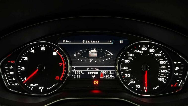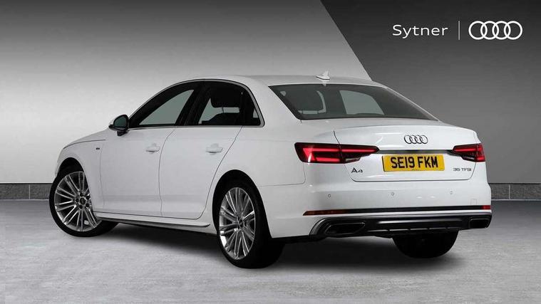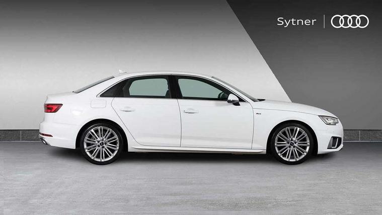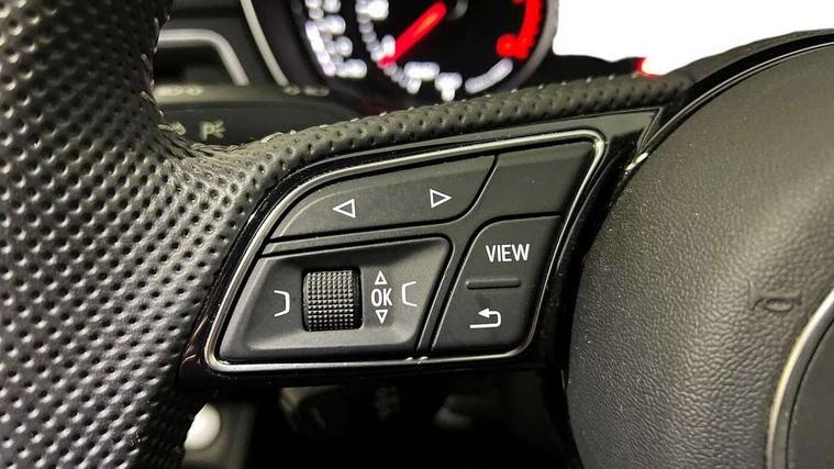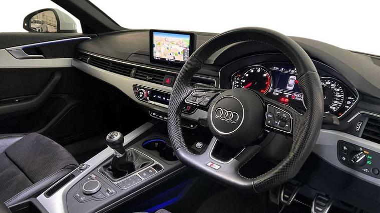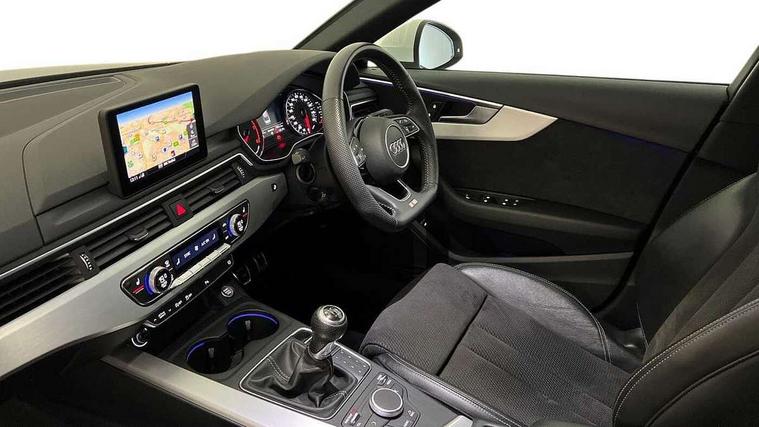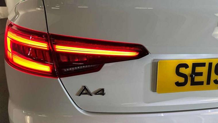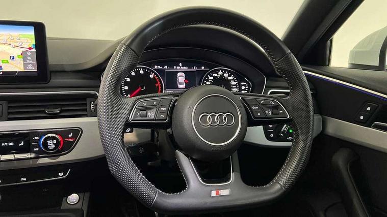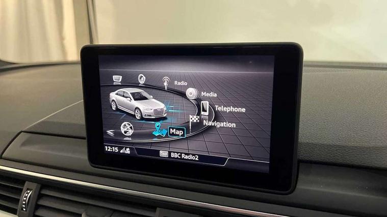 7" Colour driver information system, Audi connect safety and service (e-call), Audi drive select, Audi parking system plus with front and rear sensors, Audi Pre sense collision avoidance, Bluetooth interface, Electric boot release, Electromechanical power steering, MMI SD card Navigation, Service interval indicator, Stop/start button, Voice control system, 54 litre fuel tank, 2 USB interfaces and Aux-In jack, DAB digital radio module, Acoustic windscreen, Air inlets in titan black with two horizontal inlays in chrome, Aluminium window trim, Auto dimming rear view mirror, Automatic headlights + automatic windscreen wipers, Black grained rear grille, Blue tinted glass, Body colour bumpers, Body colour door handles, Body colour door mirrors, Chrome rolled exhaust, Chrome tailpipe finisher, Electric front windows, Electric rear windows, Headlight range control, High beam assistant, High gloss black triangular aperture at rear door, LED daytime running lights, LED indicators in door mirrors, Rain and light sensors, Rear diffuser in Twilight grey matt, S Line badges on the front wings, S line front and rear bumpers with side skirts, Twilight grey matt radiator grille with chrome inlay, 3 zone climate control, 4 way electric lumbar support for driver and front passenger, 40/20/40 split folding rear seats with rear centre armrest, Black cloth headlining, Contrast stitching on seats, steering wheel and gear lever gaiter, Front centre armrest, Front headrests, Front/rear floor mats, Height and reach adjustable steering wheel with full size airbag, Illuminated door sill finishers, Isofix child seat preparation for front passenger/outer rear seats inc passenger airbag deactivation, Jack and tool kit, Luggage compartment carpet, Perforated leather gearknob, Rear headrests, Stainless steel foot rest, Stainless steel pedals, Sunvisors with vanity mirrors, Top tether anchor plate for isofix child seat, Non Smokers pack, S line exterior styling pack - A4 Saloon, 3 point seatbelts on all rear seats, Adaptive driver and front passenger airbags, Electromechanical parking brake, Electronic stabilisation control including ABS, ASR and EDL, Front head airbags, Front seatbelt pretensioners + load limiters, Front side airbags, Multi-Collision braking, Pop-up bonnet for pedestrian protection, Seatbelt warning, Traction control, Tyre pressure warning, Variable restraint system, Warning triangle and first aid kit, Anti theft alarm, Keyless Start, Locking wheel bolts, Remote central locking, Thatcham category 1 alarm + immobiliser, MMI radio plus with smartphone interface, Tyre repair kit,