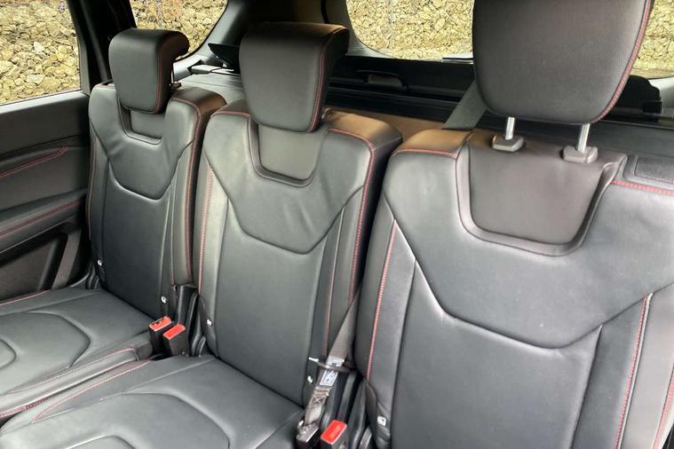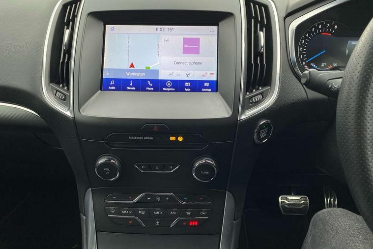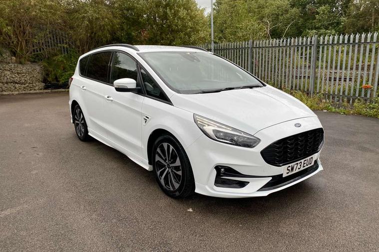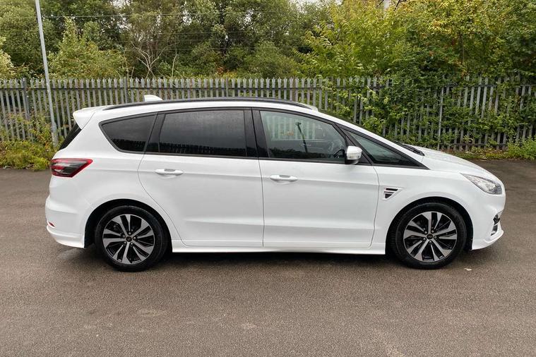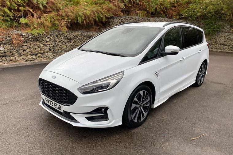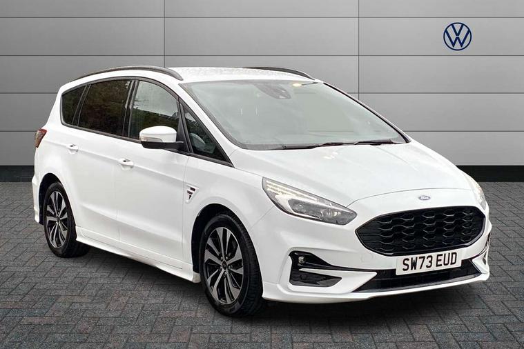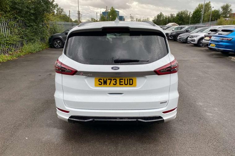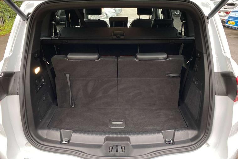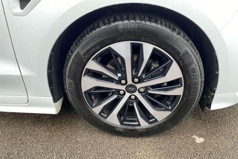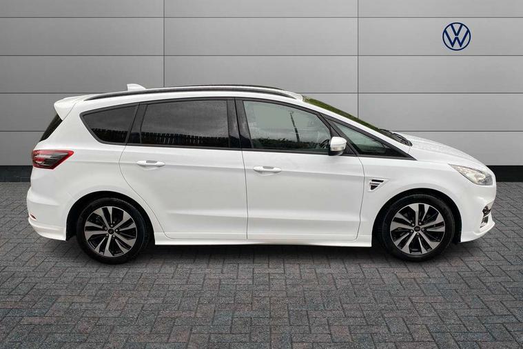 'Ford Power' starter button, 10.1" semi digital cluster, Easy fuel capless refuelling system, eCall emergency call system, Lane keeping aid including driver impairment monitor and active steering with lane departure warning, PAS, Rotary gear shift dial, Traffic sign recognition, Unique instrument cluster, Sports suspension, Steering wheel mounted controls, 3rd brake light, Auto dimming rear view mirror, Automatic headlights, Automatic wipers with variable sensitivity adjustment, Black trim to side windows, Body colour door handles, Body coloured bumpers, Full body coloured trim, Halogen front fog lights, Halogen projector headlights, LED daytime running lights, LED rear lights, Power fold mirrors - heated, indicators with puddle lamps, Power operated front and rear windows, Quickclear heated front windscreen, Rear privacy glass - dark glass to rear windows, Rear side wing doors, Rear spoiler, ST-Line illuminated scuff plates, Tailgate wash/wipe, Tinted glass, Unique front, rear and side sports bodystyling with dark exterior detailing, Unique ST-Line badging, 10 way power adjustable drivers seat with memory function, 10 way power passenger seats, 2 x 3rd row individual seats with fold flat, 230V power outlet in centre console, 3 x 2nd row individual seats wih fold flat, slide and recline, Aluminium sports pedals, Ambient lighting, Dark headliner, Dual zone electronic automatic temperature control, Floor mats in all three rows, Front and rear head restraints, Front seat back table trays, Heated steering wheel, ISOFIX attachments for child seats in 2nd row, Overhead console with sunglasses stowage, Perforated leather trimmed steering wheel with red stitching, Pollen and odor air filter, Reach and rake adjustable steering column, Salerno part leather upholstery with perforated miko suede inserts + red stitching, Single front passenger seat, Sports seats, Variable heated front seats, 3 point seatbelts on all seats, ABS/EBD, Driver/Front Passenger airbags, Drivers knee airbag, Electric handbrake, ESP+EBA, Front and rear (row 2) curtain airbags, Front side airbags, Manual child lock in rear doors, Passenger airbag deactivate switch, Pre collision assist system, Traction control, Tyre pressure monitoring system, Immobiliser, Keyless entry system, Locking wheel nuts, MyKey system, Remote control central locking, Thatcham alarm, Tyre inflation kit,