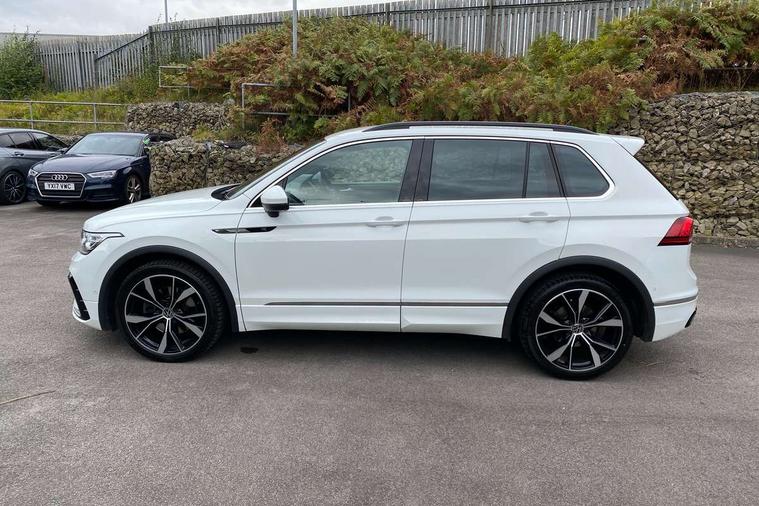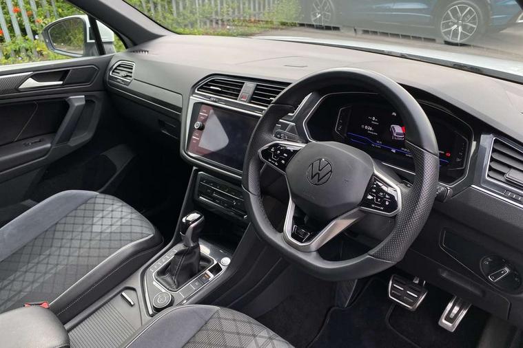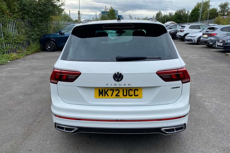 Adaptive cruise control ACC stop and go including speed limiter, App-Connect incl. App-Connect Wireless for Apple CarPlay and Android Auto, Bluetooth phone integration system, Distance control assist, Driver alert system, Driver profile selection, Dynamic road sign display, eCall emergency call system, Electromechanical speed sensitive power steering, Engine start/stop button, Lane keeping system Lane Assist, Lights on warning, Multifunction front facing camera, Outside temperature display, Premium multifunction display with multi colour display, Remote control boot opening, Rev counter, Revision / skills operating concept travel assistant, Service interval indicator, Speed limit display, Start/stop system with regenerative braking, Trip computer, Warning sound and light for doors and tailgate open, All wheel drive - 4Motion, Battery regeneration during braking, Diesel particulate filter, Misfuel prevention device for diesel engine, Selective Catalytic Reduction, XDS electronic differential lock for improved traction and handling, 4 X 20 watt output, 8 Speakers, Diversity antenna for FM reception, Radio, SD card slot, Simultaneous pairing of 2 compatible mobile devices, SMS functionality - read, compose and send SMS messages using touch-screen display, Title and cover art display, USB C ports, Auto dimming interior rear view mirror, Automatic headlight control system, Body colour door handles, Chrome moldings on the side windows, Coming/leaving home lighting function, Dynamic headlight range control, Front and rear electric windows, Heated rear window, High level 3rd brake light, Laminated safety glass windshield, heat and sound insulating, LED headlamps with LED separate daytime running light and dynamic cornering light, LED rear combination lamps, LED rear number plate lights, License plate carrier in front and rear, Poor weather light and cornering light, R Line body kit, R Line side sills, Rain sensor windscreen wipers, Rear exhaust tailpipe, Rear fog lamp, Rear side wing doors, Rear spoiler in R style, Rear windscreen washer and wiper with interval delay, Side and rear windows in heat insulating glass, Trailer Stability Programme, Unique R Line badging, Windscreen wipers/ intermittent wipe + 4 position delay, 12V outlet in center console rear and in luggage compartment, 12V outlet in front and tray, 2 cup holders in front, 2 LED front reading lights, 2 LED rear reading lights, 3 bench rear seats in 2nd row, 3 rear headrests, 4 load lashing points, 40:20:40 split folding rear seats, Air Care Climatronic 3 zone automatic climate control with enhanced air filter and controls in the rear, Backrest release for left front seat, Black headlining, Brushed stainless steel pedals and footrest, Carpet mats in front and rear with decorative stitching in Gray, Climate control unit rear with touch function, Door and side trim panel in foam film, insert in leatherette, Front centre armrest, Front footwell illumination, Front seats head restraints (x-adjustment), Height adjustable front seats, Height/reach adjust steering wheel, Instrument lighting white adjustable panel illumination, Interior light with delay, Isofix Preparation 2 Rear child seats, Leather gear knob, Lockable cooled glovebox, Luggage compartment lighting, Luggage net, Rear bench seat asymetrically split folding, longitudinally movable and folding with load-through hatch and center armrest, Remote unlocking for rear seat backrest, Removable luggage cover, Removable rear headrests, Safety optimised front head restraints, Single front passenger seat, Sliding/reclining rear seats, Standard rear seat release, Storage compartment in driver's door, Storage compartment in passenger's door, Storage compartment in rear doors, Storage compartments in luggage area left and right, Storage tray on dashboard, Sun visors with illuminated vanity mirrors, Top front comfort seats, Variable boot floor, height adjustable and removable, Driver assistance pack plus - Tiguan DSG, 3 point seat belt for centre rear seats, 3 point seat belts with seat belt pretensioners for the outer rear seats, Active bonnet, Curtain airbags for front and rear passengers, Driver/Front Passenger airbags, Drivers knee airbag, Electronic parking brake with auto hold, Electronic Stability Control with driver steering recommendation, ABS, ASR, EDL, EDTC and trailer stabilization, Front assist with autonomous emergency braking (for Adaptive Cruise Control ACC up to 130 mph), Front disc brakes, Front passenger airbag deactivation, Front side airbags, Height adjustable front 3 point seatbelts + pretensioners, Hill hold control, Manual child proof rear door locks, Pedestrian monitoring system, Power assisted brakes, Proactive passenger protection system in combination with front assist, Rear disc brakes, Rigid safety cell with front and rear crumple zones, Two tone horn, Warning sound and light for front seat belts if unfastened, Anti theft alarm system with interior monitoring, backup horn and towing protection, Anti theft wheel bolts, Electronic engine immobiliser, Tool kit,