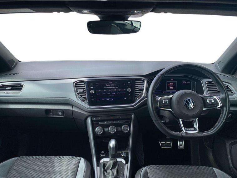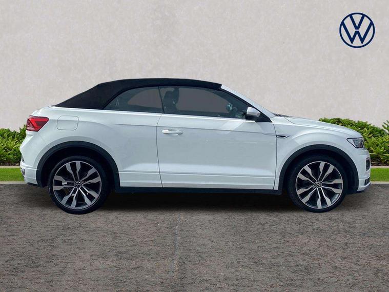 8" colour touch screen, Active Info display 10.25" high resolution TFT dash display with customisable menu and information, Adaptive cruise control, Bluetooth telephone and audio connection for compatible devices, Brake pad wear indicator, Car information display, Car-Net Security and Service, Driver alert system with fatigue detection, Driver tips and journey analysis, Dynamic road sign display, Emergency call service, Lane assist with warning text instrument cluster, Mobile phone interface, Modified key software - reduce switch off time for key status change to Long no motion, Multifunction computer with visual gear change recommendation for fuel consumption, Navigation system discover media including streaming and internet, Online services, Progressive power assisted steering, Speedo and rev counter, electronic odometer, trip, service interval display, digital clock and fuel gauge, Start/stop system with brake energy recovery, Tailgate/trunk lid release from outside, Warning sound and light for front seatbelts unfastened, Wired and wireless app connect, Bluetooth - Simultaneous pairing of 2 compatible mobile devices, DAB Digital radio, Diversity antenna for FM reception, Music playback - MP3, WMA and AAC files, SMS functionality - read, compose and send SMS messages using touch-screen display, Title and cover art display, USB-C Interface and USB charging socket, WeConnect plus, Auto dimming interior rear view mirror, Automatic coming/leaving home lighting function and daytime running lights, Automatic hazard lights activation under emergency braking, Body colour rear roof spoiler, Body coloured exterior mirror housings and door handles, Chrome effect left and right trapezoid exhaust tailpipe fascia surround, Chrome trim on upper and lower radiator grille, Darkened LED tail lamp, Dusk sensor, Dynamic headlight range control with self adjusting whilst driving, Electrically power adjustable, heated, folding, auto dimming, front passenger exterior door mirror lowering function, Front and rear electric windows, Front fog lights with static cornering function, Heat insulating glass windscreen, High level 3rd brake light, LED darkened rear light clusters, LED headlamps with automatic range adjustment and unique signature LED separate daytime running lights, LED rear number plate lights, LED tail lamp rear comination lamps, Power operated canvas convertible top, R-Line design body coloured bumpers, Rain sensor, Rear exhaust tailpipe, Rear fog lamp, Volkswagen roundel, Windscreen wiper with intermittent wipe light, 12V socket in centre console storage area, 2 front reading lights, 3 spoke leather wrapped multifunction sport steering wheel, 50/50 rear seat bench split folding rear seat backrests, Activated charcoal canister for intensified evaporation system, Chrome plated surround to light, mirror and window switch, Climate control - 2 zone electronic air conditioning with automatic air recirculation and allergy filter, Door and side trim panel in foam film, insert in leatherette, Entry aid easy entry (Front folding seats), Front + rear carpet mats, Front centre armrest, Front cupholders x 2, Front seat back storage pockets, Front sports comfort seats with manual height adjustment, Glove Compartment with light, Height/reach adjust steering wheel, Illuminated vanity mirrors in sun visors with air bag label on sun visor and b-pillar, Instrument lighting, white adjustable panel illumination, Interior light delay, Interior light in footwell, Isofix easy fit child seat preparation for 2 outer rear seats, Luggage compartment lighting, Power adjustable lumbar support in front, Rear head restraints, Scuff plates in door apertures, Stainless steel pedals, Storage compartments in driver and front passenger doors, Unique R Line door sill protectors, White ambient lighting, 2 x 3-point rear seatbelts, ABS, Autonomous emergency braking, Driver and front passenger safety-optimised head restraints, Drivers and front passengers airbags with passengers deactivation switch, Drivers seatbelt reminder, Electronic parking brake with auto hold, Electronic stability control (ESC) includes ASR, EDL, EDTC and trailer stabilisation function, Front assist with city emergency braking and pedestrian monitoring, Pedestrian monitoring, Predictive pedestrian protection, Rigid safety cell with front and rear crumple zones, Side airbag/thorax airbag system, for front passengers, Single tone horn, Three point height adjust front seatbelts + pretensioners, Tyre pressure loss indicator, Tyre pressure monitor, Ventilated front and rear disc brakes, Volkswagen roadside assistance, Alarm with interior protection and deactivation via infotainment system, Electronic engine immobiliser, Shadow steel matt decorative inserts in dash and door panel,