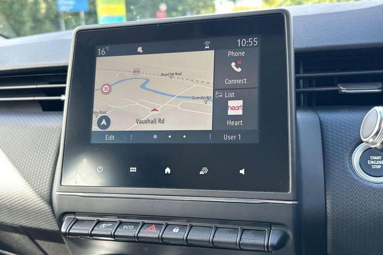 4.2" colour instrument display, Cruise control + speed limiter, E-call, Easy link 7"screen with nav, 4x20W amp, DAB double tuner, 2xUSB, 1xJack/Bluetooth, and smartphone integration plus - Apple CarPlay/Android Auto, Eco mode driving function, Gear change indicator, Lane departure warning system, Lane keep assist, Over speed prevention, Rear parking sensors, Traffic sign recognition, Trip computer, Variable assistance electric PAS, Body colour door handles, Body colour door mirrors, Body coloured bumpers, Body coloured rear spoiler, Chrome insert on lower side doors with Clio embossing, Drivers one touch window with anti-pinch feature, Electric adjustable/heated/folding door mirrors, Electric front windows, Electric rear windows, Exterior rear hidden door handles, Full LED front and rear headlamps integrating daytime running lights at the front and rear, Rear fog lights, Rear wiper, Tinted rear windows, Variable speed on front windscreen wipers, 12V Accessory socket, 3 rear height adjustable headrests, 6.2L front glovebox, 60/40 split rear seats, Air recirculation control, Auto climate control, Centre console with armrest, Cloth upholstery, Driver's seat height adjustment, Front cupholders, Front door storage bin, Height adjustable front headrests, Height adjustable passenger seat, Height/reach adjust steering wheel, Isofix system on outer rear seats, Multi function steering wheel, Pollen filter, Synthetic leather steering wheel, System for Restraint and Protection SRP-front seats, Comfort pack - Clio HB, 3 point seatbelts on all rear seats, ABS+EBD+Brake assist, Automatic emergency braking system, Curtain airbags, Distance warning alert, Driver and passenger front and side airbag deactivation, Driver/Front Passenger airbags, ESC - Electronic Stability Control + traction control, Front side airbags(head+thorax), Height adjustable driver's seatbelt, Hill start assist, Seatbelt warning, Tyre pressure warning, Central door locking, Deadlocking system, Hands free key card with push button, start and stop function, Locking fuel filler cap, RAID (Renault Anti-Intruder Device) with automatic door locking, Rear side wing door and window child locking function (front driver door control panel), Remote central locking with thatcham approved immobiliser, 16" Philia diamond cut alloy wheels,