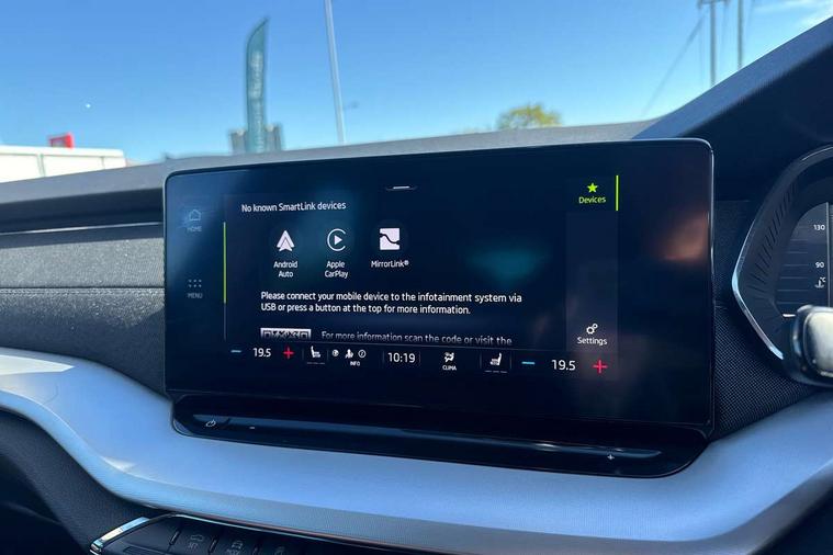 1x USB Type C port in rear view mirror (charging only), 2x USB Type C ports in rear of front centre armrest (charging only), Bluetooth system, Boot lid release from inside vehicle (electrically), Columbus satellite navigation with 10" touchscreen display, Driver fatigue sensor, eCall emergency system, Electro-mechanical power steering, Front and rear parking sensors with manoeuvre assist, Front assist system, Speed limiter, Turn Assist, Virtual Cockpit - 10.25" digital display, Voice control system, Wireless SmartLink for Apple Car Play, 2x USB Type C ports (for charging and data transfer), 8 Speakers, DAB Digital radio, Aero front windscreen wipers with intermittent function, Auto dimming rear view mirror, Body colour door mirrors and handles, Chrome grille surround, Chrome strip in lower front bumper, Chrome window surround, Electric front and rear windows, Headlight washers, Heated rear windscreen, High level third brake light, Ice scraper in fuel cap, Rain and light sensors, Rear fog light on one side, Rear privacy glass, Rear side wing doors, 3 rear headrests, 3 seat bench in 2nd row, 4 foldable roof handles, Chrome inner door handles, Front centre armrest, Front head restraints, Grey headlining, Heated front seats, Illuminated glovebox, Leather trimmed gearshift lever, Luggage compartment lighting x1 light, Microsuede cloth upholstery, Parcel shelf - folding, Satin black microsuede with grey stitching in padded dash panel, Single front passenger seat, Sunglasses storage, Textile floor mat set, Ticket holder, Two-spoke leather multi function steering wheel with paddles, Umbrella in door panel, Unsplit rear bench seat and split folding backrest, 3 point front/outer rear seatbelts+pre-tensioners, Alarm with interior monitoring, tilt sensor and back up horn, Automatic door unlocking in case of crash, Automatic fuel cut off in case of crash, Automatic warning lights in case of emergency braking, Curtain airbags and front side airbags, Driver and front passenger airbags, Drivers knee airbag, Electronic parking brake, ESC including ABS, EBV, MSR, ASR, EDS, HBA, DSR, Front central airbag, Hill hold control, Hill start assist, ISOFIX on front passenger seat and outer rear seats, Manual rear child locks, Passenger airbag deactivate switch, Pro active services, Rear disc brakes, Two tone horn, Tyre pressure monitor, Visual and acoustic seat belt reminder, Warning reflectors in front door, Door locks with immobiliser, Keyless entry and start/stop including rear doors, Remote central locking, Chrome air vent surrounds, Silver squares haptik decorative inserts,