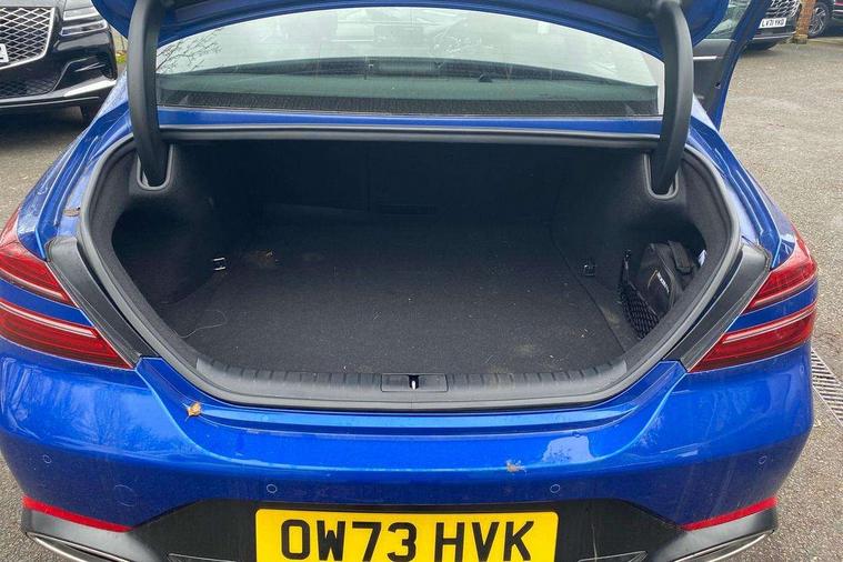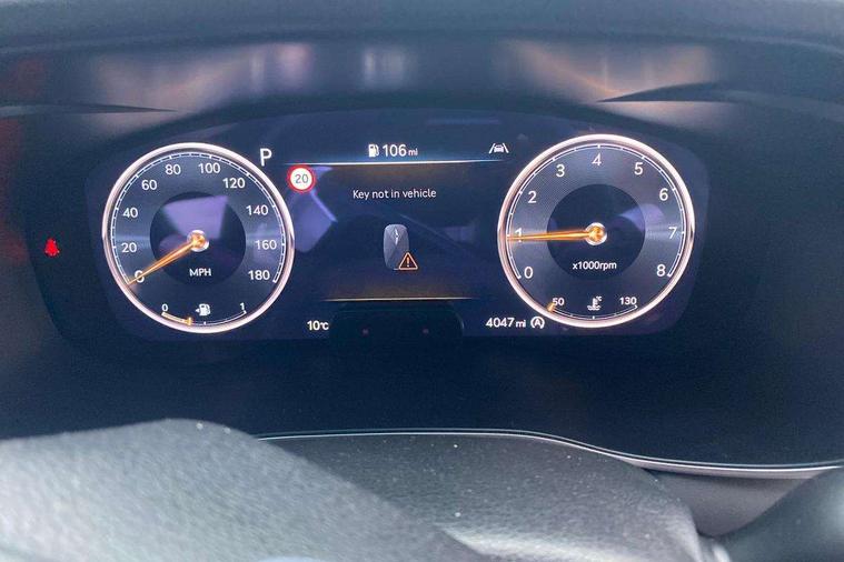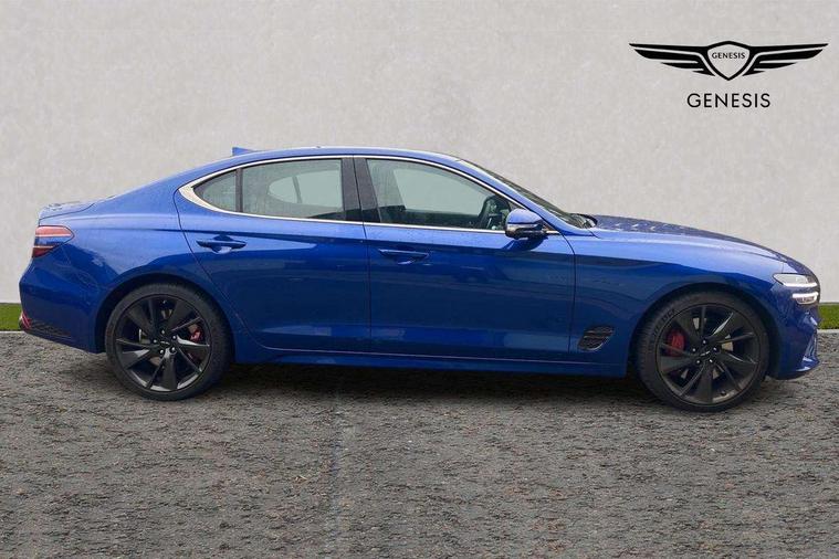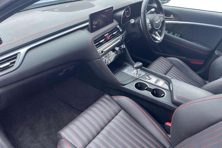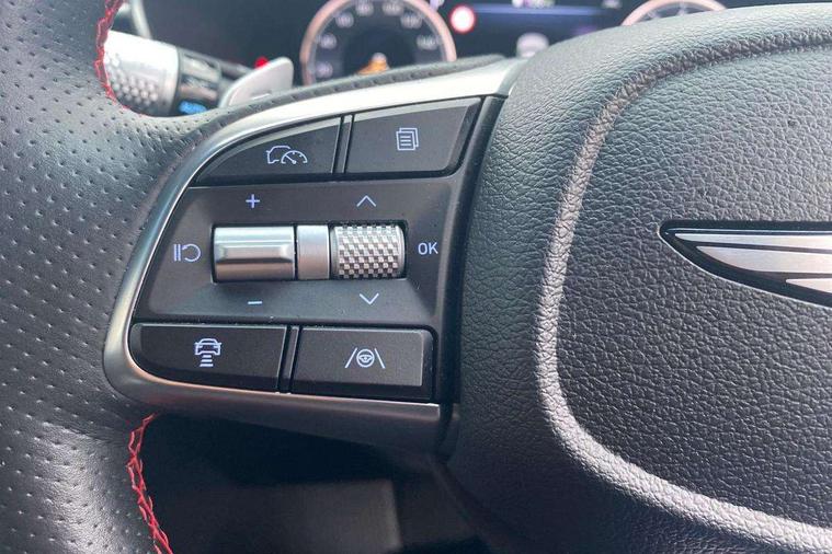 10.25" navi screen + DAB radio + phone mirroring + genesis connected, 8" Dashboard cluster TFT display, Blind spot collision avoidance assist rear (BCA-R), Bluetooth connectivity with voice recognition, eCall emergency call system, Electric power steering, Electric rear tailgate opening, Forward Collision Avoidance Assist Junction Turning (FCAJX), Highway Driving Assist (HDA), Intelligent speed limit assist (ISLA), Lane Following Assist (LFA), Lane keeping assist (LKA), Lighting backup guidelines, Manual speed limit assist (MSLA), Rear parking sensors, Rear view camera with dynamic guidelines on screen, SCC smart cruise control with stop and start, Electronically controlled suspension, Limited slip differential, Standard power engine, 1x USB front, Steering wheel audio remote control, Auto headlights, Auto high beam + dusk sensor, Auto up/down windows, Automatic window defogger, Black painted dual rear muffler and chrome coating, Body coloured outside door handles, Dual front LED low and high projection headlamps, Electrochromic inside rear view mirror, Electrochromic outside rear view mirrors, Laminated front side glass, LED daytime running lights, LED rear combination lamp, LED rear fog lamp, LED rear stop light, Outside electrical folding rear mirror, Outside rear mirrors electrical adjustment + heated, Puddle lamps with logo, Rain sensor, Rear boot, Rear side wing doors, Sport appearance, Tow hitch receiver, Windshield acoustic film, 2nd row heating floor output, 3 seat bench in 2nd row, 4 way mechanical electric lumbar support for driver, 60:40 split back folding and cushion for 3 passengers, Central armrest, Console storage box, Console ventilation duct, Drink holder at centre armrest, Electrically adjustable driver seat, Front air condition with dual zone adjustment, Front headrests, Front passenger seat, Front power outlet, Heated steering wheel, Leather gear knob, Metallic pedals, Paddle shifter, Passenger dual height adjuster, Perforated leather with metal grain steering wheel, Premium air filter, Rear headrests, Soft paint interior garnish, Tilt/up and down headrest adjustment, USB charger console inside (1port), USB charger console outside (1port), USB charger front tray (1port), 18" front brake ventilated disc, 18" rear brake ventilated disc, 3x3 point rear seat belts, ABS + ESC + HAC + MCB (Multi Collision Brake), Brembo premium brakes, Driver and passenger depowered airbag, Driver knee airbag, Electronic parking brake with auto hold, Forward collision avoidance system (car/pedestrian/bicycle), Front center side airbag, Front thorax and pelvis + rear thorax + side curtain (ff/rr) airbag, Rear door child safety locks, Rear seat alert without sensors, Tyre pressure monitoring system, Upper and lower rear Isofix child anchor, Central door lock driver's control, Immobilizer + deadlock, Smart key/button start, Leatherette dashboard,