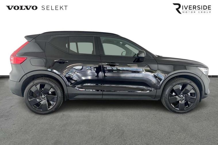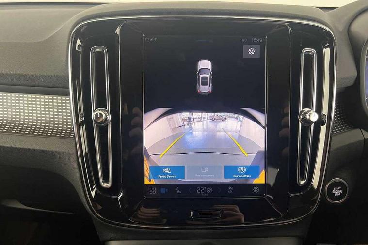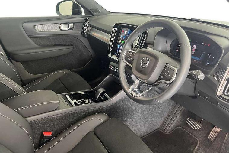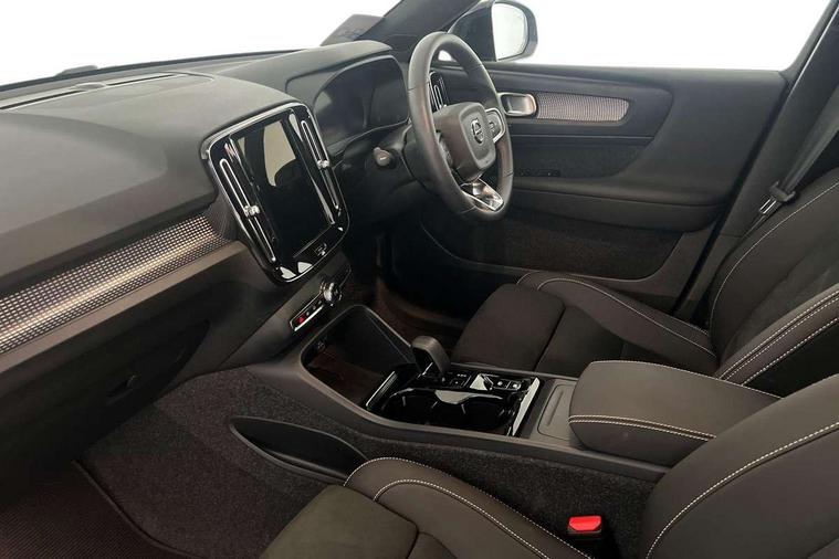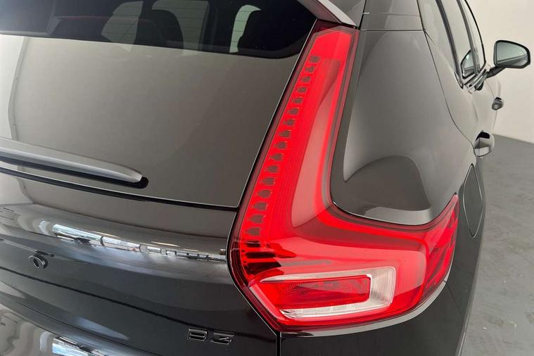 12.3" Progressive Driver Display, 9" centre console portrait touch screen, Adjustable steering wheel force, Android auto (Wired), Apple carplay (wired), Bluetooth handsfree system, Driver alert control, Driver assistance (pilot assist and adaptive cruise control), Driver awareness - Blind spot information system with steer assist, cross traffic alert with autobrake and rear collision warning and mitigation, E-call, Front park assist, Google automotive services - Enabled entertainment apps, navigation with google maps, voice recognition with google assistant, Hands free power tailgate, Intelligent speed assistance, Lane keeping aid, Oncoming Lane Mitigation, Rear park assist, Speed sensitive steering, Volvo cars services with app - Driving journal, emergency and breakdown call, engine remote start, remote door locking/unlocking and vehicle dashboard, Wireless/Inductive Mobile Phone Charging, Automatic transmission with start/stop and manual change functions, Dynamic chassis, DAB Digital radio, Steering wheel mounted remote controls, Adaptive brake lights with high level LED brake lights, Auto dimming feature for exterior door mirrors, Auto dimming interior mirror, Automatic headlamp levelling, Automatic LED Headlights + Active high beam incorporating daytime running lights, Colour coordinated auto folding and heated power door mirrors, Dark tinted windows - rear side windows and rear screen, Front aluminium tread plates, Front and rear electric windows, High gloss black front and rear skid plate, High gloss black front bumper deco, High gloss black front grille strikethrough and ironmark, High gloss black rear model, engine and volvo logo badges, High gloss black window trim, Home safe and approach lighting, Integrated roof rails in high gloss black, LED front fog lights, Puddle lights, Rain sensor with automatic windscreen wiper activation, Rear side wing doors, Rear wiper, Roof antenna, Roof spoiler, Visible VIN plate, 12V socket in front tunnel console and luggage compartment, 2-Zone electronic climate control with CleanZone air quality system and pollen filter, 3 seat bench in 2nd row, 3 Spoke tailored steering wheel with chrome trim, 60/40 versatile split folding rear seat, Centre console cupholders and storage, Charcoal headlining, Connect textile/microtech upholstery, Flexible load floor and grocery bag holder, Floor mats, Front cabin courtesy lights, Front door pocket, front cupholder, ambient front door, rear reading, rear courtesy, instrument panel and tailgate lighting, Front footwell illumination, Front headrests, Front reading lights, Front seat cushion extensions, Front side step illumination (under door), Glovebox bag hook, Heated front seats, Height adjustable passenger seat, Height/reach adjustable steering column, High gloss centre tunnel deco, Illuminated glovebox, Illuminated luggage compartment, Illuminated vanity mirrors + ticket holder, Integrated waste bin, Isofix attachments on outer rear seats, Load cover, Load protection net, Multi directional lumbar support for driver and passenger seat, Power driver seat with memory + exterior mirrors memory, Rear armrest with cupholders, Rear headrests, Single front passenger seat, Underfloor cargo storage, Climate pack without heated front seats - XC40, 3x3 point rear seatbelts, City safety with steering support with Pedestrian + cyclist + front collision warning with full auto brake and rear auto brake, Driver and passenger airbags, Drivers knee airbag, Electronic parking brake with auto hold, First aid kit, Front and outer rear seatbelt reminder and pretensioners, Front seats SIPS airbags, Hill descent control, Hill start assist, Inflatable curtain, Passenger airbag cut-off device, Power child locks on rear doors, Road sign information display, Run off Road Protection, SIPS (Side Impact Protection System), Slippery road and hazard light alert, Stability and Traction Control with Spin control, Engine Drag Control and Corner Traction Control, Tyre pressure monitoring system, Vehicle deceleration control with Anti-lock Brake System, Electronic Brake Distribution and Emergency Brake Assist, Warning triangle, WHIPS whiplash protection system - front, 2 x Key integrated remote control central locking including with deadlocking system and auto open/close windows, Anti-theft alarm including immobiliser/volume sensor + level sensor, Keyless drive includes keyless entry and keyless start, Locking wheel nuts, 20" 5 spoke high gloss black alloy wheels,