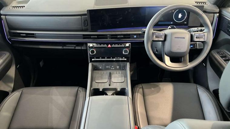 12.3" Drivers supervision instrument cluster with LCD display, 360 degree parking sensors, Blind spot collision avoidance assist (BCA), Blind spot view monitor (BVM), Bluelink and Wireless Apple Carplay/Android Auto, Bluetooth connectivity with voice recognition, Drive mode selector, Driver status monitor (DSM), Dual wireless phone charging pad, Emergency services call system, Forward collision avoidance assist (FCA 2.0), Head up Display, Highway drive assist 2 (HDA 2), Intelligent speed limit assist (ISLA), Lane departure warning system (LDW), Lane Follow Assist 2 (LFA 2), Lane keeping assist (LKA), Low washer fluid warning, Navigation based smart adaptive cruise control with stop and go, Over the air software updates (OTA), Parking Collision Avoidance Assist-Reverse (PCA-R), Power assisted steering, Remote smart parking assist, Safe exist assist (SEA), Smart electric tailgate with hand's free opening function, Surround view monitor, Self levelling suspension, Shift by Wire Gear Selector (SBW), 12.3" Touchscreen display with satellite navigation, 2nd Row USB C Ports x2 Charging, 3rd Row USB C Ports x2 Charging, Front USB C port 1 charging and 1 data/charging, Premium BOSE sound system with 12 speakers and subwoofer, Steering wheel audio, phone and cruise controls, Automatic headlights with dusk sensor, Automatic windscreen wipers with rain sensor, Black Styling (Skid plate, Fender upper garnish, Door side garnish, C/D pillars, Rear bumper moulding, DLO), Body colour bumpers, Digital centre mirror, Dynamic welcome light, Electric adjustable/heated/auto power folding door mirrors, Front and rear electric windows, Heated rear window, Hidden C pillar assist handle, Hidden rear wiper, High beam assist, LED daytime running lights, LED Headlights, LED indicator lights, LED indicators in door mirrors, LED positioning lights, LED taillights, LED third brake light, Manual rear door blinds, Rear side wing doors, Rear windows and tailgate privacy glass, Roof rails, Solar glass windscreen and front windows, Windscreen auto defog function, Windscreen with acoustic film, 2nd and 3rd row center armrest with cupholder, 3rd row head restraints, Centre rear head restraint, Driver and front passenger premium relaxation seats, Dual zone climate control air conditioning, Electrically adjustable front seats with 2 way electric lumbar support, Front head restraints, Front seats with memory, Heated front seats, Heated rear seats, Height and reach electrically adjustable steering column, Leather wrapped heated steering wheel, Luggage cover, Luggage hooks, Luggage net, Multi colour LED ambient lighting, Nappa leather upholstery, Rear head restraints, Single front passenger seat, Split folding (50/50) third row seats, Split folding (60/40), sliding and reclining second row seats, Sun Visors with driver and passenger illuminated vanity mirrors, Two front cup holders, UV-C Tray, Ventilated front seats, Trailer wiring pack - Santa Fe, 3 point seatbelts on all seats, Adjustable regenerative braking paddle shifters, Airbag - Front, front side, curtain and centre front airbags, Anti-lock brake system (ABS), Dynamic brake control, Electric parking brake with auto hold function, Electronic Stability Control (ESC), Hill start assist control (HAC), Manual child lock in rear doors, TSA (Trailer Stability Assist), Tyre pressure monitoring system, Immobiliser, Smart Key - Keyless entry with Power On/Off button, Black ink interior decals, 20" Black calligraphy alloy wheels, Tyre mobility kit,