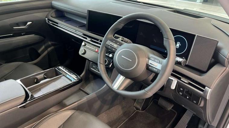12.3" LCD display with driver's supervision instrument cluster, 12.3" widescreen navigation with bluelink and mapcare, Blind spot view monitor, Bluetooth system, Cruise control - smart adaptive speed control with stop and go function, Digital clock, Drive mode selector, Driver attention warning, E-call, Emergency stop signalling system, Forward Collision Avoidance Assist (FCA) - Car, Pedestrian and Cycle, Forward Collision Avoidance Assist Junction Turning (FCAJX), Front and rear parking sensors, Front, rear and side parking distance warning, Highway Driving Assist (HDA), Hyundai road side assistance, Intelligent speed limit assist, Lane follow assist, Lane keep assist, Over the air updates(OTA), Parking collision avoidance assist (PCA), PAS, Rear camera and guidance parking system, Rev counter, Smart power tailgate, Surround view monitor, Tailgate open warning light, Trip computer, Trip odometer, Voice recognition, Water temperature gauge, Windscreen washer fluid sensor and warning indicator, Wireless Apple CarPlay/Android Auto, Wireless phone charging pad, 2 front and 2 rear USB-C ports, DAB Digital radio, Krell premium audio system with 8 speakers and subwoofer, Steering wheel mounted audio/phone controls, Adjustable intermittent front windscreen wipers with aero wiper blade, Auto dimming rear view mirror, Automatic defog system, Automatic headlights with dusk sensor, Automatic windscreen wipers with rain sensor, Black wheel arches, Body colour bumpers, Body colour door mirrors with integrated indicators, Body colour exterior door handles, Electric tilt/slide panoramic sunroof, Electrically adjustable, heated and power folding door mirrors, Follow me home headlights, Front and rear electric windows with anti-trap mechanism and one touch control, Front fog lights, LED 3rd brake light, LED daytime running lights, LED rear lights, Matrix LED headlights, Positioning Lights - LED, Privacy glass - Rear windows and tailgate, Rear side wing doors, Rear wash/wipe with intermittent wipe setting, Roof rails, Tinted glass with windscreen shade band, Trailer stability assist, 12V power outlets in front console and luggage compartment, 3 seat bench in 2nd row, 40/20/40 split folding rear seat, 64 colours interior ambient lighting, Adjustable head restraints (Up and down), Cupholders in rear armrest, Door courtesy lights, Driver and passenger sunvisors with illuminated LED vanity mirrors, Driver's seat electric adjustments, Driver's seat memory, Front and rear door pockets, Front armrest with storage box, Front centre console and door bottle holders, Front passenger's seat electric adjustments, Heated front seats, Heated rear seats, Heated steering wheel, Height/reach adjustable steering column, Illuminated/air conditioned glove compartment, ISOFIX child seat anchorage points attached on outer rear seats, Leather upholstery, Leather wrapped steering wheel and gear knob, Luggage compartment lighting, Luggage cover, Luggage hooks, Luggage net, Map and reading lights, Rear seat remote folding function, Rear side window sunblind, Reclining rear seats, Retractable load cover, Single front passenger seat, Sunglasses holder, Three zone climate control, Touch sensitive climate controls with temperature dials, TUCSON branded metal door scuff plate, Underfloor boot compartment, Ventilated front seats, Trailer wiring package - Tucson, 3x3 point rear seatbelts, Active bonnet, Airbag - Front, front side, curtain and centre front airbags, Anti-lock brake system (ABS), Brake assist function, Childproof rear door locks, Curtain airbag roll over sensor, Downhill brake control, Electric parking brake, Electronic stability control, Front and rear seatbelt reminder, Front passenger airbag deactivation switch, Front seatbelt pretensioners, Hill start assist control (HAC), Multi-Collision braking, Outer rear seatbelt height adjustment, Seatbelt height adjustment for front seats, Traction control, Tyre pressure monitoring system with individual tyre pressure display - TPMS, Vehicle stability management, Deadlocks, Immobiliser, Locking wheel nuts, Remote control central locking, Smart key with keyless entry and engine start/stop button, Speed sensitive auto door locking, Thatcham category 1 alarm, 19" Alloy wheels, Tyre repair kit,