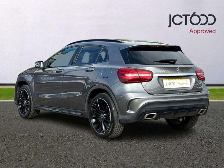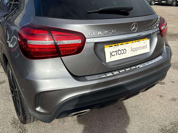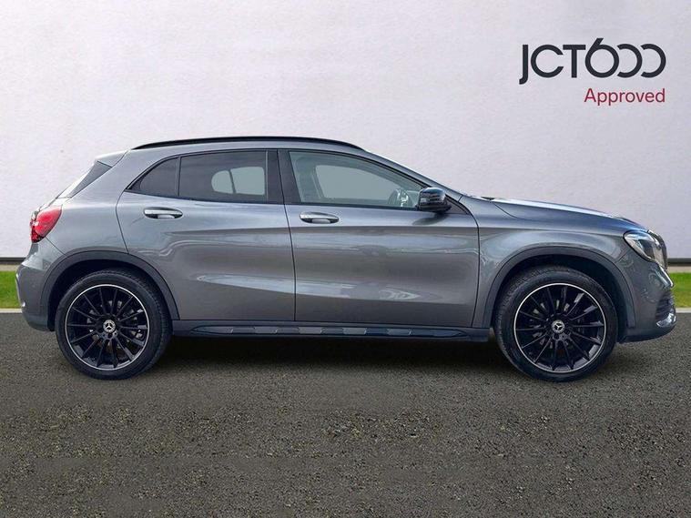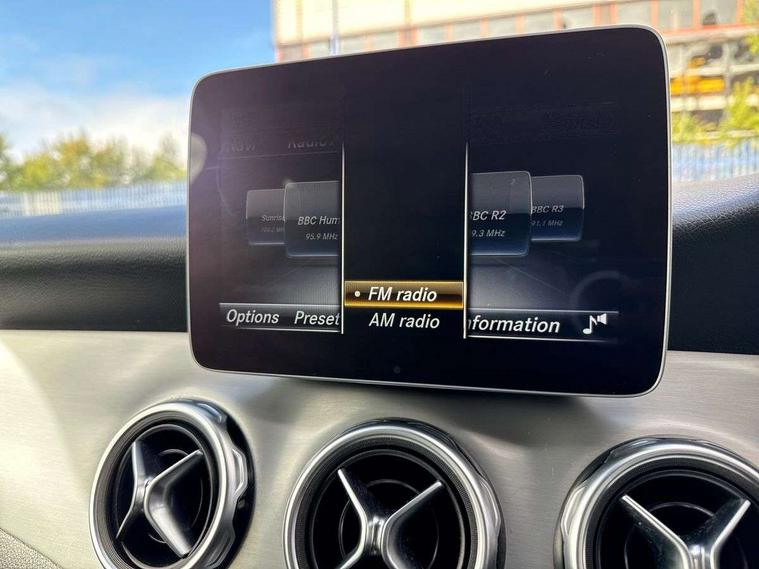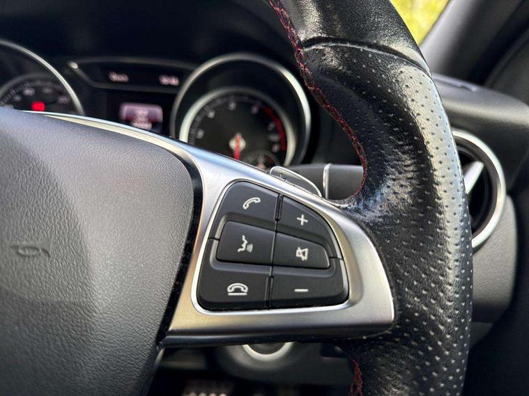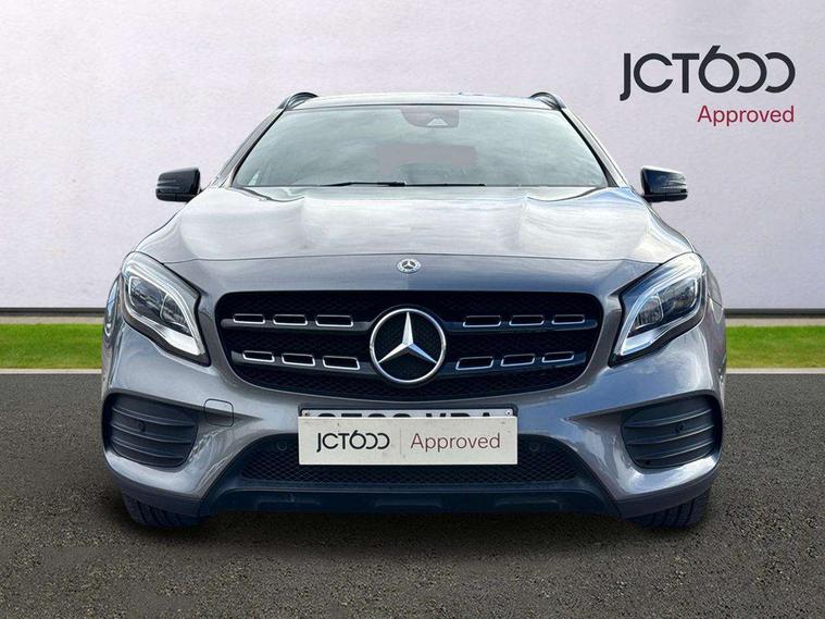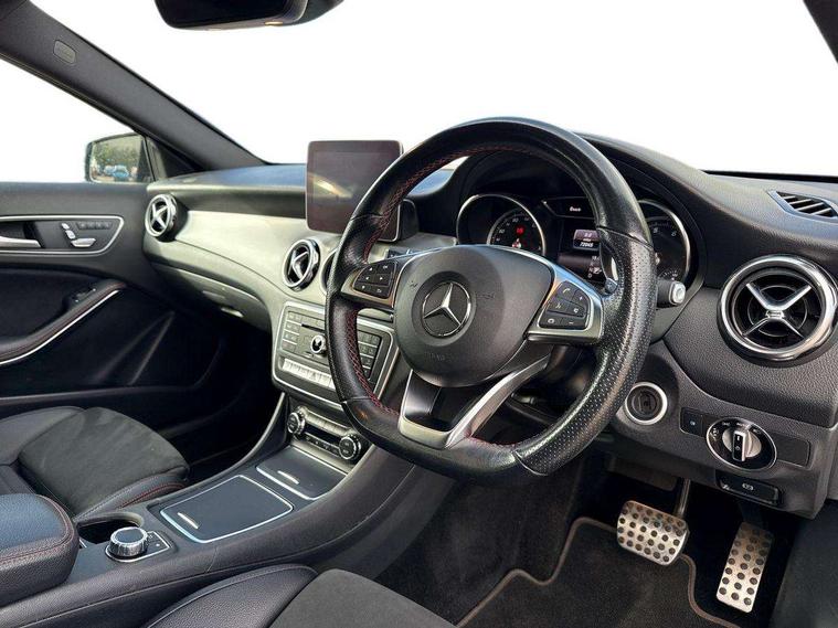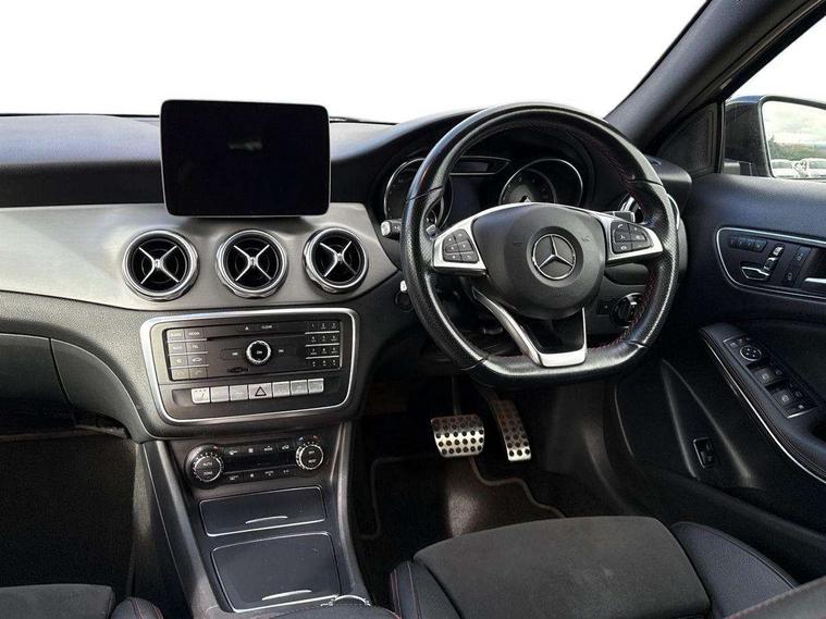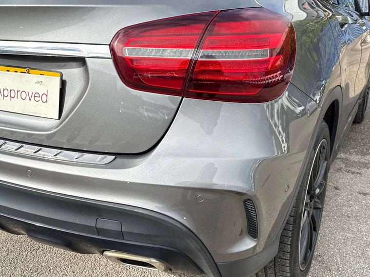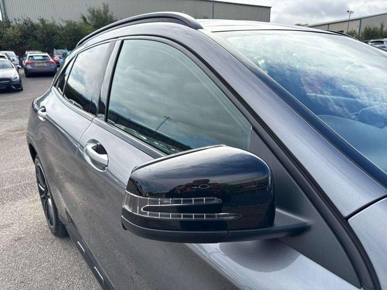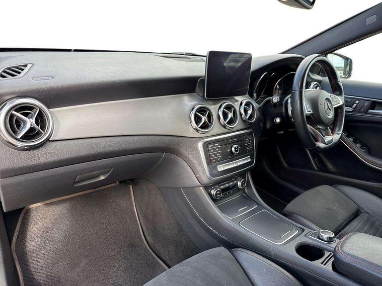 180 degree reversing camera with parking guidelines, 4 analogue dials and needles suspended in six o'clock position, Attention assist, DYNAMIC SELECT with a choice of driving modes (ECO, Comfort, Sport and Individual), Easy-pack tailgate - Powered opening/closing automatically, ECO start/stop function, Fluid level warning indicator for fuel, oil, coolant and washer fluid, Instrument cluster, Mercedes me connect including emergency call system, accident recovery, breakdown and maintenance management, Multi function trip computer, Outside temperature gauge, Parking pilot with front and rear parking sensor and steering assist, Service indicator (ASSYST), Smartphone integration with Apple CarPlay and Android auto, Sports speed sensitive direct steer system with servo assistance, Off road comfort suspension, 8" media display touchpad, Audio 20 radio/single CD/MP3, 6 speakers, telephone keypad, twin radio tuner, Bluetooth, 2 USB ports, SD card slot and Garmin Map pilot nav system, Media interface, Adaptive brake lights, Automatic headlamp activation, Body colour door handles with chrome inserts, Body coloured bumper with front and rear apron trim in matt titanium grey, Chrome beltline strips, Electric front windows, Electrically adjustable and heated door mirrors, Front door sills with Mercedes-Benz lettering, Front fog lights, Full LED tail lamps, Heat insulating dark tinted privacy glass from the B-pillar backwards, Heated glass rear windscreen + timer control, LED High performance headlamps with adaptive highbeam assist, LED third brake light, Panoramic sliding sunroof, Rain sensor windscreen wipers with two sensitivity stages, Rear windscreen intermittent wiper with automatic activation when reversing, Roof mounted radio aerial, Two pipe visible exhaust system with chrome tailpipe tips, 1/3 to 2/3 split folding rear seats, 12 colour Ambient lighting, 12V power socket in centre console, 12V socket in luggage compartment, 3 spoke and 12 button flattened bottom multifunction steering wheel trimmed in nappa leather with perforated leather grip area, Air conditioning - Two zone thermotronic luxury automatic climate control with display, Air vents with chrome surround and cruciform nozzles, Ambient lighting in front headrests, AMG brushed stainless steel sports pedals with rubber studs, AMG floor mats with AMG lettering and stiched edging, Artico man-made leather/Microfibre Dinamica upholstery with red contrast stitching, Auto Mercedes-Benz child seat recognition sensor, Black roof lining, Electrically adjustable front memory seats with four way lumbar support, Front centre armrest with stowage, Front footwell lights, Front seat cushion length adjustment, Gearshift paddles, Heated front seats, Illuminated door sills, Illuminated glove compartment stowage, Interior door handle illumination, Luggage compartment cover, Manually height and reach adjustable steering column, Rear footwell lights, Rear Reading Lamps, Sports seats with integrated head restraints, Stowage compartment beneath load compartment floor, Stowage compartment lighting, Sunvisors with illuminated vanity mirrors, Twin front cup holders, Two outer rear seat isofix and top tether child seat fixing points, White courtesy and red warning lights in front doors and boot lid, Comfort seat pack - GLA Class, Keyless go comfort pack - GLA Class, Mirror pack - GLA Class, 3 rear three point seatbelts, Active bonnet pedestrain safety measure which detects an impact and raises bonnet by 65mm, Active brake assist, Adaptive brake assist with hold function and hill start assist, Anti-lock braking system (ABS), Black seat belts, Childproof locks manually operated for rear doors and electrically operated for rear power windows, Crash responsive emergency lighting, Drivers knee airbag, Dual stage driver and front passenger airbags, Electronic parking brake, Electronic stability programme with acceleration skid control, Front and rear seatbelt reminder, Front passenger seat occupancy sensor, Front side airbags, Tyre pressure monitoring system, Warning triangle and first aid kit, Window airbags, Anti-theft alarm system/interior protection with tow-away protection and interior monitoring systems, Chrome surround electric key, Remote central locking, Light aluminium with longitudinal grain interior trim, Run flat tyres,