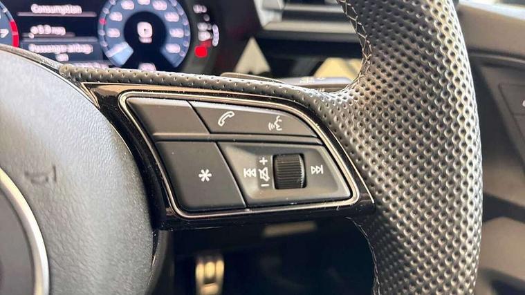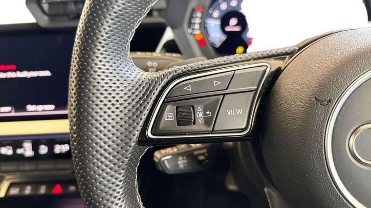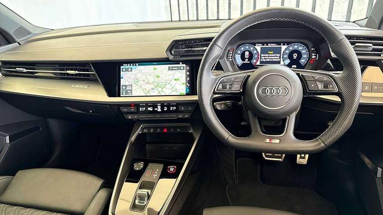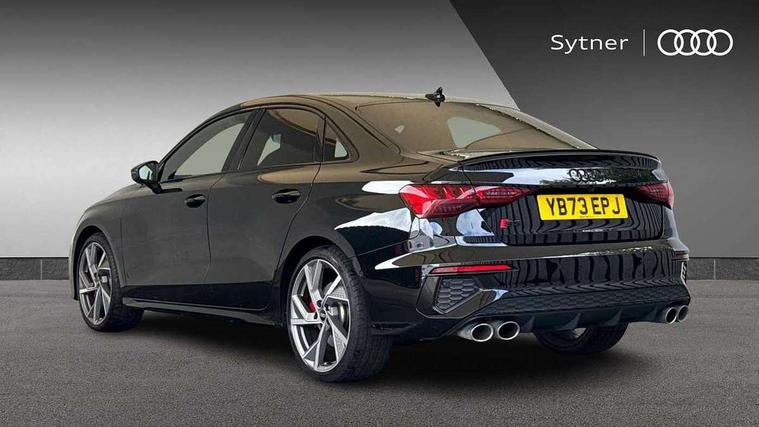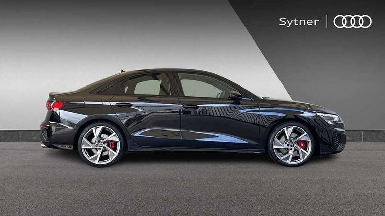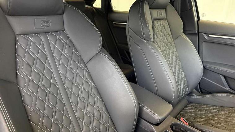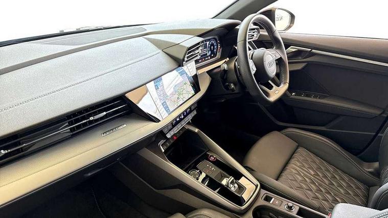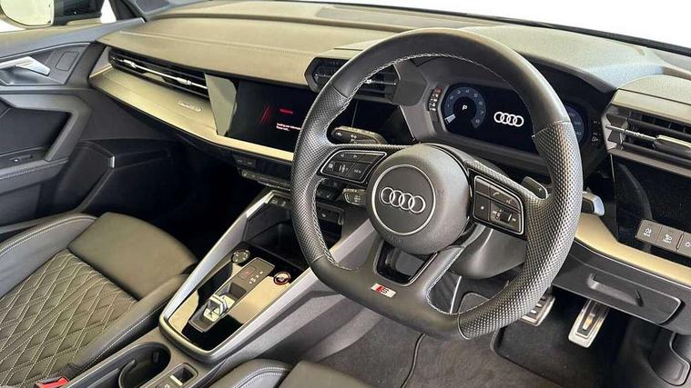 Audi drive select (Auto, Comfort, Dynamic, Efficiency and Individual), Audi smartphone interface, Audi Virtual Cockpit - 10.25" digital and colour instrument cluster, Automatic start/stop system with recuperation, Bluetooth interface, Camera based traffic sign recognition, Collision avoidance assistant, e-Call (emergency call), Lane departure warning system, MMI Navigation Plus with high resolution 10.1" colour touch screen display, Progressive steering, Service indicator, Trip computer, Voice control system with natural language interaction, Quattro permanent all wheel drive, S sport suspension with spring damper adjustment and lowering by 15mm, 2xUSB-C connection with data and charging functions, CD player, DAB Digital radio, 3rd brake light, Acoustic glass windscreen, Audi Beam uses LEDs to project the Audi logo onto the ground as you exit your S3, Auto dimming frameless rear view mirror, Dual branch oval twin tailpipes in chrome plated finish, Electrically adjustable/heated/folding/auto dimming door mirrors with integrated LED indications + kerb view function for passenger side, Front electric windows, Headlight washers, Illuminated door sills with aluminium inserts at the front with S logo, LED daytime running lights, LED headlights with LED rear lights and dynamic rear indicators, Light and rain sensors, Model and engine designation badges at rear, Privacy glass - dark tinted rear window, rear door and side windows, Rear boot, Rear electric windows, Rear side wing doors, 12V socket and storage compartment in front centre console, 3 seat bench in 2nd row, 3 spoke flat bottomed leather multifunction sport steering wheel with gear shift paddles, 4 way electrically adjustable lumbar support for driver and front passenger, 60/40 split folding rear seat bench, Black cloth headlining, Dual zone electronic climate control, Fine Nappa leather upholstery with front sports seats S embossed logo, Front and rear centre armrest in artificial leather, Front and rear headrests, Front/rear floor mats, Height and reach adjustable steering wheel, Interior lighting - glove compartment light and right hand side, Luggage compartment floor covering, Manual boot compartment lid, Manually adjustable front seats, Single front passenger seat, Stainless steel pedals and front footrest in black, Aluminium interior elements pack - A3, Black styling pack - A3 Saloon/S3, Body styling design pack - S3, Extended ambient lighting pack - A3/S3 Saloon, Storage pack - A3/S3 Saloon, Technology pack with parking assist - A3 Saloon, 3x3 point rear seat belts, Driver and front passenger airbag with passenger airbag deactivation, Electronic Stabilisation Control (ESC) including ABS, ASR and EDL, First aid kit with warning triangle and 2 safety vests, Front side airbags with head airbags and interaction airbag, Pre-sense front with pedestrian and cyclist detection, Seatbelt monitoring, Tyre pressure loss indicator, Anti theft alarm, Anti-theft wheel bolts, Electronically operated child locks, Immobiliser, Remote control central locking, Aluminium air vent surrounds, Dark spectrum aluminium inlays, accent surfaces in the dashboard and centre console in platinum grey silk effect paint finish,