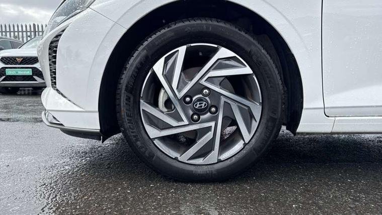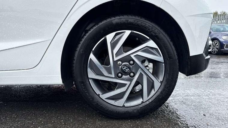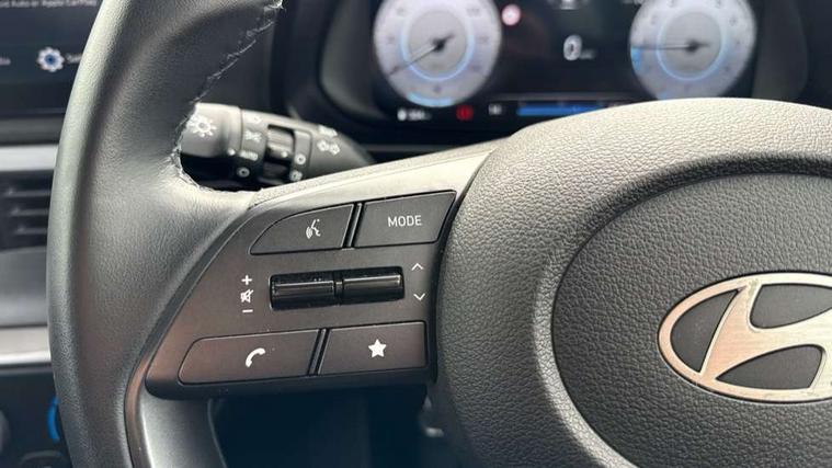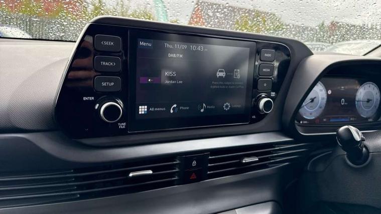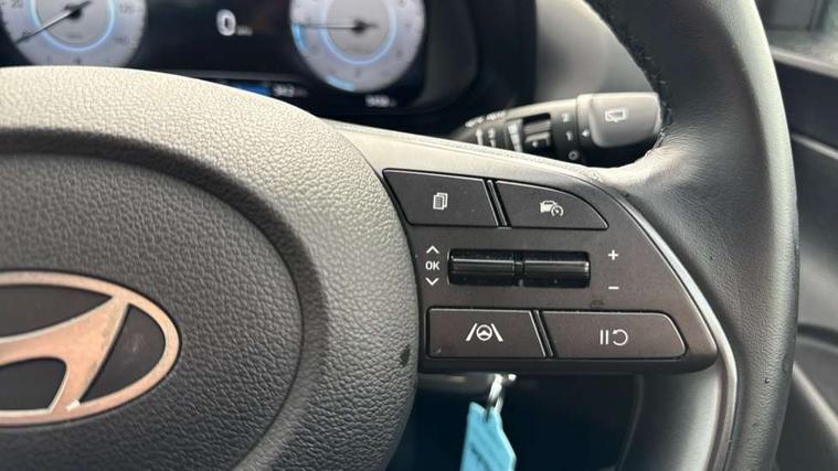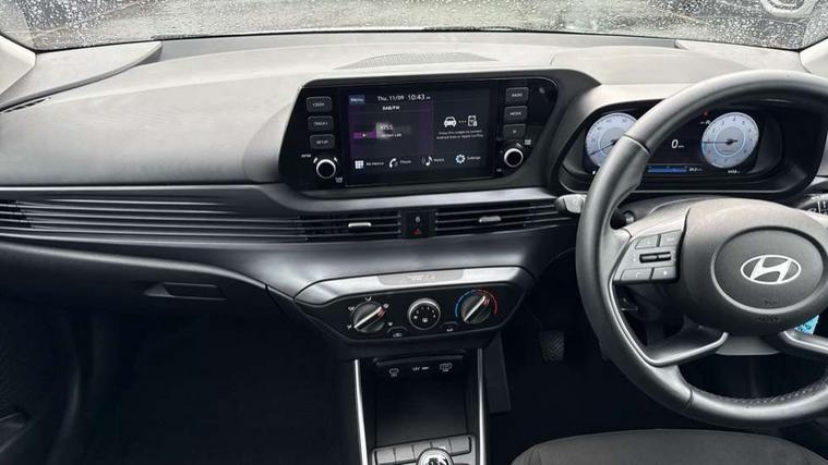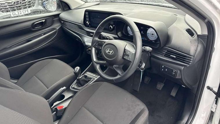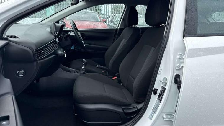 10.25" digital supervision cluster, 2nd Gen eCall, 8" Touchscreen with DAB, Apple car play/Android Auto, Cruise control + speed limiter, Forward collision assist with car, pedestrian and cycle detection, Intelligent speed limit warning, Lane follow assist, Lane keep assist, PAS, Rear parking sensor, Rear view camera with dynamic guidelines, USB C port front, 3rd brake light, Dusk sensor, Electric adjustable heated door mirrors, Front grille mesh pattern design, High beam assist, LED daytime running lights, LED Headlights, LED taillights, Rain sensor, Rear side wing doors, Rear wiper, Repositioned flat metal hyundai emblem, 3 seat bench in 2nd row, Adjustable head restraints, Air conditioning, Cloth upholstery, Floor mats, Leather steering wheel, Single front passenger seat, 3x3 point rear seatbelts, ABS with front and rear diagonally split, Autonomous emergency braking, Child locks on rear doors, Front ventilated disc brakes, Rear solid disc brakes, Tyre pressure monitoring system, 16" alloy wheels, Tyre repair kit,