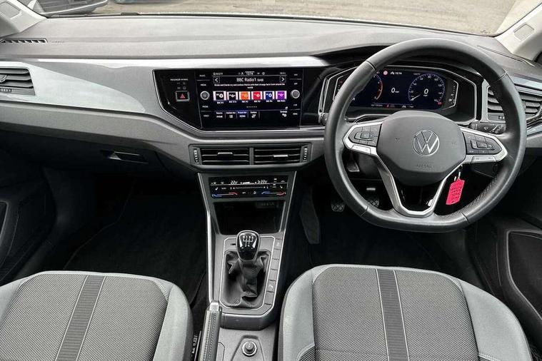 Adaptive cruise control without follow-to-stop and speed limiter, Bluetooth mobile phone interface, Digital Cockpit Pro with 10.25" Display, Driver alert system, Dynamic road sign display, Emergency call service, Power assisted speed sensitive steering, Preparation for We connect and We connect plus, Speedo and rev counter, electronic odometer, trip, service interval display and fuel gauge, Standard rear axle, Travel Assist - Lane keeping system and traffic jam assist, Travel assist including emergency assist, Trip computer, Warning signal and warning light for front and rear seatbelts not fastened, Washer fluid level indicator, Wireless app connect, Front wheel drive, Rear shock absorpion, Start-stop system with battery regeneration (recuperation - energy recovery during braking), DAB Digital radio, Diversity antenna for FM reception, Front and rear 6 speakers, Automatic dimming interior rear view mirror, Automatic headlights, Body colour door handles, Body coloured bumpers and radiator grille with chrome trims, Electric front windows, Heat insulating darkened glass in side and rear windows, Heat insulating glass windscreen, LED separate daytime running lights with coming/leaving home function, Power folding adjustable/heated exterior mirrors and front passenger exterior mirror lowering function, Rain sensor, Rear electric windows, Rear fog light, Rear side wing doors, Rear windscreen washer and wiper with interval delay, Third brake light, 12V power socket in centre console, 2 USB-C ports in the front, 2 USB-C charging sockets on the center console in the rear, 3 rear head restraints, 60/40 split folding rear seat and rear seat bench not split, Air care climatronic air conditoning system with active combination filter and 2-zone temperature control, Ambient lighting, Chrome plated radiator grille inserts, air vent surrounds and light switch surrounds, Door and side trim panel, Driver and front passenger seat height adjustment, Driver/passenger sunvisors with illuminated vanity mirrors, Front + rear carpet mats in recycled material, Front centre armrest, Front footwell illumination, Front seat backrest storage pockets, Front sports comfort seats, Handbrake lever handle in leather, Headliner in recycled material, Isofix child seat preparation easy-fit (for two outer rear seats, and front passenger seat) compatible with I-size, Leather trimmed gear knob, LED interior light with switch off delay and dimmer, 2 reading lights front and rear, Luggage compartment cover, Luggage compartment floor, Luggage compartment lighting, Lumbar adjustment for front seats, Multifunction steering wheel, Single front passenger seat, Standard pedal cluster, IQ LED matrix headlights pack - Polo, Light and vision pack - Polo, 3 point height adj front seatbelts + pretensioners, 3x3 point rear seatbelts, ABS, Driver and front passenger airbag with front passenger airbag deactivation, Drivers and front passengers safety optimised head restraints, ESC (Electronic stability control) + EDL (Electronic Differntial lock) and ASR (Traction control), Extended and predictive pedestrian/ cyclist protection, Front curtain and side airbags with center airbag, Front disc brakes, Hill hold control, Manual child lock in rear doors, Rear drum brakes, Single tone horn, Tyre pressure loss indicator, Alarm with interior protection, Anti-theft alarm system with interior monitoring, backup horn, and towing protection, Anti-theft wheel bolts, Electronic engine immobiliser, Chrome applications on rotary light, mirror adjustment, window regulator switches, outlet with frame in black, Low rolling resistance tyres,