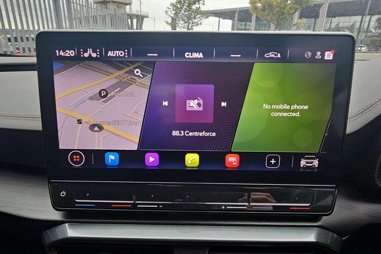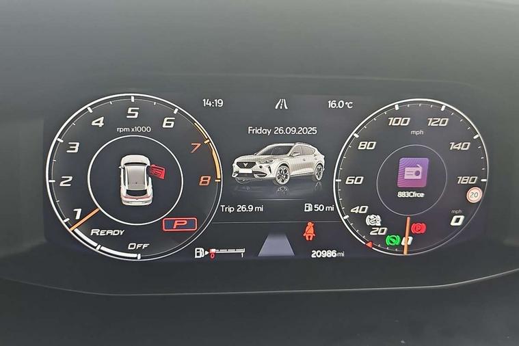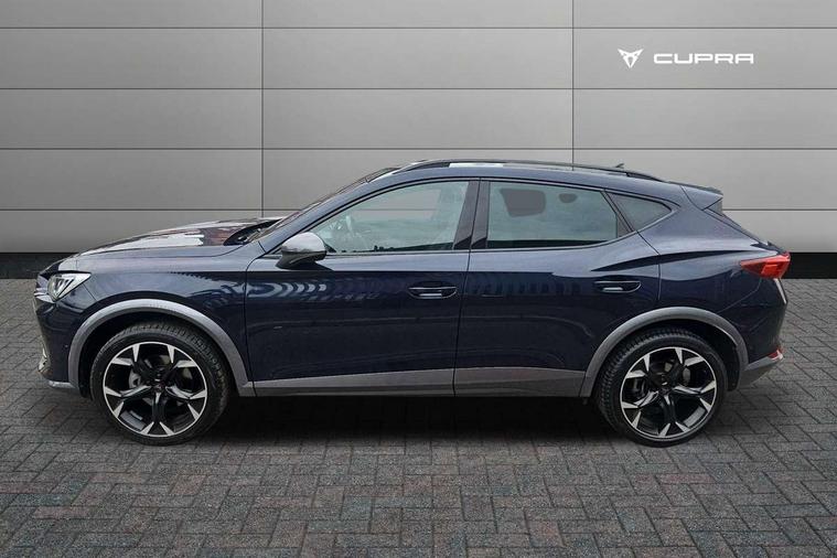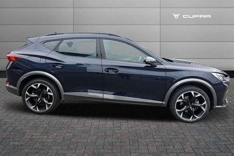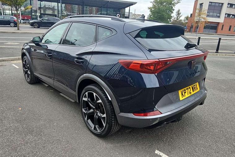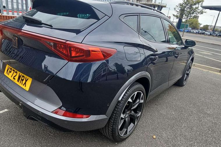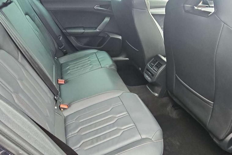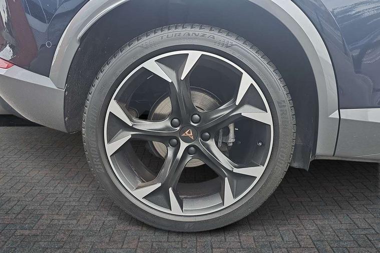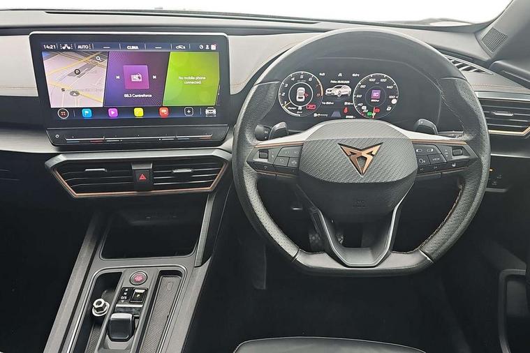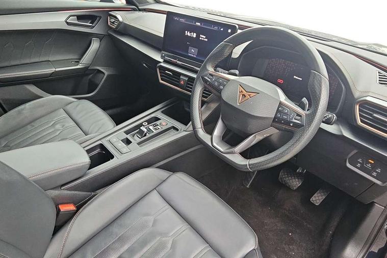 Digital cockpit and configurable dashboard, Driver alert system, Driving profile selection, Forward collision warning with automatic braking, Lane assist, Navigation system with 12'' Touchscreen Display, Park assist (inc front/rear parking sensors), PAS, Predictive adaptive cruise control with speed limiter, Rear view camera, RPM, trip computer, outside temp gauge, instrument light brightness, low fuel warning light, lights on reminder, gearshift indicator, Service interval indicator, Start/stop system with regenerative braking, Voice control system, Wireless apple carplay, Wireless phone charger, Electronic locking differential and dynamic traction support, Standard suspension, 2 front and 2 rear USB type C sockets, Auxiliary input socket, DAB radio, Auto dimming rear view mirror, Body colour door handles, Body coloured bumpers, Dark grey wing mirror, Daytime running light with automatic headlight control and coming home feature, Dynamic headlight range control, Electric front/rear windows, Electrically adjustable heated and folding door mirrors with memory function, Front fog lamps with cornering function, Gloss black roof rails and window surrounds, LED Headlights, LED Taillights with dynamic indicator, Rain sensing wipers, Rear diffuser with black simulated exhaust pipes, Rear side wing doors, Rear wash/wipe, Third brake light, Tinted rear windows, Welcome lights, 12v power supply in centre console, 12V socket, 12v socket in loadspace, 2 front and 2 rear reading lights, 230V socket, 3 seat bench in 2nd row, 60/40 split rear bench seat with armrest and mechanical seat release, Black headlining, Dust/pollen filter, Front and rear head restraints, Front centre armrest, Height/reach adjust steering wheel, Illuminated interior front door sills, Illuminated sunvisor with mirror, Isofix, Leather multi function heated steering wheel with gear shift paddles, Luggage tie-down hooks, Single front passenger seat, Three zone climate control with control panel in rear, Variable luggage/load compartment floor, Wraparound lighting, Genuine Nappa leather Pack - Cupra, 3 point seatbelts on all rear seats, ABS, Brake control system - ESC and brake booster, Child proof door locks, Driver and front passenger airbags with front passenger airbag de-activation, Electronic parking brake, Front and rear disc brakes, Front side curtain airbags, Hill hold control, Public e-call, Seat belt reminder for front and rear seats, Tyre pressure monitoring system, Anti theft alarm system, Keyless entry and start system (KESSY), Locking wheel bolts, Copper and aluminium interior detailing, 19" 'Exclusive' machined sport matte black and silver alloy wheels,