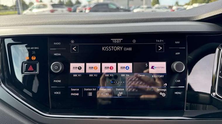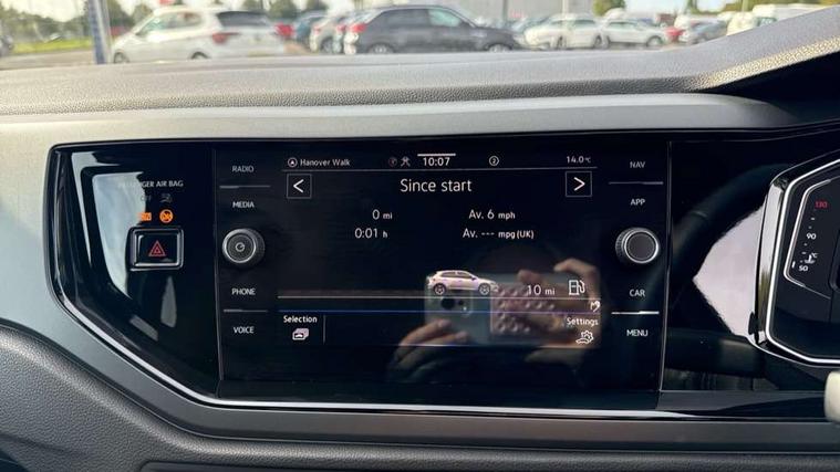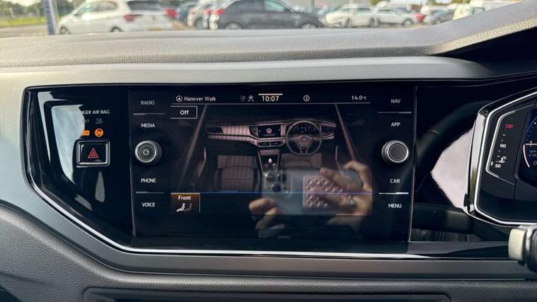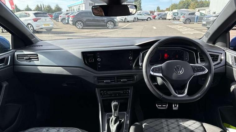 Adaptive cruise control with follow-to-stop and speed limiter, Advanced driver attention and drowsiness monitor, Bluetooth mobile phone interface, Digital Cockpit Pro with 10.25" Display, Dynamic road sign display, Emergency call service, Multifunction camera, Power assisted speed sensitive steering, Preparation for We connect and We connect plus, Speedo and rev counter, electronic odometer, trip, service interval display and fuel gauge, Standard rear axle, Travel Assist - Lane keeping system and traffic jam assist, Travel assist including emergency assist, Trip computer, Warning signal and warning light for front and rear seatbelts not fastened, Washer fluid level indicator, Wireless app connect, Front wheel drive, Rear shock absorpion, Start-stop system with battery regeneration (recuperation - energy recovery during braking), DAB Digital radio, Diversity antenna for FM reception, Front and rear 6 speakers, Body colour bumpers, Body colour door handles, Electric front windows, Front scuff plates with R-Line logo, Heat insulating glass windscreen, Power folding adjustable/heated exterior mirrors and front passenger exterior mirror lowering function, Rear electric windows, Rear fog light, Rear side wing doors, Rear windscreen washer and wiper with interval delay, Third brake light, 12V power socket in centre console, 2 USB-C ports in the front, 2 USB-C charging sockets on the center console in the rear, 3 rear head restraints, 60/40 split folding rear seat and rear seat bench not split, Air care climatronic air conditoning system with active combination filter and 2-zone temperature control, Black roof lining, Carpet mats, front and rear, Chrome plated radiator grille inserts, air vent surrounds and light switch surrounds, Door and side trim panel, Driver and front passenger seat height adjustment, Driver/passenger sunvisors with illuminated vanity mirrors, Front centre armrest, Front footwell illumination, Front seat backrest storage pockets, Front sports comfort seats, Handbrake lever handle in leather, Headliner in recycled material, Isofix child seat preparation easy-fit (for two outer rear seats, and front passenger seat) compatible with I-size, Karoso artvelours cloth upholstery, Leather trimmed gear knob, LED interior light with switch off delay and dimmer, 2 reading lights front and rear, Luggage compartment cover, Luggage compartment floor, Luggage compartment lighting, Lumbar adjustment for front seats, Single front passenger seat, Stainless steel pedals, Standard pedal cluster, Three spoke leather wrapped multifunction steering wheel with shifting paddles, Light and sight pack - Polo R-Line/Black Edition, 3 point height adj front seatbelts + pretensioners, 3x3 point rear seatbelts, ABS, Driver and front passenger airbag with front passenger airbag deactivation, Drivers and front passengers safety optimised head restraints, ESC (Electronic stability control) + EDL (Electronic Differntial lock) and ASR (Traction control), Extended and predictive pedestrian/ cyclist protection, Front curtain and side airbags with center airbag, Front/rear disc brakes, Hill hold control, Manual child lock in rear doors, Single tone horn, Tyre pressure loss indicator, Alarm with interior protection, Anti-theft alarm system with interior monitoring, backup horn, and towing protection, Anti-theft wheel bolts, Electronic engine immobiliser, Chrome applications on rotary light, mirror adjustment, window regulator switches, outlet with frame in black, Dark grey anodised matt decorative inserts in dash and front door panels, 16" Coventry alloy wheels, Low rolling resistance tyres,
