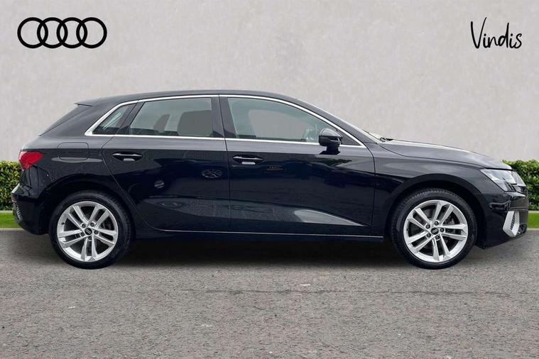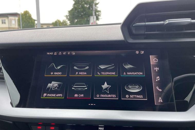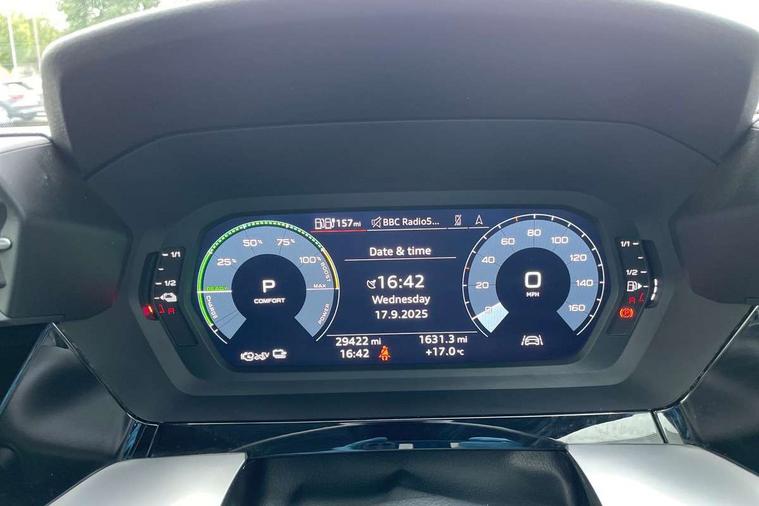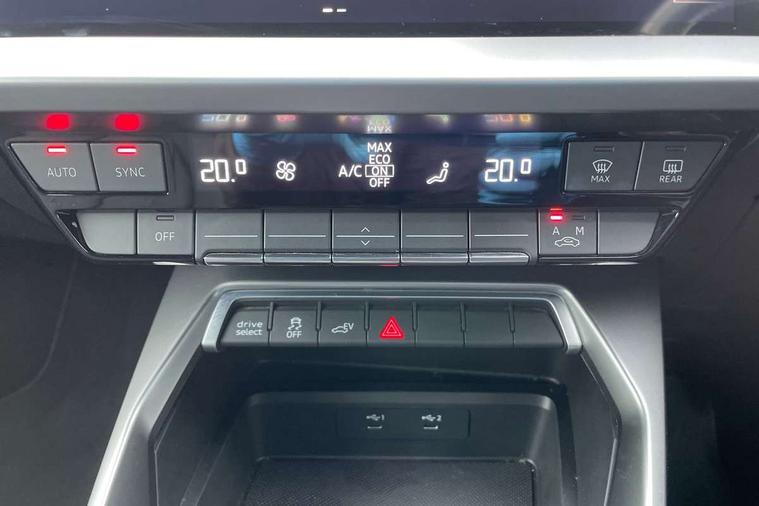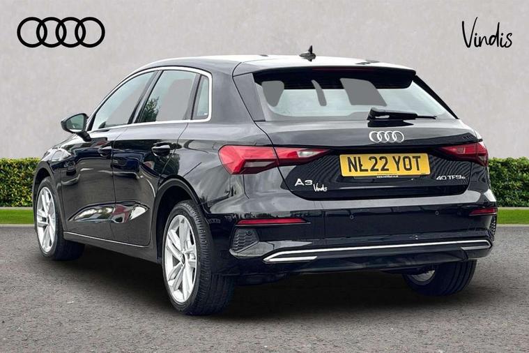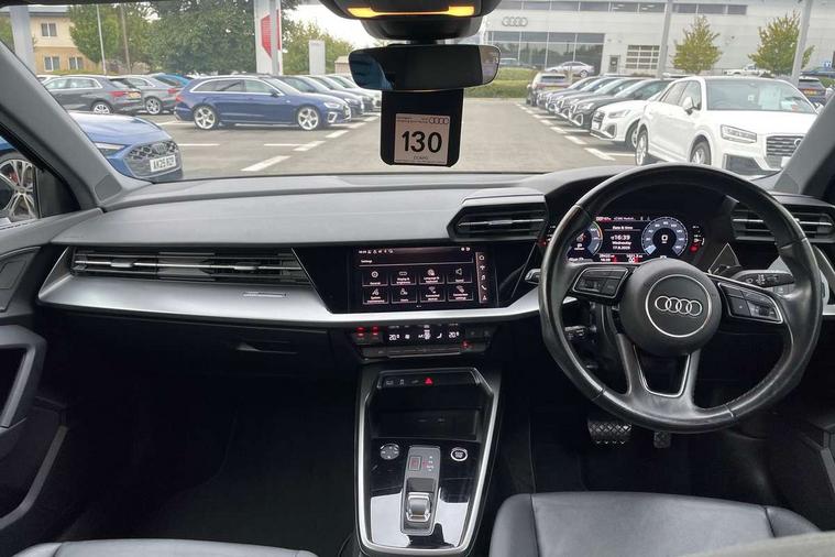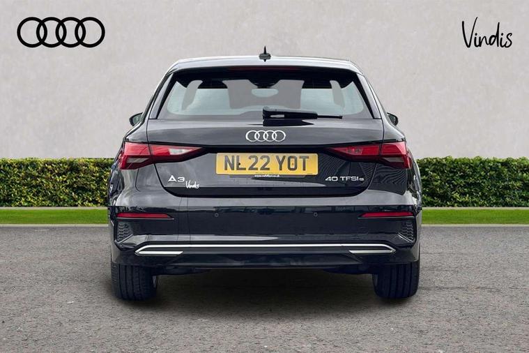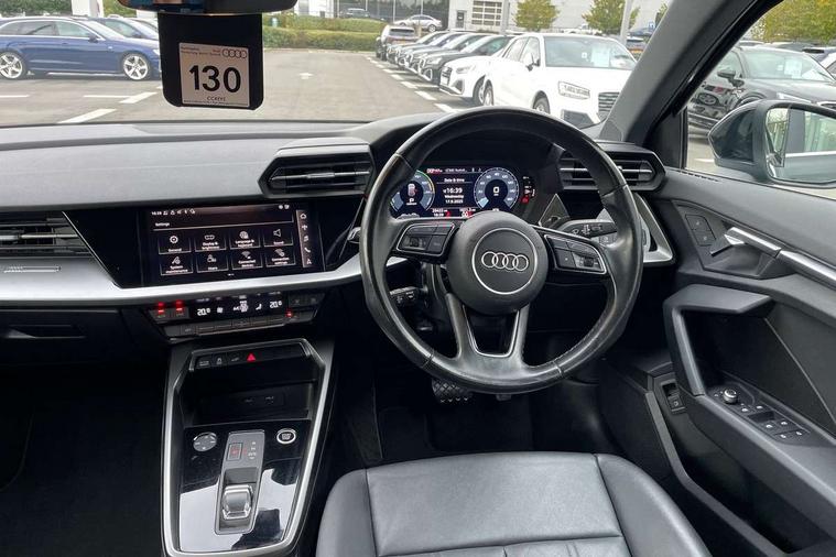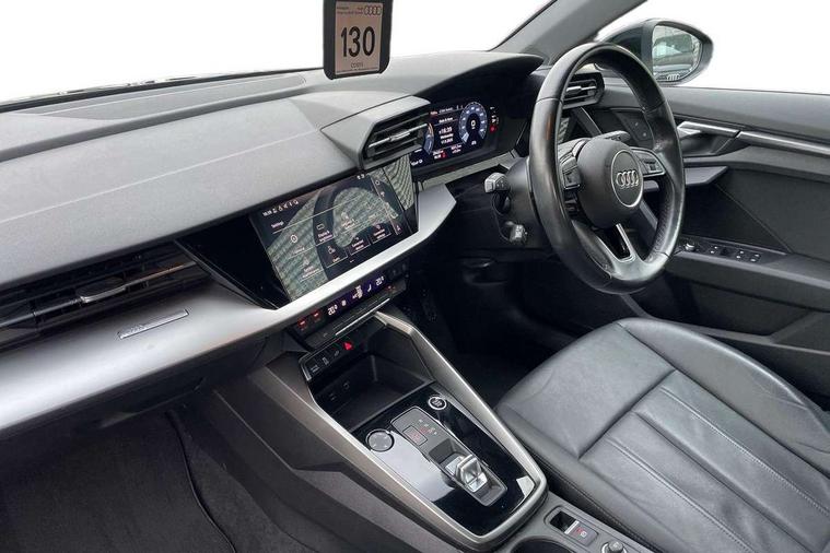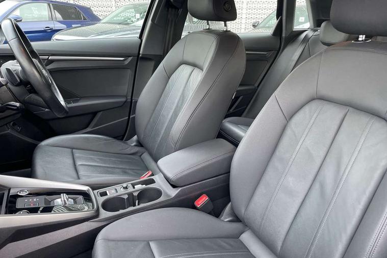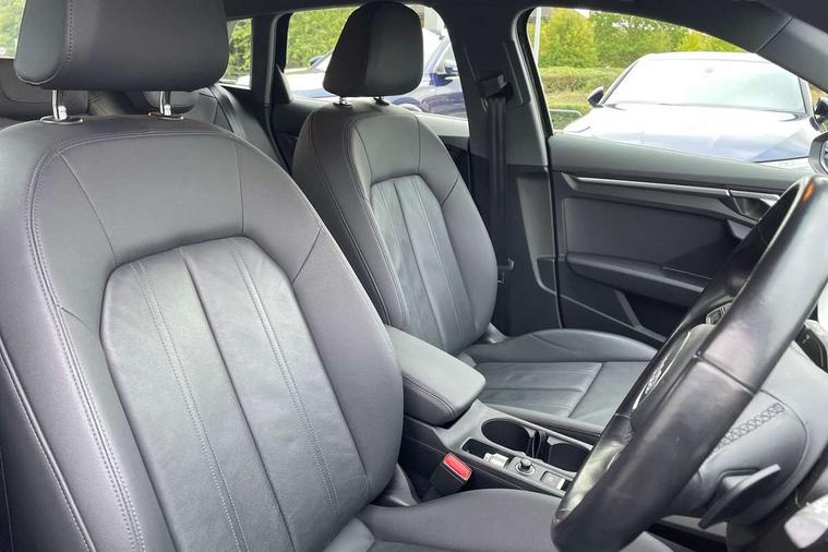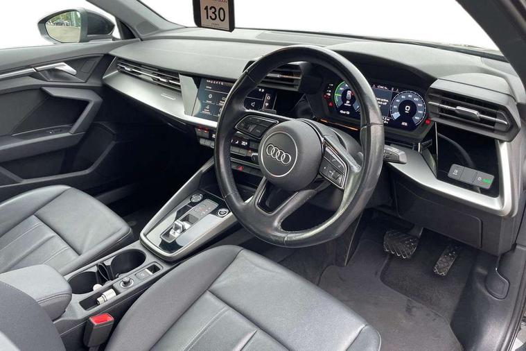 Audi drive select (Auto, Comfort, Dynamic, Efficiency and Individual), Audi smartphone interface, Audi Virtual Cockpit - 10.25" digital and colour instrument cluster, Automatic start/stop system with recuperation, Bluetooth interface, Collision avoidance assistant, e-Call (emergency call), Electromechanical power speed sensitive steering, Lane departure warning system, MMI Navigation Plus with high resolution 10.1" colour touch screen display, Service indicator, Trip computer, Voice control system with natural language interaction, 3 pin 10 amp domestic charging cable, 3.6 kw On-board charger, Standard suspension, Type 2 mode 3 32 amp charging cable, Type 2 socket for AC charging, 2xUSB-C connection with data and charging functions, 6 passive loudspeakers, DAB Digital radio, 3rd brake light, Acoustic glass windscreen, Aluminium window trim, Auto dimming frameless rear view mirror, Body colour exterior mirrors, Body colour roof spoiler, Electrically adjustable/heated/folding/auto dimming door mirrors with integrated LED indications + kerb view function for passenger side, Front electric windows, LED daytime running lights, LED headlights and halogen rear lights, Light and rain sensors, Rear electric windows, Rear side wing doors, Rear window, rear door windows and rear side windows in clear glass, Rear wiper, 12V socket and storage compartment in front centre console, 3 seat bench in 2nd row, 40/20/40 split folding rear seat bench with cupholder, Dual zone electronic climate control, Front and rear centre armrest, Front and rear headrests, Front door sill trims with aluminium inlay, Front/rear floor mats, Height and reach adjustable steering wheel, Interior lighting - Front and rear roof module including reading lights, glove compartment light and right hand side, Luggage compartment floor covering, Manual boot compartment lid, Manually adjustable front seats, Seat side bolsters, Single front passenger seat, Steel grey cloth headlining, Twin leather upholstery, Aluminium interior elements pack - A3 Sportback, Sport styling pack - A3 Sportback, 3x3 point rear seat belts, Audi pre sense front, Driver and front passenger airbag with passenger airbag deactivation, Electronic Stabilisation Control (ESC) including ABS, ASR and EDL, First aid kit with warning triangle and 2 safety vests, Front side airbags with head airbags and interaction airbag, Pre-sense front with pedestrian and cyclist detection, Seatbelt monitoring, Tyre pressure loss indicator, Anti theft alarm, Anti-theft wheel bolts, Immobiliser, Manual child locks, Remote control central locking, Inlays with silk effect paint in platinum grey, Tool kit, Tyre repair kit,