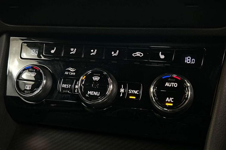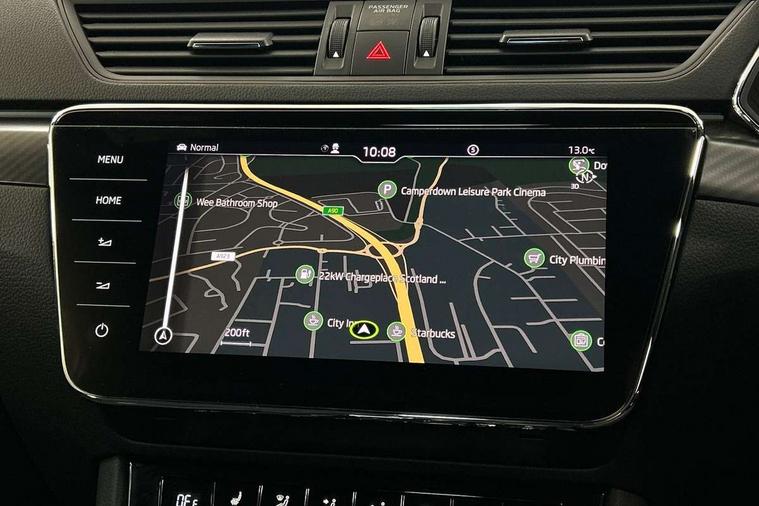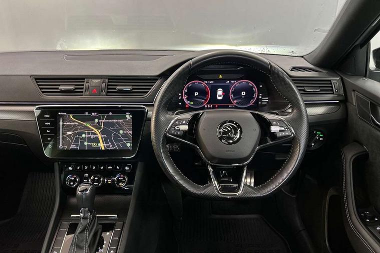 Bluetooth system, CareConnect and Emergency Call, Columbus HDD satellite 3D map navigation with 9.2" colour touch screen, web radio, integrated Wi-Fi, Driver fatigue sensor, Front assist with pedestrian protection, Progressive dynamic steering, Stop/start engine system and energy recovery, Virtual cockpit, Voice control system, Wireless smartlink apple carplay, SmartLink+ android auto, XDS+, 2 USB ports, Bolero radio with 8" touchscreen display, DAB Digital radio, 3rd brake light, Aero front windscreen wipers with intermittent function, Auto dimming rear view mirror, Black rear badge, Body colour door handles, Cornering front fog lights, Electrically adjustable heated and folding door mirrors with memory function, Front and rear electric windows, Full matrix LED headlights with AFS LED DRL integrated with headlight washer LED rear lights(High function), dynamic indicators and lighting animation, Gloss black exterior door mirrors with sports styling including front grill, side strip and window surrounds, Gloss black grille surround with gloss black rib elements, Gloss black rear spoiler (roof), Gloss black strip between rear lights, Light assistant (coming/leaving home/tunnel light), Privacy glass, Rain sensor, Rear exhaust diffuser styling elements, Rear side wing doors, Sportline badging, 12v power point in centre console, 3 seat bench in 2nd row, Black roof headlining, Black textile floor mats, Carbon optic interior elements, Electric auxiliary air heater, Front and rear footwell illumination, Front armrest with storage box, Height adjustable front and rear head restraints, Ice scraper, Illuminated and cooled glovebox, Interior lights with control switches, Isofix child seat fittings on outer rear seats, LED front and rear reading lights, Microsuede/leather upholstery with silver diamond stitching sports seats, One umbrella compartments in driver door with one umbrella in drivers door, Overhead glasses storage compartment, Rear centre armrest with cupholders, Removable parcel shelf, Single front passenger seat, Split folding rear seats, Storage compartment with cover in luggage compartment side panels, Ticket holder on A Pillar, LED package plus - Superb, 3 rear seatbelts, 7 airbags - Front, front side, curtain, driver's knee airbag with front passenger deactivation switch, Driver and passenger seatbelts with warning light, Electronic parking brake, ESC including ABS, EBV, MSR, ASR, EDS, HBA, DSR, RBS, CBC, multi-collision brake (MKB) and Auto hold, Hill start assist, Power operated child lock in rear doors, Tyre pressure monitor, Alarm with interior monitoring tilt sensor and back up horn, Electronic engine immobiliser, Keyless entry and start/stop, Remote central locking with SAFE system, Third remote key,
