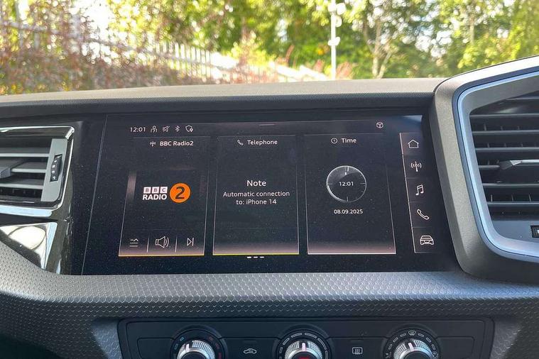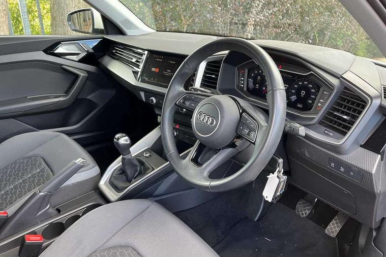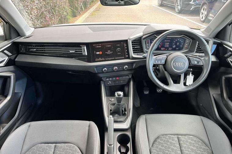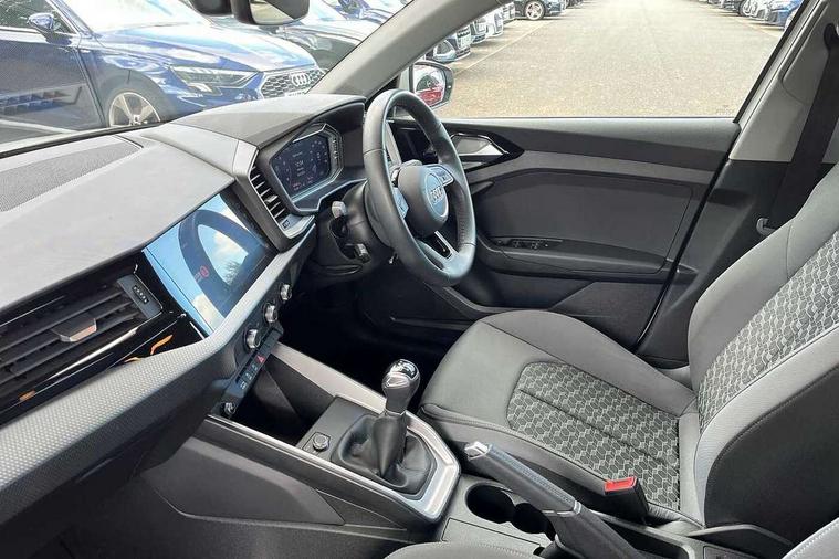 10.25" Digital instrument cluster display classis style instrument dials + speed, odometer, time, outside temperature, telephone menu + fuel level warning, Audi drive select - power steering assistance + engine, Audi smartphone interface with connect compatible smartphone via USB directly MMI display + Nav, music, third party apps controlled via MMI controller, Automatic start/stop system, Bluetooth interface, Cruise control, Driver's information system, Electromechanical power steering, Emergency e-call, Lane departure warning system, Rear parking sensor, Service interval indicator, Speed limiter, Voice control system, Washer fluid level indicator, Dynamic suspension, 2 x USB type C connection points, 6 passive loudspeakers, DAB Digital radio, MMI radio plus with 10.1" colour MMI display screen and MMI touch, Auto dimming rear view mirror, Body coloured bumpers, Body coloured door mirrors, Electric front and rear windows, Electrically adjustable, heated, folding door mirrors with integrated LED side indicator, Front side air inlets in grained matt black and C frame in anthracite black, Heat insulating glass windscreen and side windows, Heated rear windscreen, High level LED brake light, LED headlights with LED rear lights + dynamic rear indicators + headlight adjustment and high beam, turning light + LED daytime running lights, Radiator grille and rear diffuser in matt anthracite black, Radiator protective grille frame in matt aluminium silver, Rain and light sensors, Rear fog lights, Rear side wing doors, Rear wiper, Side front spoiler lips in grained matt black, 12V socket in centre console with two cup holders, 3 rear seats with headrests, 3 seat bench in 2nd row, 3 spoke leather multifunction plus steering wheel, 40:60 Split folding rear seat or folded fully, Black front and rear floor mats, Door sill trims with aluminium inlay, Driver and passenger seat with manual height adjust with forward and backwards adjustment, Front head restraints, Front passenger seat, Grey cloth headlining, Height and reach adjustable steering wheel, ISOFIX child seat mounting for front passenger and outer rear seats including top tether attachment point of outer rear seats, Leather gear knob with aluminium trim, Leather handbrake grip, Luggage compartment light with front and rear reading lights, Manual air conditioning, Manually adjustable lumbar support in front seats, Novum cloth upholstery with front sport seats, Luggage compartment pack - A1, 3x3 point rear seatbelts, Audi pre-sense front with pedestrain and cyclist recognition, Brake assist function, Driver and front passenger airbag with front side and head airbags, Electronic Stability Control including ABS, EBD, ASR and EDL, Front passenger airbag deactivation switch, Hill hold assist, Manual rear child locks, Seatbelt height adjustment for front seats, Seatbelt monitoring, Tyre pressure warning light, Warning triangle and first aid kit, Anti theft alarm, Anti theft wheel bolts and loose wheel warning, Immobiliser, Remote central locking with 2 foldaway keys, Aluminium trim for control switches, air vents and digital instrument cluster, Black dashboard, Silver grey accent areas including air vents, door handle recesses and centre console in diamond paint finish, Slate grey inlays polygon structure in fine paint finish,