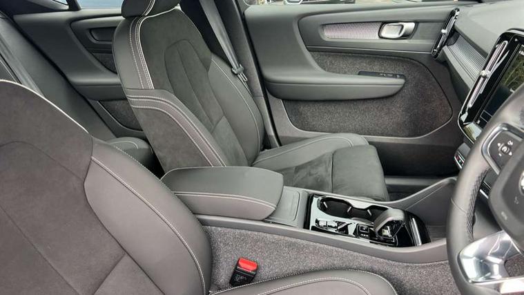 12.3" Progressive Driver Display, 9" centre console portrait touch screen, Adjustable steering wheel force, Apple carplay (wired), Bluetooth handsfree system, Cruise control, Driver alert control, E-call, Front park assist, Google automotive services - Enabled entertainment apps, navigation with google maps, voice recognition with google assistant, Hands free power tailgate, Intelligent speed assistance, Lane keeping aid, Oncoming Lane Mitigation, Rear park assist, Rear park assist camera, Speed sensitive steering, Volvo cars services with app - Driving journal, emergency and breakdown call, engine remote start, remote door locking/unlocking and vehicle dashboard, Wireless/Inductive Mobile Phone Charging, Automatic transmission with start/stop and manual change functions, Dynamic chassis, DAB Digital radio, Steering wheel mounted remote controls, Adaptive brake lights with high level LED brake lights, Auto dimming interior mirror, Automatic headlamp levelling, Automatic LED Headlights + Active high beam incorporating daytime running lights, Front aluminium tread plates, Front and rear electric windows, High gloss black front and rear skid plate, High gloss black front bumper deco, High gloss black mesh front grille with high gloss black surround, High gloss black window trim, Home safe and approach lighting, Integrated roof rails in high gloss black, LED front fog lights, Puddle lights, Rain sensor with automatic windscreen wiper activation, Rear side wing doors, Rear wiper, Roof antenna, Roof spoiler, Visible VIN plate, 12V socket in front tunnel console and luggage compartment, 2-Zone electronic climate control with CleanZone air quality system and pollen filter, 3 seat bench in 2nd row, 3 Spoke tailored steering wheel with chrome trim, 60/40 versatile split folding rear seat, Centre console cupholders and storage, Flexible load floor and grocery bag holder, Floor mats, Front cabin courtesy lights, Front door pocket, front cupholder, ambient front door, rear reading, rear courtesy, instrument panel and tailgate lighting, Front footwell illumination, Front headrests, Front reading lights, Front seat cushion extensions, Front side step illumination (under door), Glovebox bag hook, Heated front seats, Height adjustable passenger seat, Height/reach adjustable steering column, High gloss centre tunnel deco, Illuminated glovebox, Illuminated luggage compartment, Illuminated vanity mirrors + ticket holder, Integrated waste bin, Isofix attachments on outer rear seats, Load cover, Load protection net, Multi directional lumbar support for driver and passenger seat, Power driver seat with memory + exterior mirrors memory, Rear armrest with cupholders, Rear headrests, Single front passenger seat, Underfloor cargo storage, Climate pack without heated front seats - XC40, 3x3 point rear seatbelts, City safety with steering support with Pedestrian + cyclist + front collision warning with full auto brake and rear auto brake, Driver and passenger airbags, Drivers knee airbag, Electronic parking brake with auto hold, First aid kit, Front and outer rear seatbelt reminder and pretensioners, Front seats SIPS airbags, Hill descent control, Hill start assist, Inflatable curtain, Passenger airbag cut-off device, Power child locks on rear doors, Road sign information display, Run off Road Protection, SIPS (Side Impact Protection System), Slippery road and hazard light alert, Stability and Traction Control with Spin control, Engine Drag Control and Corner Traction Control, Tyre pressure monitoring system, Vehicle deceleration control with Anti-lock Brake System, Electronic Brake Distribution and Emergency Brake Assist, Warning triangle, WHIPS whiplash protection system - front, 2 x Key integrated remote control central locking including with deadlocking system and auto open/close windows, Anti-theft alarm including immobiliser/volume sensor + level sensor, Keyless drive includes keyless entry and keyless start, Locking wheel nuts,