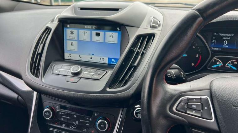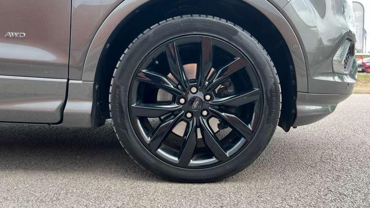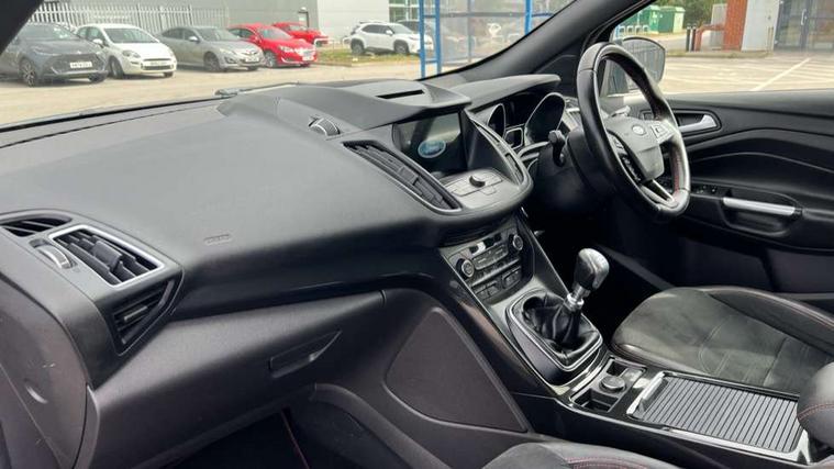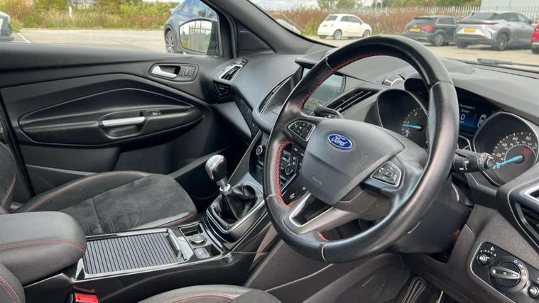 Enhanced active park assist including perpendicular parking pull out assist and flank guard, EPAS, Front parking sensor, Hands free power tailgate, Rear parking sensor, SYNC Emergency Assistance, Trip computer, Sports suspension, Auxiliary socket for external device, Remote audio controls on steering wheel, USB connection, Auto dimming rear view mirror, Automatic headlights, Black roof rails, Body colour bumpers, Body styling kit, Electric folding mirrors, Electric panoramic glass sunroof, Electrically heated door mirrors, Front scuff plate, LED daytime running lights, Power front and rear windows, Quickclear heated windscreen, Rain sensor windscreen wipers, Rear diffuser, Tailgate wash/wipe, Twin exhaust pipes, 10 way electric adjustable drivers seat, 60/40 split/folding rear back and cushion, Alloy Foot Pedals, Auxiliary power socket in luggage area, Centre console with stowage tray/bottle holder/CD stowage/front and rear 12V power point, Dark headlining, Dinamica/Leather Upholstery, Driver seat lumbar adjustment, Driver/passenger front seatback pockets, Driver/passenger seats fore/aft adjustment, Dual electronic automatic temperature control, Floor mats with red stitching, Folding rear centre armrest, Footwell courtesy lights front and rear, Front head restraints, Front overhead courtesy lights with theatre style dimming and delay, Front/rear reading lights, Heated front seats, Isofix system on outer rear seats, Leather gearknob, Leather steering wheel with red stitching, Passenger lumbar support, Reach + rake adjustable steering column, Rear floor mats, Rear head restraints, Sports style front seats, Stowage unit in upper instrument panel, Tie down hooks, Tonneau cover, Variable intensity instrument illumination, 3 point seatbelts on all 3 rear seats, ABS/EBD, Driver and passenger airbags, Driver and passenger side airbags, Electric traction assist system, Electronic parking brake, ESP+EBA, Front and rear curtain airbags, Hill start assist, Intelligent Protection System (IPS), Tyre pressure monitoring system, Immobiliser, Keyless entry system with hands free boot opening, Keyless Start, Locking wheel nuts, Remote central locking, Thatcham Cat.1 alarm, 19" 5x2 spoke black alloy wheels, Mini steel spare wheel,