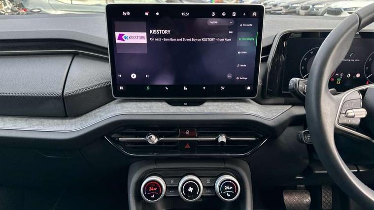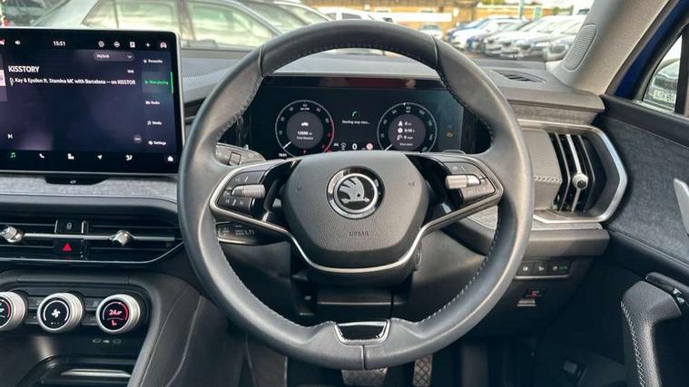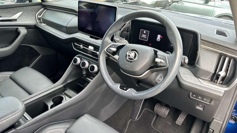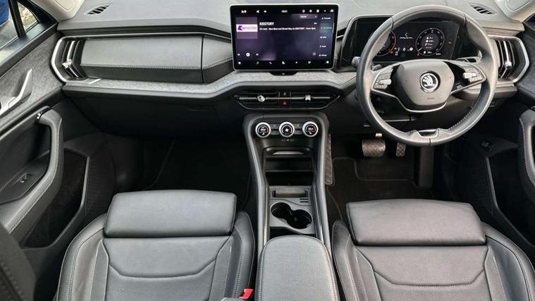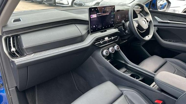 13" satellite navigation touchscreen display, Blind spot detection with door exit warning, Bluetooth system, ChatGPT functionality, Drive mode selector, Driver alert with fatigue sensor, Driver drowsiness alert system, Dry display cleaner, e call+, Front cross traffic assist, Lane assist, PAS, Rear traffic assist, Tailgate unlocking from outside, Traffic sign recognition, USB C Port x 2 in front centre console, Virtual Cockpit - 10.25" digital display, Voice control system, Wireless charging for two smartphones (15W) with cooling function, Wireless SmartLink for Apple CarPlay and Android Auto, Stop/start function, 2x USB-C in the rear, DAB Digital radio, Aero front windscreen wipers with intermittent function, Auto dimming rear view mirror, AWL (all weather lighting) and all weather light with cornering function, Black wheel arch surrounds, Body colour bumpers, Body colour door mirrors and handles, Cornering light and poor weather light, Electric folding /adjustable/separted heated/folding door mirrors, auto dimming with boarding sports and memory function, Electric front and rear windows, Exterior black decorative trims, Heat insulating glass in windshield, Heated rear window, Ice scraper in fuel tank cap, Invisible tailpipe, LED daytime running lights, LED rear fog light, LED third brake light in rear spoiler, Light assistant with automatic headlight control and coming home feature, Logo projection in door mirrors, Privacy glass, Rear side wing doors, Rear spoiler, Rear window wiper, Red decorative strip between rear LED lights, Safety reflectors on front and rear doors, Window control switches with black trim, Windscreen wipers with rain sensor, Without engine designation, 1.5l bottle holder points in all door, 12V socket in boot, 1x centre rear reading light, 2 seat bench in 3rd row, 3 configurable smart dials with 32mm coloured display, 3 seat bench in 2nd row, 4 foldable roof handles with rear coat hooks, Ambient interior lighting - Dashboard, front-door stowage compartments, front and rear door panels and footwell lighting, Automatic gear selector on steering wheel, Chrome interior door handles, Driver/front passenger reading lights, Fabric headlining, Fixed bench 40:60:40 split folding backrests, Front and rear floor mats, Front centre armrest with jumbo box storage compartment, cup holder and 12V socket, Front courtesy lights, Height adjustable front headrests, Isofix child seat fittings in outer middle row rear seats and front passenger with top tether, Manually adjustable steering column, Pollen filter, Rear centre armrest with cupholders, Rear seat boot backrest release, Retractable luggage compartment cover, Single front passenger seat, Sliding trunk cover, Small Bags on the inner sides of the front backrests, Storage pocket including mobile phone pockets on the backs of the front seats, Sunvisors with illuminated vanity mirrors, Three rear height adjustable headrests, Ticket holder on A Pillar, Tri zone climate control, Umbrella in door panel x1 made from sustainable materials, Upper and lower glovebox with card holder and coin compartment, USB C port by rear view mirror for charging only (15W), Exterior styling pack - Kodiaq, Auto door release and activation of warning lights in the event of an accident, Driver and front passenger airbag with knee airbag and front passenger airbag deactivation, Electric child locks, Electronic parking brake, ESC (incl. ABS+EMD+MSR+ASR+EDL+HBA+DSR+RBS+ESBS+MCB+TSA+XDS), Front assist with braking reaction to vehicles, pedestrians and cyclists, Front disc brakes, Fuel cut off safety device, Height adjustable front 3 point seatbelts + pretensioners, Hill hold control, Junction assist with automatic emergency braking, Rear disc brakes, Safety vest holder in door, Seat belt reminder for all seats, Three point rear seat belts, Two tone horn, Tyre pressure monitor, Anti-theft wheel bolts, Immobiliser, Remote central locking with 2 keys, Breakdown kit,