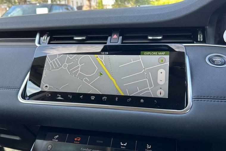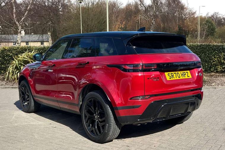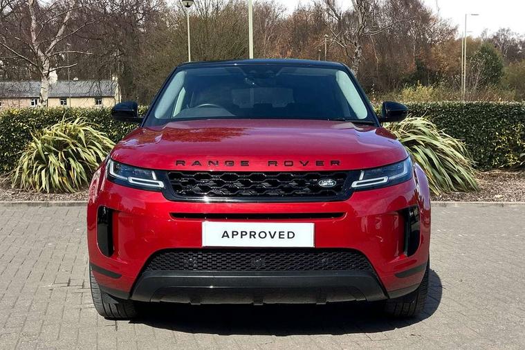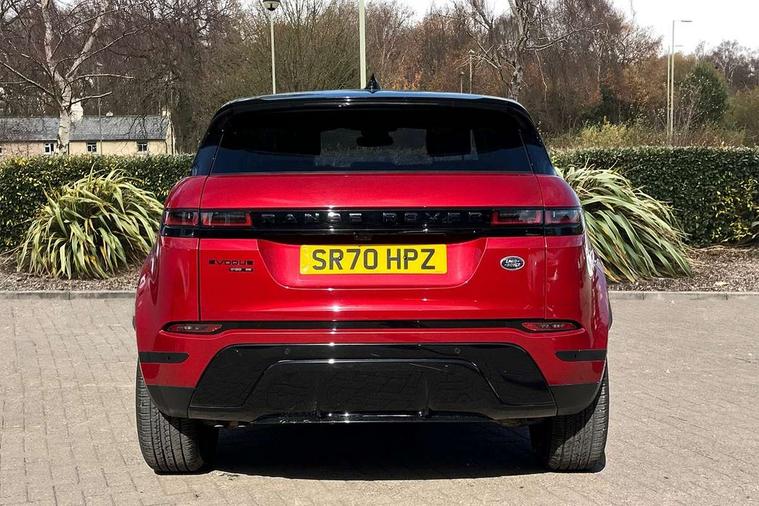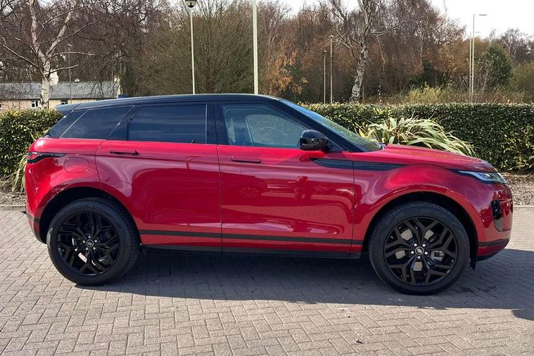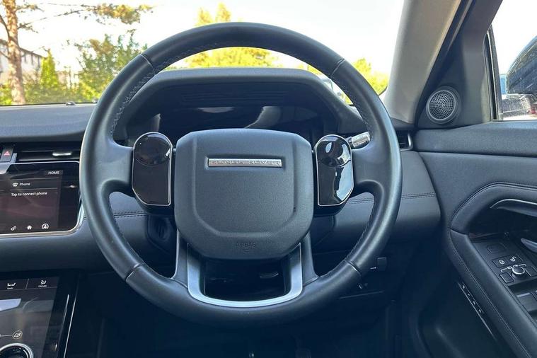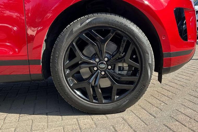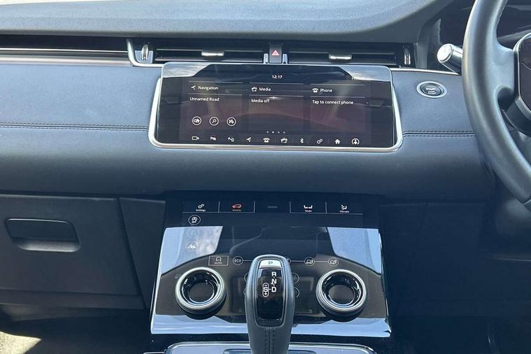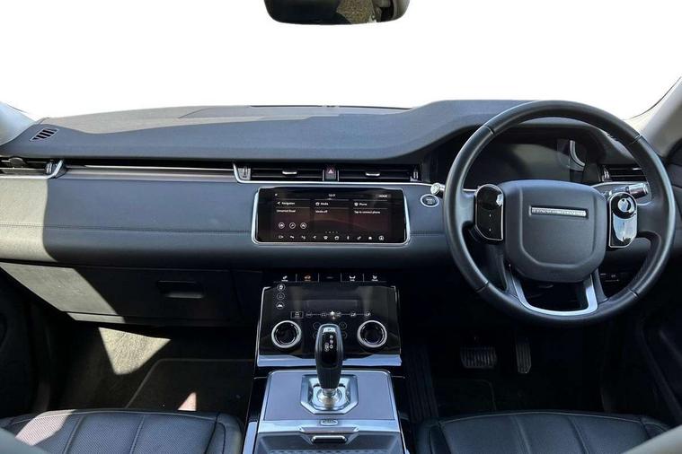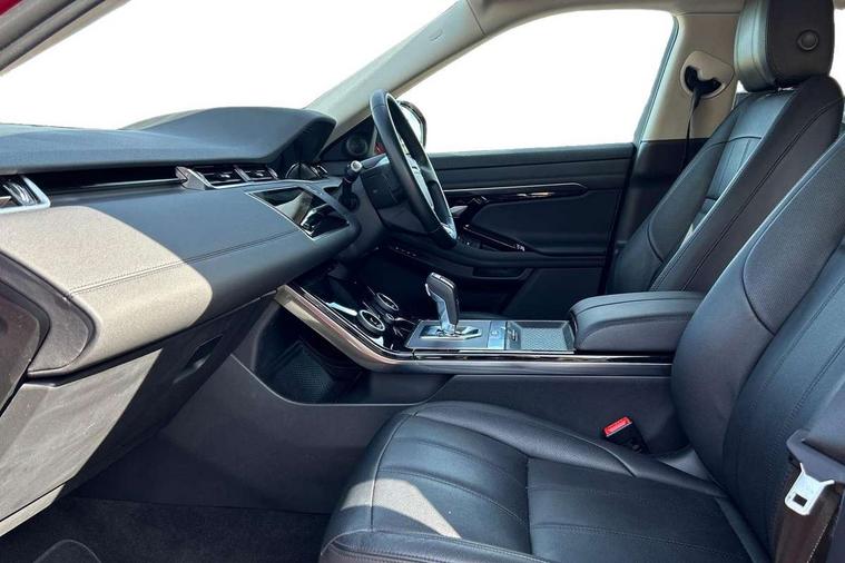 360 degree parking aid, Android Auto, Apple car play, Bluetooth connectivity, Brake pad wear indicator warning light, Clear exit monitor, Driver condition monitor, Duo touch pro, Electronic power assisted steering (EPAS), InControl remote, Interactive Driver display instrument cluster, Land Rover InControl apps, Lane keep assist, Navigation pro system, Park assist - Parallel, perpendicular and parking exit, Pro services and wifi hotspot, Push button starter, Rear traffic monitor, Smart settings, Traffic sign recognition with adaptive speed limiter, Voice control system, All terrain progress control, Efficient Driveline, Passive suspension, Terrain Response 2 Auto, Digital Audio Broadcast radio-DAB, Steering wheel mounted controls, Automatic headlight levelling, Electric windows with one touch open/close and anti trap, Evoque badge, Flush deployable exterior door handles, Heated rear window with timer, Heated washer jets, Heated windscreen, Power fold, auto-dimming, heated door mirrors with memory and approach lights, Rain sensing windscreen wipers, Rear fog lights, Rear wing door, Tailgate spoiler, Third brake light, 40:20:40 split folding rear seats, Isofix system on outer rear seats, Overhead lighting console, Overhead stowage for sunglasses, Passive front head restraints, Rear air vents, Rear centre headrest, Sunvisors with illuminated vanity mirrors, Twin front cupholders with cover, Twin sliding front centre armrest, 3 rear 3 point seatbelts, Anti-lock braking system (ABS), Customer configurable autolock, DSC - Dynamic Stability Control, Electronic brake force distribution, Electronic parking brake, Electronic traction control, Front and rear seatbelt reminder, Hill descent control, Hill launch assist, Low traction launch, Power operated child locks, Roll stability control, Six airbags - Driver and passenger airbags/driver knee airbag/front side airbag and curtain airbags, Torque vectoring brake, Tyre pressure monitoring system, Alarm, Immobiliser, Intrusion sensor, Locking wheel nuts,