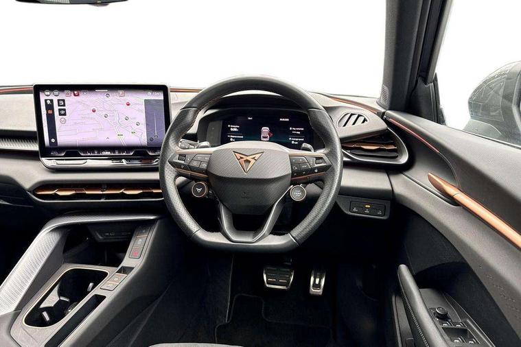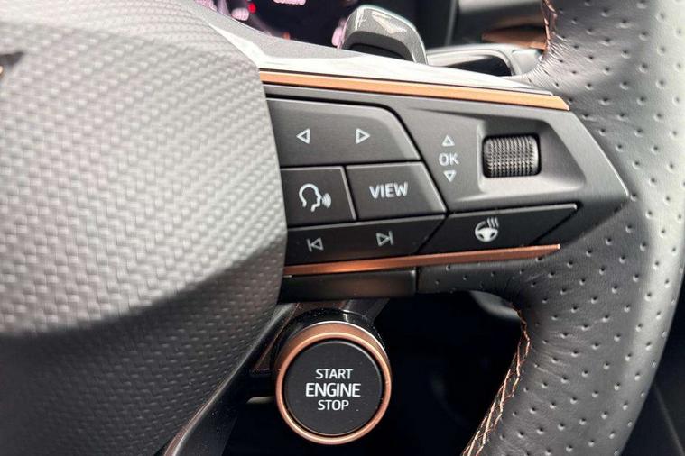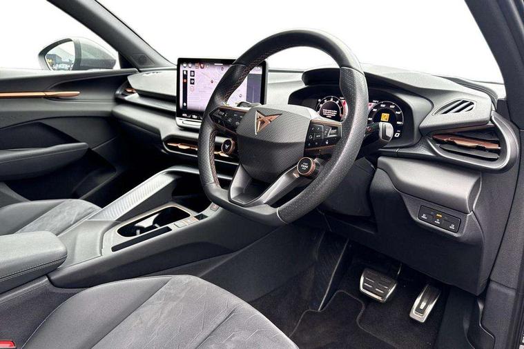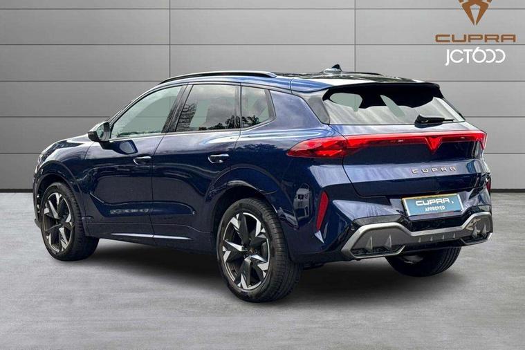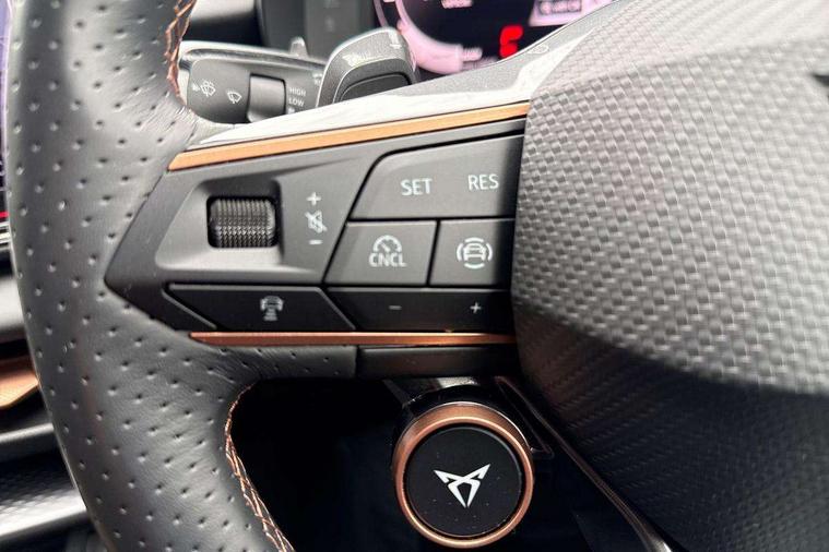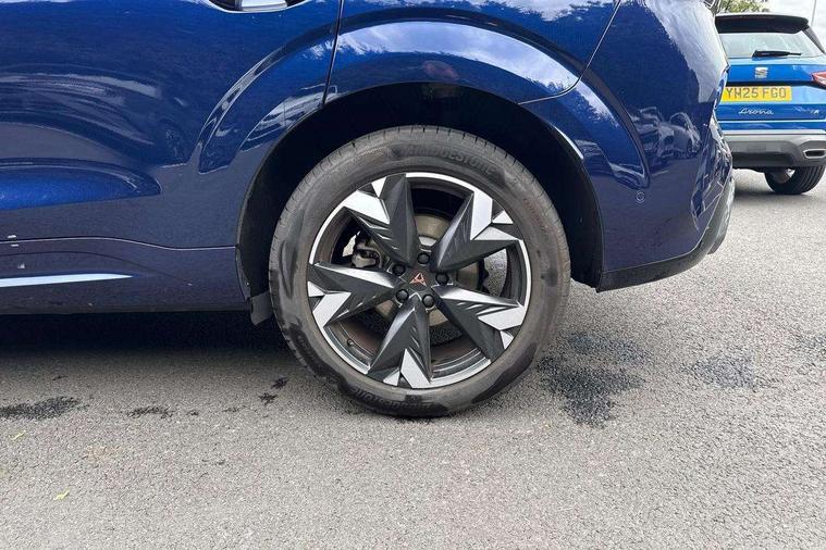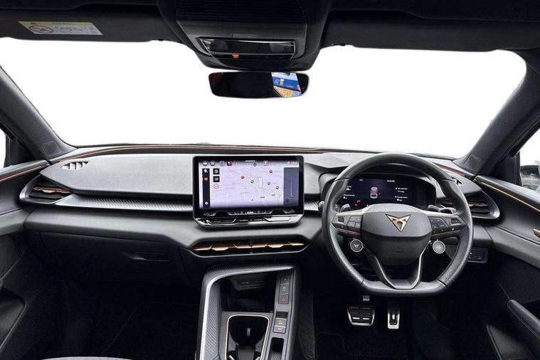 10.25" digital cockpit and configurable dashboard, Adaptive cruise control with follow-to-stop and speed limiter, Advanced driver alert system, Advanced lane assist with semi-automatic vehicle control in a medical emergency and traffic jam assist, Driving profile selection and conventional shock absorber, Dynamic road sign display, E-call, Electric tailgate with virtual pedal, Emergency steering support with turn assist, Four x USB Type C ports (2 in front and 2 in rear), Front and rear parking sensors, Front assist (Forward collision warning with automatic braking) with multifunction camera and front cross traffic assist, Head up Display, Intelligent park assist, Media system with Nav - 12.9" touch display, voice control, full link phone (wired/wireless), DAB and Steering wheel mounted controls, Rear traffic assist, Side and exit assist, Speed sensitive power steering, Start/stop system with regenerative braking, Top view camera (front camera, rear camera, 2 side cameras), Wireless phone charger, Auto dimming rear view mirror, Black roof rails, CUPRA 3D rear lights with ceremony & swiping indicator and illuminated logo, Dark tinted rear windows, Daytime running lights with automatic headlight control and Coming and Leaving home function, Door mirrors with memory function and lowing function on passenger mirror, Dynamic headlight range control, Electric front/rear windows, Electrically adjustable, heated and folding door mirrors, Front fog lamps with cornering function, Heat reflecting windscreen, High beam assist, LED headlamps with signature "CUPRA LED", Rain sensing wipers, Rear fog light on one side, back up light on both sides, Rear side wing doors, Rear wash/wipe, Third brake light, Welcome lights (within exterior mirror housing), 3 seat bench in 2nd row, Black roof lining, Cupra sports pedals, Dinamica cloth upholstery, Driver seat memory function, Electrically adjustable front seats including lumbar support, Front and rear head restraints, Front and rear reading lights X 4, Front centre armrest, Heated front seats, Heated leather wrapped multi function sports steering wheel with tiptronic, Illuminated interior front door sills, Isofix, Operating voltage 12V, Single front passenger seat, Smart wraparound interior lighting, Sunvisors with illuminated mirror, Three zone climate control with control panel in rear, Unsplit rear seat bench, split folding backrest, with centre armrest, Variable luggage/load compartment floor, 3 point seatbelts in front with pretensioner and electric height adjustment, 3 point seatbelts on all rear seats, Brake control system - ESC and brake booster, Child proof door locks, Driver and front passenger airbags, Electronic parking brake, Front and rear disc brakes, Front interaction airbag, Front passenger airbag deactivation switch, Front side airbags with curtain airbags, Pre-crash front and rear seat belt tensioner, window closure and hazard lights, Tyre pressure monitoring system, Visual and acoustic seat belt reminder, electric contact in front and rear, Anti theft alarm, Keyless locking and starting system with keyless access, Locking wheel bolts, Black decorative trims, Chrome interior detailing, 19" Spectrum exclusive machine alloy wheels, Tool kit,