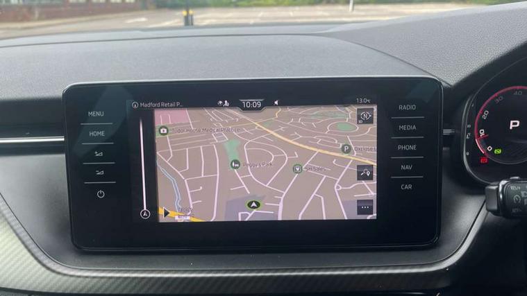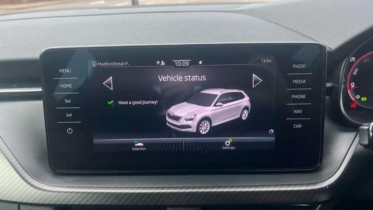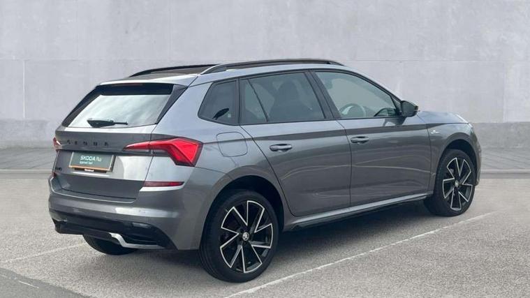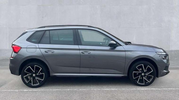 Amundsen satellite navigation with 9.2" glass colour touchscreen display, voice control, virtual cockpit, web radio and traffic sign recognition, Bluetooth system, E-call, Front assist system, Gesture control, PAS, Service indicator, Speed limiter, Virtual cockpit with 10.25" display, Wireless SmartLink for apple car play, android auto and mirrorlink, 8 Speakers, Auxiliary input socket, DAB Digital radio, Black door mirrors, Black radiator grille, Black rear diffuser, Body colour bumpers, Body colour door handles, Body colour roof spoiler, Boot lettering in black, Chrome grille surround, Dimming rear view mirror with black surround, Electrically adjustable and heated door mirrors, Front and rear electric windows, Front sport bumper, Full LED headlights with adaptive front light system and front cornering fog lights, Headlight range control, Heated rear window, High functionality rear led lights with dynamic indicators, KAMIQ Door sills, LED daytime running lights, Light sensors, Monte carlo plaque, Panoramic sunroof with black roof rails, Privacy glass, Rear fog lights, Rear side wing doors, Rear wiper, 12V Accessory socket in centre console, 3 seat bench in 2nd row, Aluminium pedals, Black ceiling for black/beige interior, Black roof lining, Chrome inner door handles, Cloth upholstery, Front head restraints, Glove compartment with illumination, Ice scraper, Isofix child seat fittings on outer rear seats, ISOFIX on front passenger seat, Leather gear lever, Manual lumbar support for front seats, Rake/reach adjustable steering wheel, Reading lights, Single front passenger seat, Sports seats, Sun visors with illumination on front passenger, Textile floor mats, Third rear headrest, Top tether for front passenger seat, Umbrella in driver's door, 3x3 point rear seatbelts, Airbags - driver and front passenger, ESP, Front passenger airbag deactivation switch, Front side airbags with curtain airbags, Hill hold control, Manual parking brake, Manual rear child locks, One tone horn, Rear disc brakes, Seatbelt reminder for driver an co-driver, Traction control, Tyre pressure monitor, Anti-theft alarm system with interior monitoring, backup horn, towing protection and remote central locking with SAFE system, Anti-theft wheel bolts, Electronic engine immobilizer, Chrome air vent surrounds, 18" Vega alloy wheels in black,