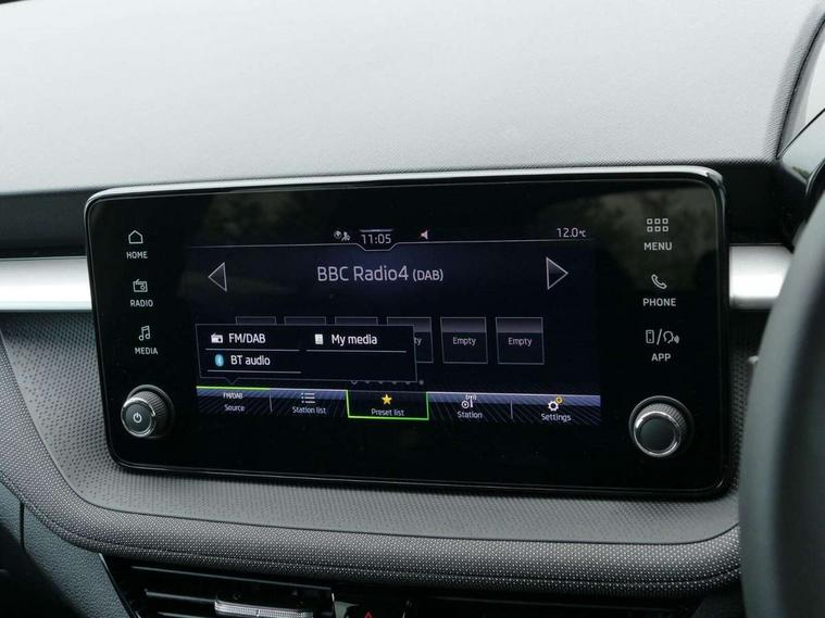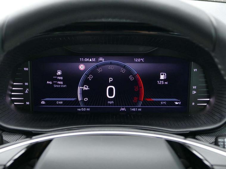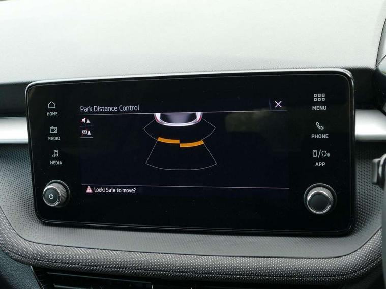 Advanced driver attention and drowsiness monitor, Bluetooth connection, Electromechanical power steering, Exterior temperature gauge, Service interval indicator, Traffic sign recognition, Virtual cockpit with 10.25" colour display, Wireless SmartLink for Apple CarPlay and Android Auto, 6 Speakers (4 in front and 2 in rear), Auxiliary socket for external MP3 player, DAB digital radio reception, Auto dimming rear view mirror, Body coloured bumpers, Door mirror integrated indicators, Front and rear electric windows, Front window wiper intermittent control, Headlight range control - Automatic, Ice scraper in fuel cap, LED daytime running lights with coming and leaving home feature, LED rear lights, Privacy glass, Rear LED fog light, Rear side wing doors, Rear window wiper with washing nozzles, Roof mounted spoiler, SKODA tailgate lettering in chrome, Third brake light, Unique dark chrome design logo on alloy wheels, 2 reading lights in front and 2 reading lights in rear, 3 rear headrests, Backrest split and folding, Central console with removable cup holder and storage box, Chrome handbrake release button, Dual zone air conditioning with climatronic electronic control, Fabric upholstery, Front centre armrest, Gearshift knob/handle in leather, Grain satin black interior door handles, Hand brake lever handle in leather, Height adjustable front headrests, Height adjustable front seats, Height adjustable steering wheel, ISOFIX and TopTether anchorage points to the outer rear seats, ISOFIX and TopTether on the front passenger seat, Luggage compartment lighting, Manually adjustable lumbar support in front seats, Pollen filter, Rear seat bench unsplit, Single front passenger seat, Skoda lettering on steering wheel, Storm grey headlining, Sun visors with mirror and airbag label on passenger side, Textile floor mats, Ticket holder, Umbrella in drivers door, 3-point height adjustable front seats belts with pretensioner and force limiter, Automatic warning lights in case of crash, Driver and passengers airbag with switch off function, e-Call+, ESC including ABS, MSR, ASR, EDS, HBA and XDS, Front and rear seat belt warning, FRONT ASSIST (AEB City and AEB Inter Urban), Front side airbags, Head airbags, Hill hold control, One tone horn, Pedestrian protection, Three rear 3-points safety seat belts with pretensioner and force limiter including stop function for outer rear seat belts, Tyre pressure monitoring system, Anti-theft alarm system including immobiliser, interior monitoring, backup horn, and towing protection, Central locking with radio remote control, interior controls, SAFE function and 2 foldable keys, Black painted air vents, Grain satin black central console cover, Metallic grey upper decorative trim, Satin black door and side trim panel in front, Textile Kota grey lower decorative inserts, Anti-theft wheel bolts protection, Super-low rolling resistance tyres,