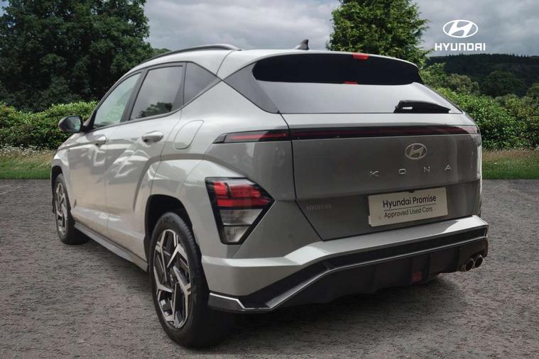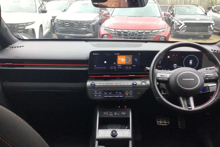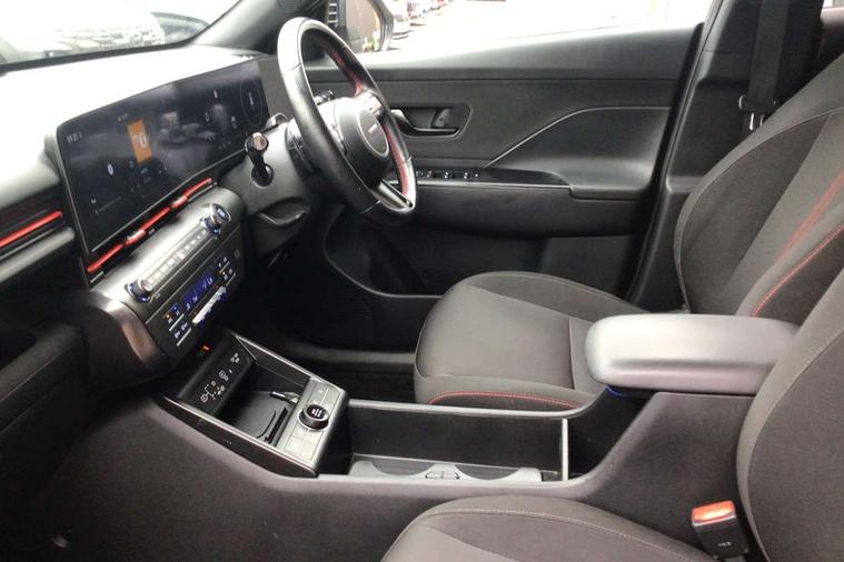 10.25" touchscreen centre console display satellite navigation with live services and mapcare, Bluetooth connectivity with voice recognition, Digital clock, Driver attention warning, Driver supervision instrument cluster with 12.3" LCD display, eCall emergency call system, Forward collision avoidance assist (FCA 1.5) - Car, pededstrian, cycle and junction turning, Front parking sensor, Head up Display, Intelligent speed limit assist, Lane follow assist, Lane keep assist, Leading vehicle departure alert (LVDA), Parking system with rear camera and guidance system, PAS, Rear parking sensor, Roadside assistance, Smart cruise control with stop and go functionality, Smartphone integration compatible with Apple CarPlay and Android Auto, Windscreen washer fluid sensor and warning indicator, Wireless phone charging pad, 2 front USB C and 2 rear USB C charging points, DAB Digital radio, Speakers - Front, rear and tweeters, Steering wheel audio, phone and cruise controls, Auto dimming rear view mirror, Automatic headlights with dusk sensor, Automatic windscreen wipers with rain sensor, Body colour bumpers, Body colour exterior door handles, Body coloured wheel arch inserts, Door mirror LED indicator lights, Electric front windows with anti-trap mechanism and one touch control, Electric rear windows, Electrically adjustable and heated door mirrors, Full LED MFR headlights, Gloss black door mirrors, LED daytime running lights, LED rear lights, Power folding door mirrors, Privacy glass - Rear windows and tailgate, Rear side wing doors, Rear spoiler with integrated LED brake light, Rear wiper, Roof rails, Solar glass with front door glass and windscreen, Tinted glass in front and rear doors, Windscreen auto defog function, 12V power outlet in front console, 2 zone climate control, 3 seat bench in 2nd row, 40/20/40 split folding rear seat, Adjustable head restraints, Aluminium pedals, Ambient lighting, Cloth upholstery, Driver and passenger front seat pockets, Driver's seat electric lumbar support, Driver's seat height adjustment, Driver/passenger sunvisors and illuminated vanity mirrors, Front passenger seat manual adjustments, Heated front seats, Heated rear seats, Heated steering wheel, Height/reach adjustable steering column, Isofix rear child seat fastenings, LED centre interior light, LED front interior light, Luggage compartment LED lightning, Metal paint effect interior door handles, Parcel shelf, Rear centre armrest, Rear centre console with air vents, Shift by wire SBW, Single front passenger seat, Vertical adjustment rear head restraints, N Line exterior design pack - Kona, Trailer wiring package - Kona, Airbag - front, front side, curtain and centre front airbag, Anti-lock brake system, Childproof rear door locks, Downhill brake control, EBD + Brake Assist, Electric parking brake, Electronic stability control, Fasten seatbelt reminder, Fixed 3 point for second row centre passenger seatbelt, Front seatbelt pretensioners, Height adjustable front seatbelts, Hill start assist control (HAC), Passenger airbag deactivate switch, Rear seat alert, Traction control, Tyre pressure monitoring system, Alarm/immobiliser, Deadlocks, Folding key, Locking wheel nuts, Remote central locking, Smart key with keyless entry and engine start/stop button, Temporary mobility kit (TMK),