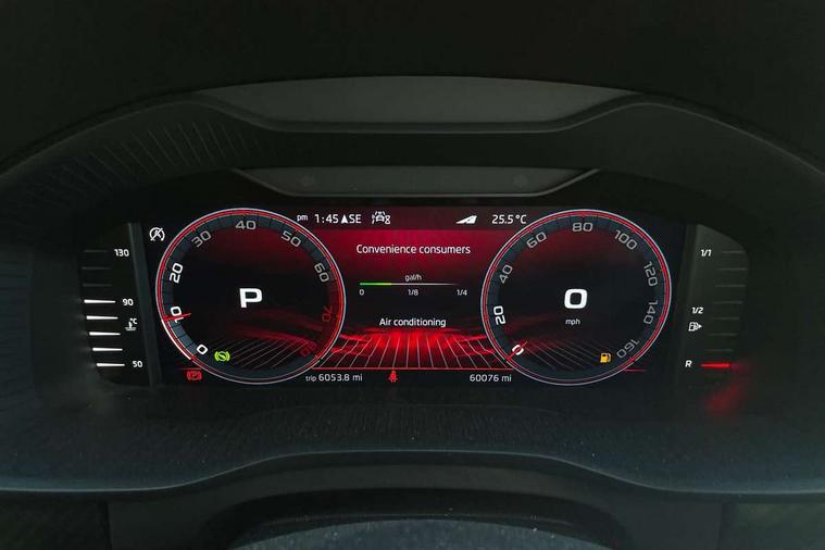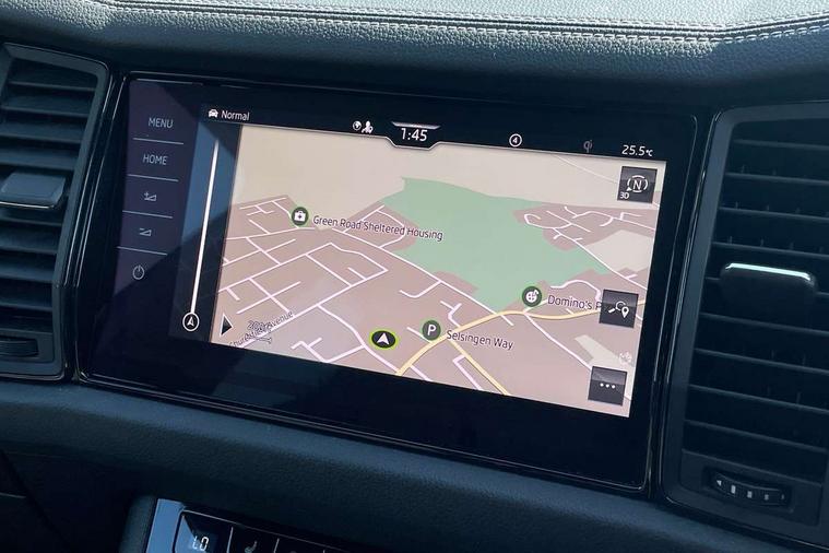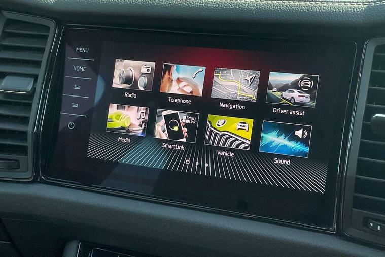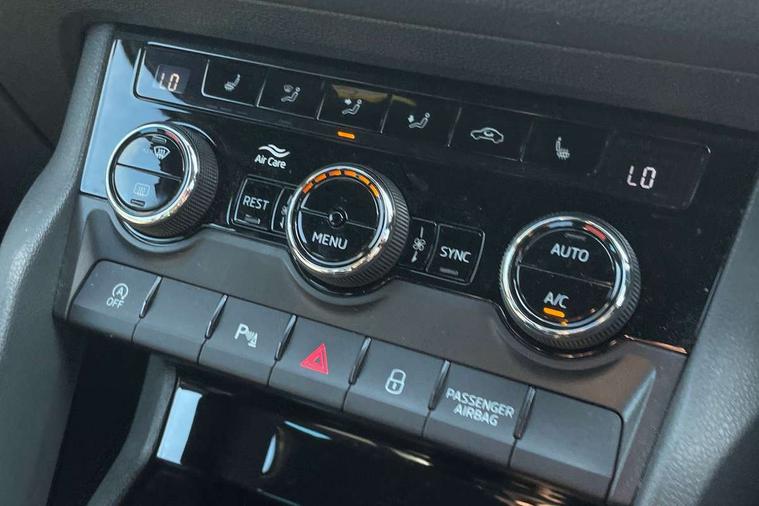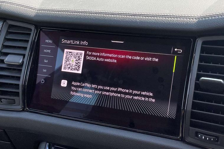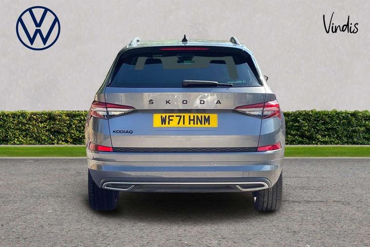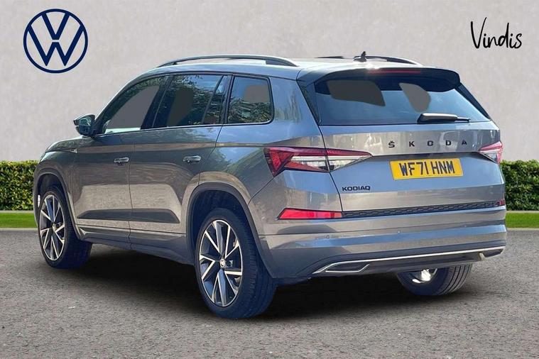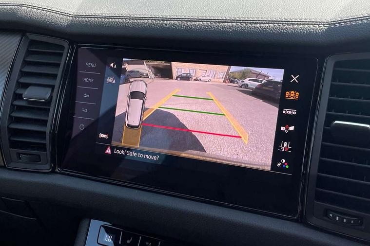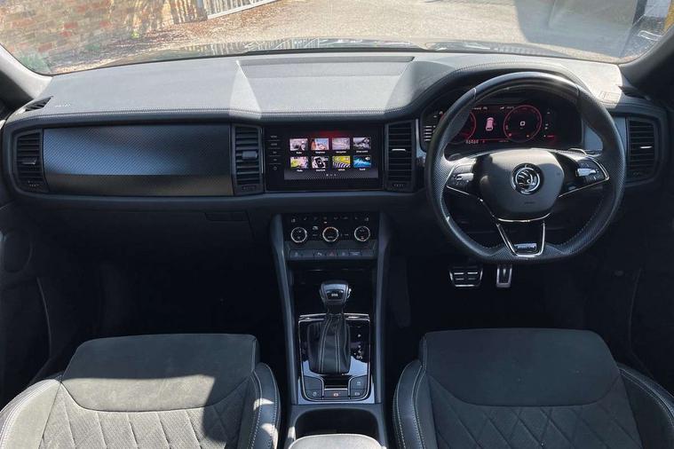 Bluetooth system, Columbus satellite navigation with 9.2" touchscreen, integrated Wi-Fi, web radio, E-call, ECO Stop/start function, Exterior temperature indicator, Progressive steering, Rear view camera, Smartlink wireless for apple carplay and wired for android auto, Speed limiter, USB C Port x 2 in front centre console, Wireless charging, 8 speakers, DAB Digital radio, Aero front windscreen wipers with intermittent function, Aero rear window wiper, Auto dimming rear view mirror, Black roof rails, Black sports styling including front grille and window surrounds, Black wheel arch surrounds, Body colour bumpers, Body colour door handles, Electric front and rear windows, Extended rear spoiler with finlets in gloss black, Front fog lights, Full LED matrix headlights with AFS (adaptive front light system), cornering function and AWL (all weather lighting system), Gloss black door mirrors, Headlight washers, Heated rear window, Invisible tailpipe, LED daytime running lights, LED rear fog light, LED third brake light in rear spoiler, Light assistant (coming/leaving home/tunnel light), Off-road style lower front bumper element, Privacy glass, Rain and light sensors, Rear diffuser, Rear LED lights (high functionality) with welcome effect and dynamic indicators, Safety reflectors on front and rear doors, Sportline badge on front fender, Sports front and rear bumpers including lower rear chrome strip, Tailgate lettering in Black, Window control switches with black trim, 12V socket in boot, 2 rails with 2 hooks, 4 foldable roof handles with rear coat hooks, 60:40 foldable rear seat with sliding adjustment and backrest angle adjustment, Aluminium pedals, Black roof headlining, Bottle holders in door panel in the 1.5 litre front and 1 litre rear, Cargo storage compartments, Chrome headlight control button, Chrome interior door handles, Coat hooks on B pillar, Covered storage compartment on driver side, Decorative door sills in the front and rear, Front centre armrest with storage compartment, cup holder and 12V socket, Front courtesy lights, Gear shift lever with chrome frame and black gloss insert, Grey stitching in front and rear armrests and door armrests + door inserts, Height adjustable front headrests, Illuminated and cooled glovebox, Illuminated luggage compartment, Isofix child seat fittings in outer rear seats with top tether, Manually adjustable steering column, Microsuede door panels, Net programme in boot (1x horizontal Net, 2x vertical Nets), Overhead glasses storage compartment, Pollen filter, Rear centre armrest with cupholders, Sliding trunk cover, Small Bags on the inner sides of the front backrests, Sports seats, Sunvisors with illuminated vanity mirrors, Three rear height adjustable headrests, Ticket holder on A Pillar, Umbrella in door panel, Variable boot floor, LED Interior light pack - Kodiaq, Auto door release and activation of warning lights, Driver and front passenger airbag with knee airbag and front passenger airbag deactivation, Electronic parking brake with hill start assist, Emergency rear braking signal, ESC (incl. ABS+MSR+ASR+EDS+HBA+DSR+RBS+MKB), Front assist with autonomous emergency braking, Front side airbags with curtain airbags, Fuel cut off safety device, Height adjustable front 3 point seatbelts + pretensioners, Hill hold control, Rear disc brakes, Safety vest holder in door, Seat belt reminder for all seats, Tailgate unlocking from outside, Three point rear seat belts, Two tone horn, Tyre pressure monitor, Alarm with interior monitoring and tilt sensor with safe function, Anti-theft wheel bolts, Immobiliser, Keyless entry and start system (KESSY), Remote central locking with 2 keys, Black air vent surround, Carbon finish dashboard and door inserts, Grey stitching in dashboard, 20" Vega Anthracite alloy wheels, Temporary spare wheel (space saver),