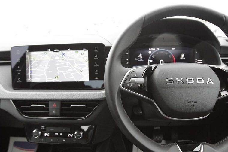 Advanced driver attention and drowsiness monitor, Bluetooth, e-Call (emergency call), Front assist system, PAS, Rear parking sensors, Rear view camera, Speed limiter, Tailgate, Traffic sign recognition, Virtual Cockpit - 10.25" digital display, Voice control system, Wireless smartlink, 4 USB C ports, 8 Speakers, 9.2" Skoda navigation display, DAB radio, Auto dimming rear view mirror, Automatic headlamp activation with Coming home and Leaving home feature, Automatic high/low beam, Body colour bumpers, Body colour door mirrors and handles, Chrome moulding around grille, Front and rear electric windows, Full LED headlights, Heated rear window, LED 3rd brake light, LED brake lights, LED daytime running lights, LED front turning lights, LED high beam, LED low beam, LED taillights, Rear LED fog light, Rear side wing doors, Rear wiper, Tinted windows, Unique dark chrome design logo on alloy wheels, 12V socket in luggage compartment, 3 seat bench in 2nd row, Black / Grey armrest stitching, Black hotstamping, Cargo elements, Chrome inner door handles, Door inserts in satin black, Driver and passenger sun visors with vanity mirror, Dual zone climate control, Front and rear roof lights, Front centre armrest, Front head restraints, Glasses storage in roof liner, Height adjustable driver seat, Height adjustable passenger seat, Ice scraper, Illuminated glove compartment, Inner circulation control with pollen filter, ISOFIX for front passenger seat, Isofix preparation for back seats, Leather gearknob and handbrake lever, Loft cloth upholstery, Luggage net under rear parcel shelf, Manual lumbar support for front seats, Net package and top tether hooks in boot space, Pearl grey ceiling, Pocket on the back of both front seats, incl. mobile phone pockets, Single front passenger seat, Skoda lettering on steering wheel, Textile floor mats, Third rear headrest, Ticket holder, Top tether for front passenger seat, Umbrella in driver's door, 3x3 point rear seatbelts, ABS, Child locks, Curtain airbags and front side airbags, Disc brakes, Driver and front passenger airbags, ESP, Hill hold control, Manual leather parking brake, One tone horn, Passenger airbag switch off function, Seatbelt reminder for driver and front passenger, Tyre pressure monitoring system, Anti theft alarm system with interior monitoring, backup horn and towing protection, Anti-theft wheel bolts, Remote central locking with 2 remote folding keys, SAFE function for remote central locking, Decord pad, door inserts Kota uni,