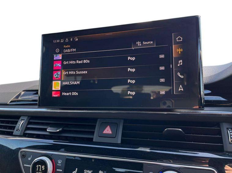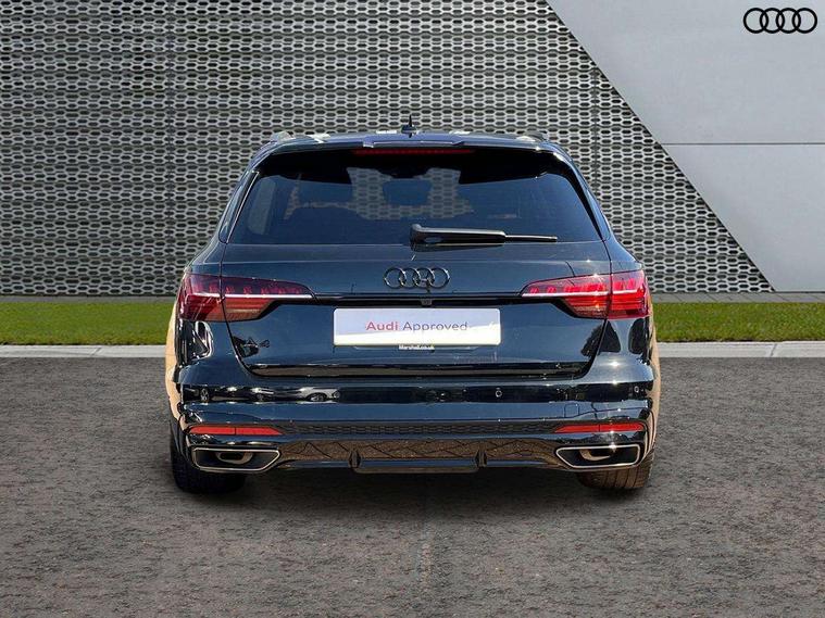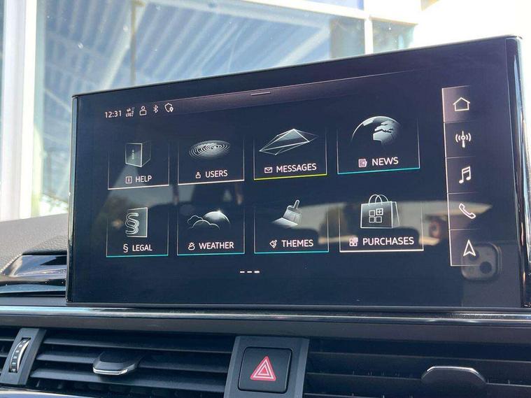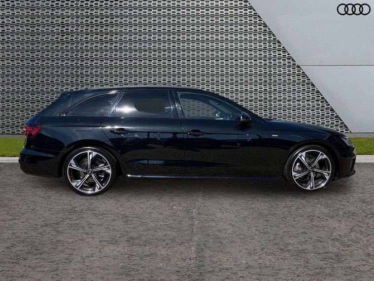 Audi connect safety and service (e-call), Audi drive select, Audi smartphone interface, Audi virtual cockpit, Automatic start-stop system with coasting functionality and efficiency programme, Bluetooth interface, Camera based traffic sign recognition, Electromechanical power steering, Email, calendar and text messages displayed via MMI, Front and rear parking sensors, Lane departure warning, MMI Navigation plus with MMI touch includes 10.1" high resolution colour MMI display, 3D map, Power operated tailgate, Rear view camera, Voice control system, 54 litre fuel tank, Sports suspension lowered by 23mm, 2 USB charging ports, 8 passive loudspeakers, DAB digital radio reception, Audi beam uses LEDs to project the audi logo onto the ground as you exit your A4, Auto dimming rear view mirror, Black Audi rings and black badging (model name in black badging, no engine badging), Body colour door handles, Body colour front spoiler lip, Body colour side sill trim, Electric adjustable/heated/folding door mirrors with auto dimming, Exhaust tailpipes in high dark chrome, Grained matt black side air inlets with matt aluminium silver inlay, High beam assistant, High gloss black B pillar trims and triangular rear door trim, LED headlights with LED rear lights + dynamic rear indicators + headlight adjustment and high beam, turning light + LED daytime running lights, LED third brake light, Privacy glass, Rain and light sensors, Rear diffuser in matt black with trim strip in matt aluminium silver, Rear side wing doors, Rear wiper, RS4 rear spoiler in body colour, S Line roof edge spoiler, Sport front and rear bumpers with side skirts, Variable intermittent front wash/wipe, Windscreen with acoustic glazing, 4 way electric lumbar support for driver and front passenger, 40/20/40 split folding 3 rear seat bench in 3 parts with rear centre armrest, Black carpets, Black cloth headlining, Black perforated leather gearknob, Contrast stitching on seats, steering wheel and gear lever gaiter, Deluxe 3 zone electronic climate control, Electric load area cover, Front and rear head restraints, Front centre armrest, Heated front seats, Illuminated door sill trims with S logo, ISOFIX child seat mounting and top tether, Manual seat adjustment, Single front passenger seat, Stainless steel pedals and foot rest, Tool kit, Black styling pack - A4 Avant, LED Interior light pack - A4/S4, 3 rear seatbelts, 6 airbags - Driver, front passenger, curtain and side windows, Attention and drowsiness assist, Electronic Stabilisation Control (ESC) including ABS, ASR and EDL, Hill hold assist, Multi collision brake assist, Pop-up bonnet for pedestrian protection, Pre sense city, Rear door child safety locks, Seatbelt monitoring, Warning triangle and first aid kit, Anti theft alarm, Anti theft wheel bolts, Central locking, Keyless Go, Piano black finish inlay, Tyre repair kit,