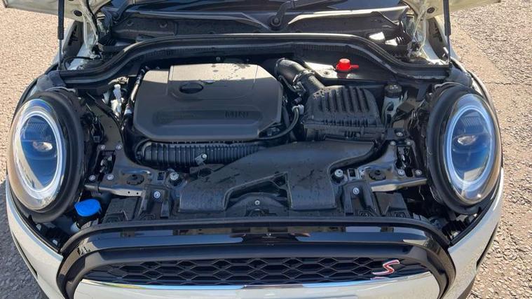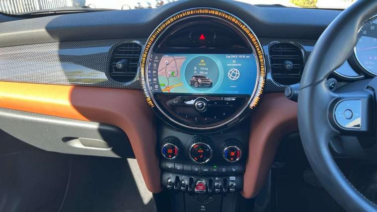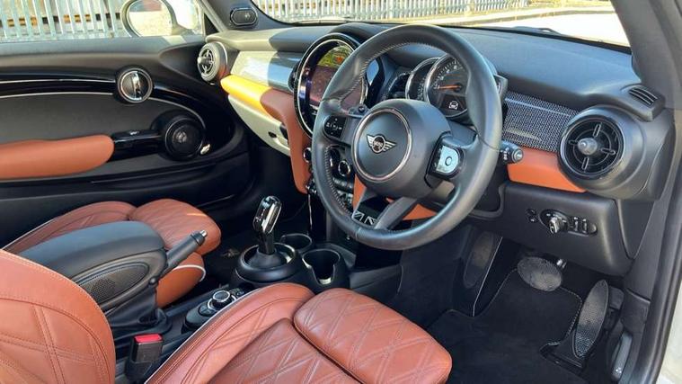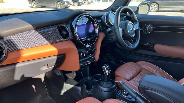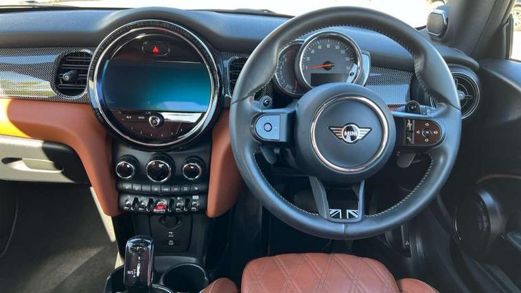 Apple CarPlay, Automatic start/stop function with brake energy recuperation, Compatible mobile phone bluetooth with audio streaming, Cruise control with brake assist, Electro-mechanical speed dependant steering assistance, Flexible car sharing preparation, Instrument cluster, MINI Driving Modes - centre toggle switch to control driving setting (sport, mid and green), Mini E-call, MINI TeleServices, On board computer, Rear park distance control, Service interval indicator, Double Vanos system, Fully variable valve control, High precision injection, Performance Control, Steptronic sport transmission with double clutch and steering wheel paddles, 8.8" touchscreen with LED ring, FM tuner and DAB digital radio, 3rd brake light, Automatic headlight activation switch, Bonnet scoop, Chrome line exterior - radiator grille bars, tailgate handle, lower front grille grating and rear central fog-light, Dynamic brake lights, Electric front windows, Heated rear window, Heated windscreen washer jets, LED headlight with closed ring and daytime driving lights, Metal door sill strips with Cooper S, Model logo Cooper S on right of tailgate, Rain sensor window wipers, Rear fog lights, Rear LED lights with union jack design, Rear window wiper, Side scuttle panel with integrated indicator, Sun/heat protection glass, White indicator lenses, 12V Accessory socket in centre console, 2 seat bench in 2nd row, 4 lashing eyes in luggage compartment, 60/40 split folding rear seat, Carbon black colour line - Knee roll and door armrest, Chrome interior highlights, Chrome line interior - air vents, gear lever base, door handles and speakers in doors, Cupholders, Front and rear head restraints, Front and rear isofix with front passenger airbag deactivation, Front floor mats in velour, Glove compartment, Height and length steering column adjustment, Interior lighting with 12 different colours across the dashboard, underneath door bezel with illuminated laser-engraved design on central display, Leatherette gearshift lever and handbrake gaiters, LED reading lights, vanity mirror lights, front foot well light and spotlight on front seats, Manual air conditioning, Mechanical seat adjustment - forward/back & backrest for front seats and driver seat height adjust, MINI yours badge on exterior pillar, Multifunction steering wheel, Passenger seat height adjuster, Satellite grey headlining including grab handles and clothes hooks, Single front passenger seat, Storage compartments in doors, Storage pocket on back of front seats, Sunvisors with vanity mirrors, Walknappa leather steering wheel with grey seam and MINI Yours badge on Piano Black lower steering wheel spoke, 3 point seatbelts on all four seats, 6 Airbags - front, side, head and seat belt tensioners, Anti-lock braking system (ABS), DSC - Dynamic Stability Control, Front and rear disc brakes, Two tone horn, Tyre pressure monitoring system, Alarm system with tilt sensor, monitoring doors, bonnet interior and tailgate, Electronic vehicle immobiliser, Start/stop toggle with keyless go, Tool kit,
