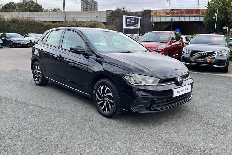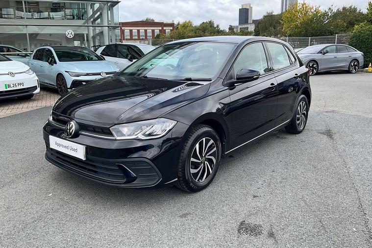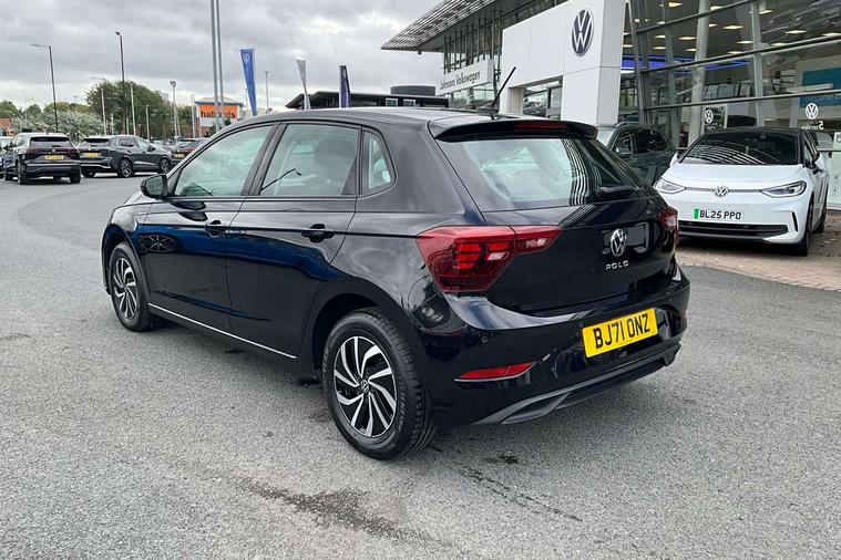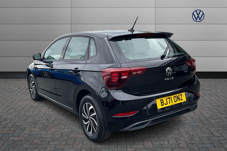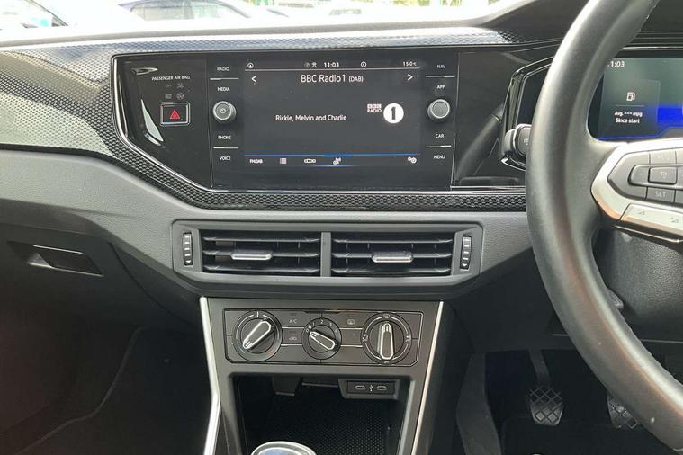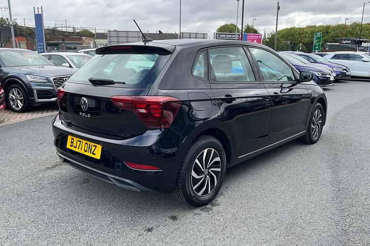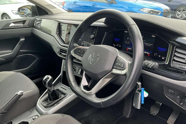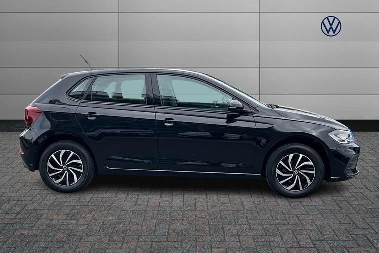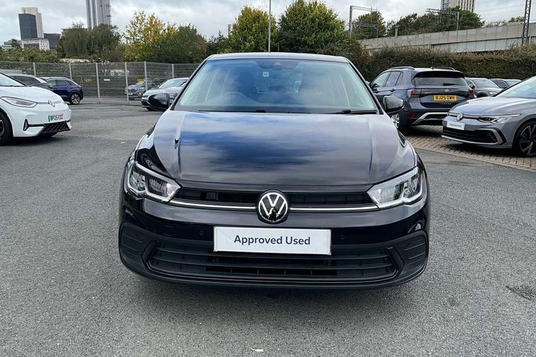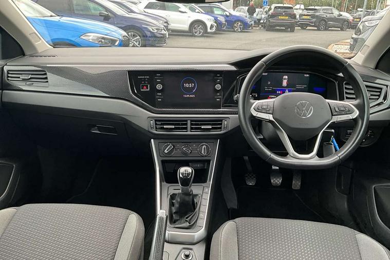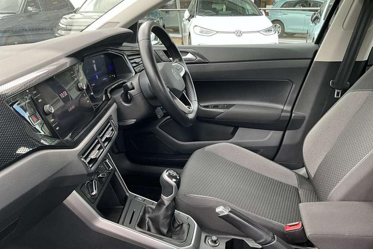 Adaptive cruise control without follow-to-stop and speed limiter, Bluetooth mobile phone interface, Driver alert system, Emergency call service, Front assist system, Power assisted speed sensitive steering, Preparation for We connect and We connect plus, Speedo and rev counter, electronic odometer, trip, service interval display and fuel gauge, Standard rear axle, Travel Assist - Lane keeping system and traffic jam assist, Travel assist including emergency assist, Trip computer, Warning signal and warning light for front and rear seatbelts not fastened, Washer fluid level indicator, Wireless app connect, Front wheel drive, Rear shock absorpion, Start-stop system with battery regeneration (recuperation - energy recovery during braking), DAB Digital radio, Diversity antenna for FM reception, Automatic dimming interior rear view mirror, Body colour bumpers, Body colour door handles, Body colour door mirrors, Electric front windows, Heat insulating darkened glass in side and rear windows, Heat insulating glass windscreen, Power folding adjustable/heated exterior mirrors and front passenger exterior mirror lowering function, Rain sensor, Rear electric windows, Rear fog light, Rear windscreen washer and wiper with interval delay, Third brake light, 12V power socket in centre console, 2 front and 2 rear reading lights, 2 USB-C ports in the front, 2 USB-C charging sockets on the center console in the rear, 3 rear head restraints, 60/40 split folding rear seat and rear seat bench not split, Ceramique headliner, Chrome plated radiator grille inserts, air vent surrounds and light switch surrounds, Door and side trim panel, Driver and front passenger seat height adjustment, Driver/passenger sunvisors with illuminated vanity mirrors, Front centre armrest, Front seat backrest storage pockets, Front standard seats, Handbrake lever handle in leather, Hartley/Thomas cloth upholstery, Isofix child seat preparation easy-fit (for two outer rear seats, and front passenger seat) compatible with I-size, Leather trimmed gear knob, Luggage compartment cover, Luggage compartment floor, Luggage compartment lighting, Multifunction steering wheel, Standard pedal cluster, Light and vision pack - Polo, 3 point height adj front seatbelts + pretensioners, 3x3 point rear seatbelts, ABS, Driver and front passenger airbag with front passenger airbag deactivation, Drivers and front passengers safety optimised head restraints, ESC (Electronic stability control) + EDL (Electronic Differntial lock) and ASR (Traction control), Extended and predictive pedestrian/ cyclist protection, Front curtain and side airbags with center airbag, Front disc brakes, Hill hold control, Rear drum brakes, Single tone horn, Tyre pressure loss indicator, Alarm with interior protection, Anti-theft alarm system with interior monitoring, backup horn, and towing protection, Anti-theft wheel bolts, Electronic engine immobiliser, Remote central locking with 2 remote folding keys, Lava stone black gloss/matt decorative inserts in dash and front door panels, Low rolling resistance tyres,