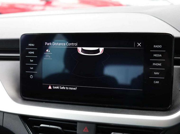 Amundsen satellite navigation with 9.2" glass colour touchscreen display, web radio, voice control and traffic sign recognition, Bluetooth system, E-call, Front assist system, Gesture control, PAS, Service indicator, Speed limiter, Wireless SmartLink for apple car play, android auto and mirrorlink, 8 Speakers, Auxiliary input socket, DAB Digital radio, Body colour bumpers, Body colour door mirrors and handles, Chrome grille surround, Dimming rear view mirror with black surround, Electrically adjustable and heated door mirrors, Front and rear electric windows, Headlight range control, Heated rear window, LED rear lights - low functionality, Light sensors, Privacy glass, Rear fog lights, Rear side wing doors, Rear wiper, 12V Accessory socket in centre console, 3 seat bench in 2nd row, Chrome inner door handles, Cloth upholstery, Front head restraints, Glove compartment with illumination, Height adjustable driver and front passenger seats - manual, Ice scraper, Isofix child seat fittings on outer rear seats, ISOFIX on front passenger seat, Manual lumbar support for front seats, Rake/reach adjustable steering wheel, Reading lights, Single front passenger seat, Sun visors with illumination on front passenger, Textile floor mats, Third rear headrest, Top tether for front passenger seat, Umbrella in driver's door, 3x3 point rear seatbelts, Airbags - driver and front passenger, ESP, Front passenger airbag deactivation switch, Front side airbags with curtain airbags, Hill hold control, Manual parking brake, Manual rear child locks, One tone horn, Rear disc brakes, Seatbelt reminder for driver an co-driver, Traction control, Tyre pressure monitor, Anti-theft alarm system with interior monitoring, backup horn, towing protection and remote central locking with SAFE system, Anti-theft wheel bolts, Electronic engine immobilizer, Silver haptic decorative insert on the dashboard with hot stamping in glossy black,