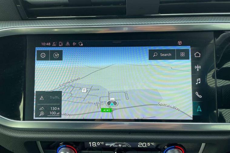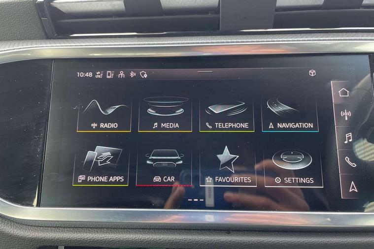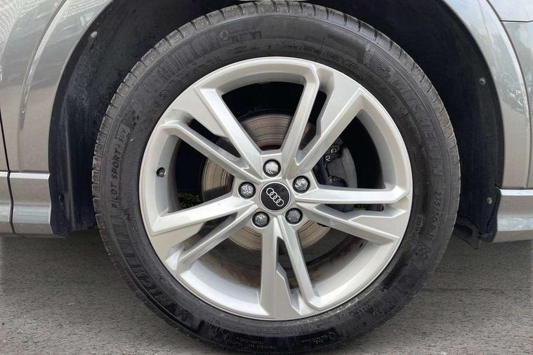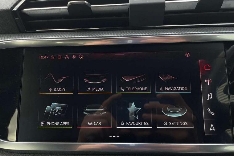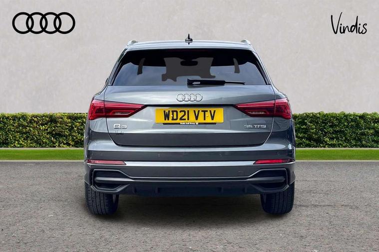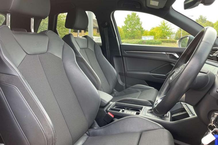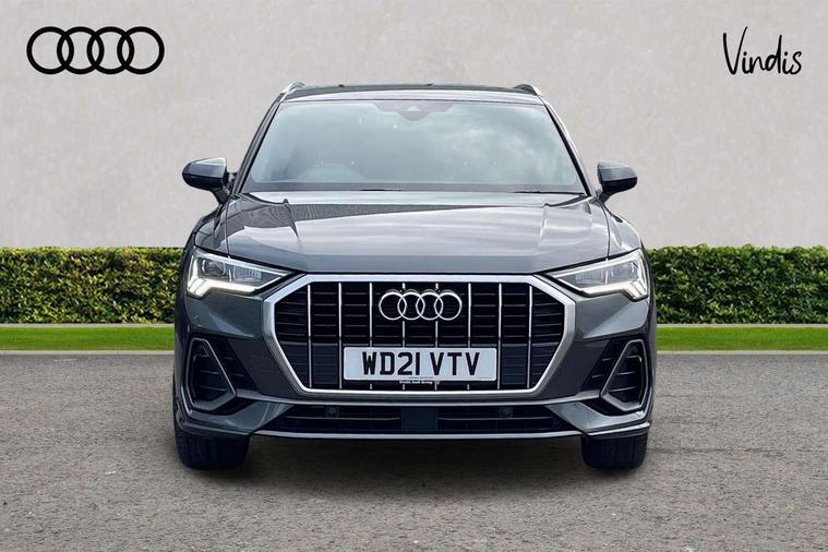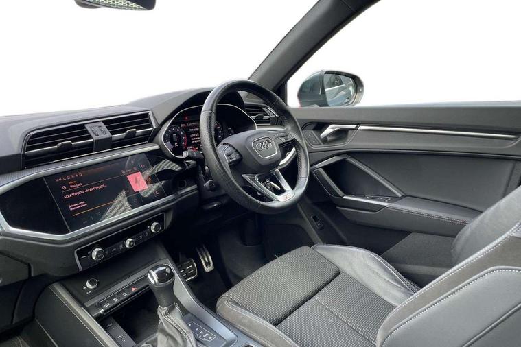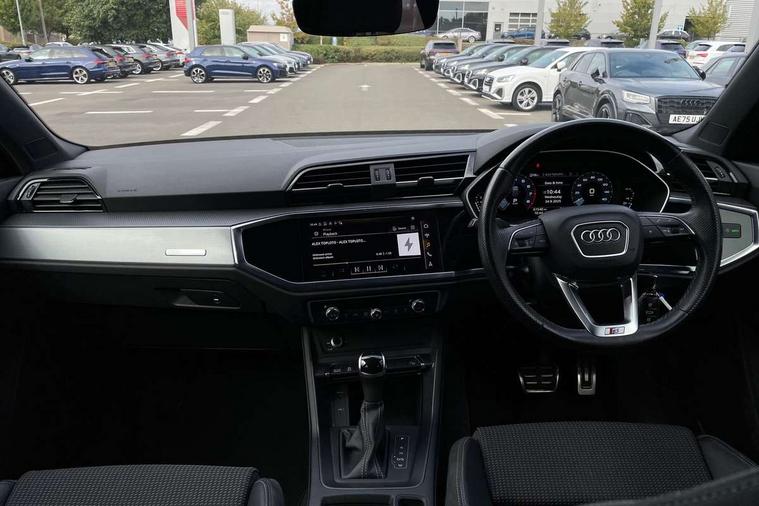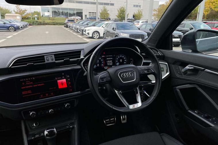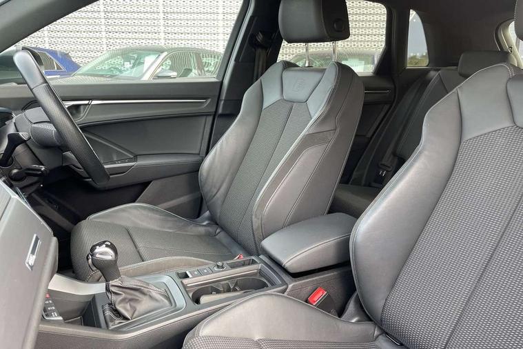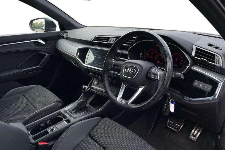 Amazon alexa Integration, Audi connect safety and service (e-call), Audi drive select, Audi lane departure warning, Audi Virtual Cockpit - 10.25" display, Bluetooth interface, Camera based traffic sign recognition, MMI Navigation Plus with high resolution 10.1 inch touchscreen colour display, Power operated tailgate, Progressive steering, Service interval indicator, Smartphone interface includes wireless Apple carplay/Android Auto, Start stop system with recuperation, Voice control system with natural language interaction, 48V Mild hybrid technology, Sports suspension, 2 USB-C ports with charge and data functions, 6 passive loudspeakers, DAB digital radio module, Acoustic windscreen, Aluminium roof rails, Aluminium window trim, Auto dimming frameless rear view mirror, Body coloured bumpers, Electrically folding, adjustable and heated door mirrors with integrated LED side indicators and kerb view function for passenger side, Front and rear electric windows, Front fog lights, Front side air inlets in matt platinum grey, Front spoiler blade in matt platinum grey, Grille vertical bars in aluminium silver/Matt, High gloss black finish B and C pillars, LED headlights with LED daytime running lights and dynamic rear indicator, LED rear lights, Privacy glass dark tinted rear and rear-side windows (from B-pillar backwards), Rain and light sensors, Rear diffuser strip in matt titanium black, S line badges on front wings, S Line front and rear bumpers, Side skirt insert in matt Platinium grey, Silver chrome grille surround, Titanium black radiator grille, 12V socket in rear centre console, 40:20:40 folding with manual adjustment for 60:40 forwards/backwards position and backrest angle, Adjustable rear seat bench/backrest with centre armrest and cupholder, Black cloth headlining, Dual zone electronic climate control, Front and rear black floor mats with contrast stitching in rock grey, Front and rear headrests, Front and rear roof module including reading lights, Front centre armrest, Glove compartment lighting, Height and reach adjustable steering wheel, Illuminated door sill trims with S logo, ISOFIX child seat mounting for front passenger with airbag deactivation and outer rear seat including top tether attachment point for outer rear seats, Luggage compartment light, Manual front seats with height adjustment, Perforated leather gearknob, Stainless steel luggage compartment sill finisher, Stainless steel pedals, Non smoking pack - Q3, 3x3 point rear seatbelts, 6 airbags - Driver, front passenger, curtain and side windows, Audi pre-sense front with pedestrain and cyclist recognition, Electrically operated child locks on rear doors, Electromechanical parking brake, Electronic stabilisation control including ABS, ASR and EDL, Hill descent control, Hill hold assist, Pre sense basic, Seatbelt monitoring, Tyre pressure warning, Warning triangle and first aid kit, Anti theft alarm, Anti theft wheel bolts, Remote central locking, Dark matt brushed aluminium inlay, Detail dashboard around MMI touch colour display in glass look, black with surround in aluminium look, Leatherette door armrest, Tool kit, Tyre repair kit,