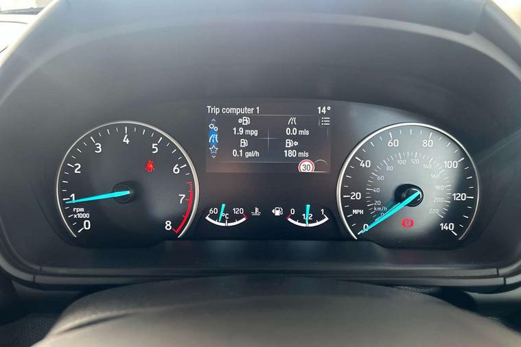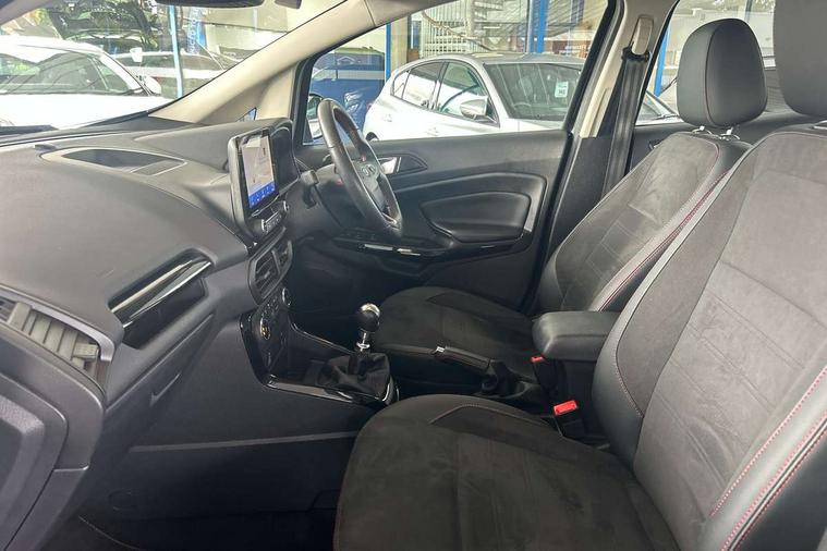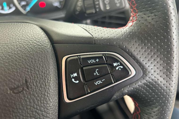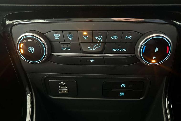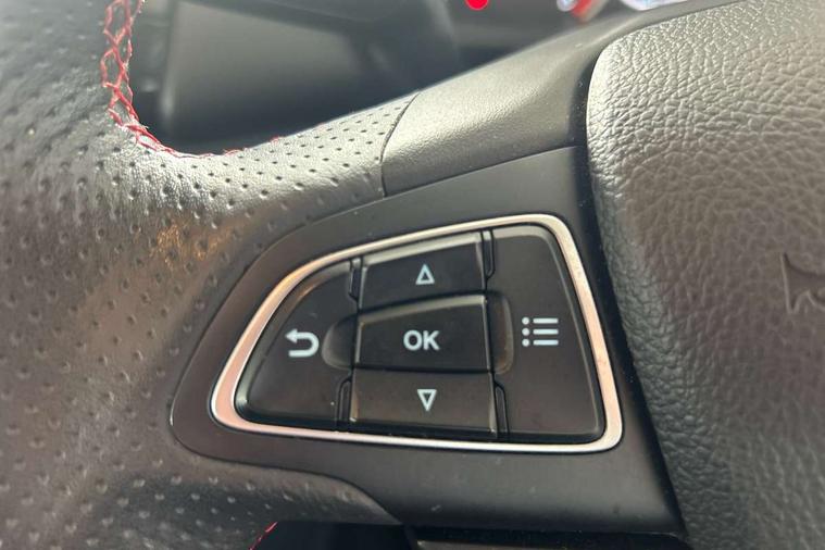 Cruise control, e-Call (emergency call), Easy fuel capless refuelling system, Ford SYNC 3 nav system with DAB radio, 8" screen, emergency assistance, Apple car play/Android auto, 2x USB, 6 speakers, Ford pass connect, Intelligent speed limiter, PAS, Rear parking sensors, Rear view camera, Traffic sign recognition, Trip computer, Sports suspension, Steering wheel mounted audio controls, Auto dimming rear view mirror, Automatic front wipers, Automatic headlights, Black roof rails, Body colour door handles, Body coloured bumpers, Chrome lower window surround, Electrically adjustable and heated door mirrors, Front fog lights, Front grille bars and surround in black, Headlight levelling control, Large rear roof spoiler, LED day running lights, LED third brake light, Power front and rear windows, Puddle lights, Quick-clear heated windscreen, Rear side wing doors, Rear wiper, ST Line body styling kit - Black headlamp bezel, front and rear sport bumpers, body colour lower door claddings, 12V socket in front and rear, 3 seat bench in 2nd row, 60/40 split rear seats, Ambient lighting, Centre console with sliding front armrest, Cooled glovebox, Courtesy lights with map reading light, Driver seat height/lumbar adjust, Driver's side glovebox, Driver/passenger sunvisors and lidded vanity mirrors, EATC - Electronic Auto Temperature control, Folding grab handles, Front head restraints, Front seat back map pockets, Illuminated glovebox, Illuminated luggage compartment, Isofix system on outer rear seats, Luggage compartment carpet, Neosuede/Partial sensico leather upholstery, Overhead console with sunglasses holder, Rake adjustable rear seats, Reach + rake adjustable steering column, Rear headrests, Sensico trimmed steering wheel, handbrake and gearshift gaiter with red stitching, Single front passenger seat, ST-Line Front floor mats with red stitching, Stainless steel sports pedals, Storage drawers under front seats, Tie down hooks, Variable boot floor, 3x3 point rear seatbelts, ABS, Autonomous emergency braking, Child locks on rear doors, Curtain airbags, Driver airbag, Drivers knee airbag, Electronic Stability Programme with hill launch assist, Front passenger airbag deactivation, Front side airbags, Passenger airbag, Pre collision assist system with AEB, Seatbelt reminder for driver and front passenger, Traction control, Tyre pressure monitoring system, Immobiliser, MyKey system, Remote central locking, Thatcham 1 volume sensing alarm, Low rolling resistance tyres, Tyre inflation kit,