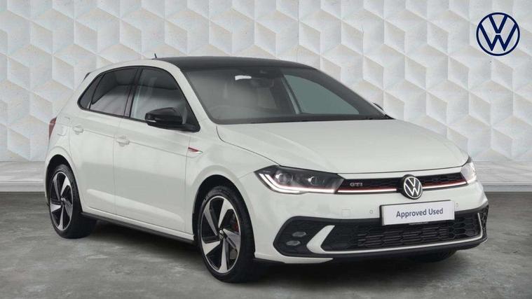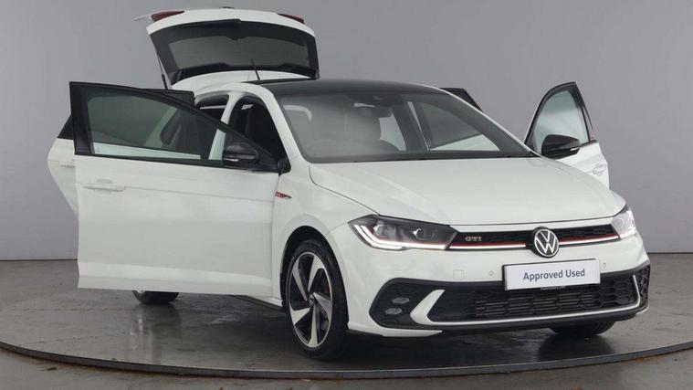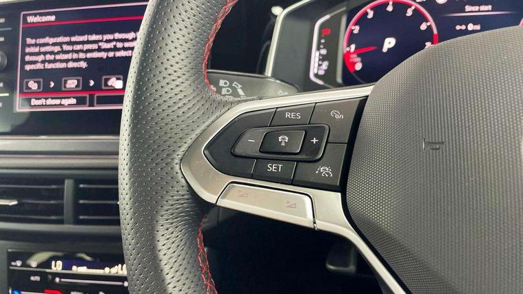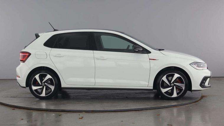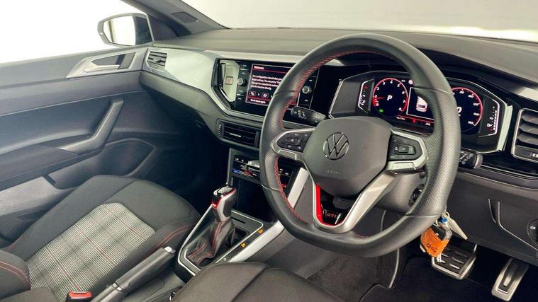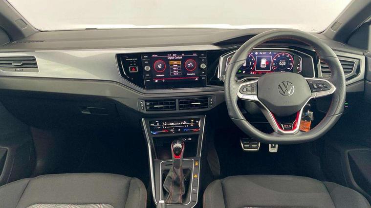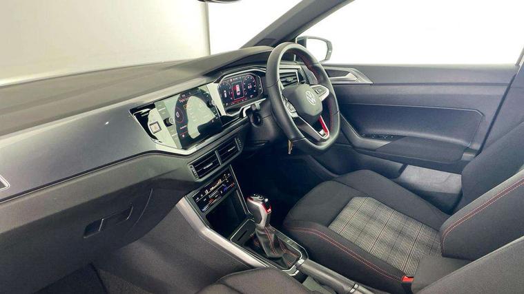 Adaptive cruise control with follow-to-stop and speed limiter, Advanced driver attention and drowsiness monitor, Bluetooth mobile phone interface, Digital Cockpit Pro with 10.25" Display, Dynamic road sign display, Eco mode, Emergency call service, Multifunction camera, Power assisted speed sensitive steering, Preparation for We connect and We connect plus, Speedo and rev counter, electronic odometer, trip, service interval display and fuel gauge, Travel Assist - Lane keeping system and traffic jam assist, Travel assist including emergency assist, Trip computer, Warning signal and warning light for front and rear seatbelts not fastened, Washer fluid level indicator, Wireless app connect, Adaptive chassis control, Front wheel drive, Heavy duty rear axle, Rear shock absorpion sports version, Sports select suspension lowered by 15mm, Start-stop system with battery regeneration (recuperation - energy recovery during braking), DAB Digital radio, Diversity antenna for FM reception, Front and rear 6 speakers, Body colour bumpers, Body colour door handles, Electric front windows, Front scuff plates in aluminium with GTI logo, Heat insulating glass windscreen, Power folding adjustable/heated exterior mirrors and front passenger exterior mirror lowering function, Rain sensor, Rear electric windows, Rear fog light, Rear side wing doors, Rear windscreen washer and wiper with interval delay, Sport bumpers with air intakes with honeycomb structure, Third brake light, Twin chrome exhaust tailpipes, 12V power socket in centre console, 2 USB-C ports in the front, 2 USB-C charging sockets on the center console in the rear, 3 rear head restraints, 60/40 split folding rear seat and rear seat bench not split, Air care climatronic air conditoning system with active combination filter and 2-zone temperature control, Black roof lining, Carpet mats, front and rear, Chrome plated radiator grille inserts, air vent surrounds and light switch surrounds, Door and side trim panel, Driver and front passenger seat height adjustment, Driver/passenger sunvisors with illuminated vanity mirrors, Front centre armrest, Front footwell illumination, Front seat backrest storage pockets, GTI sports gearshift knob in aluminium leather, Handbrake lever handle in leather, Headliner in recycled material, Isofix child seat preparation easy-fit (for two outer rear seats, and front passenger seat) compatible with I-size, LED interior light with switch off delay and dimmer, 2 reading lights front and rear, Luggage compartment cover, Luggage compartment floor, Luggage compartment lighting, Lumbar adjustment for front seats, Single front passenger seat, Stainless steel pedals, Standard pedal cluster, Three spoke leather wrapped multifunction sports steering wheel with shifting paddles, IQ LED matrix headlights pack - Polo, Light and sight pack - Polo GTI, 3 point height adj front seatbelts + pretensioners, 3x3 point rear seatbelts, ABS, Driver and front passenger airbag with front passenger airbag deactivation, Drivers and front passengers safety optimised head restraints, ESC (Electronic stability control) + EDL (Electronic Differntial lock) and ASR (Traction control), Extended and predictive pedestrian/ cyclist protection, Front and rear disc brakes with red brake calipers, Front curtain and side airbags with center airbag, Hill hold control, Manual child lock in rear doors, Two tone horn, Tyre pressure loss indicator, Alarm with interior protection, Anti-theft alarm system with interior monitoring, backup horn, and towing protection, Anti-theft wheel bolts, Electronic engine immobiliser, Chrome applications on rotary light, mirror adjustment, window regulator switches, outlet with frame in black, Low rolling resistance tyres,