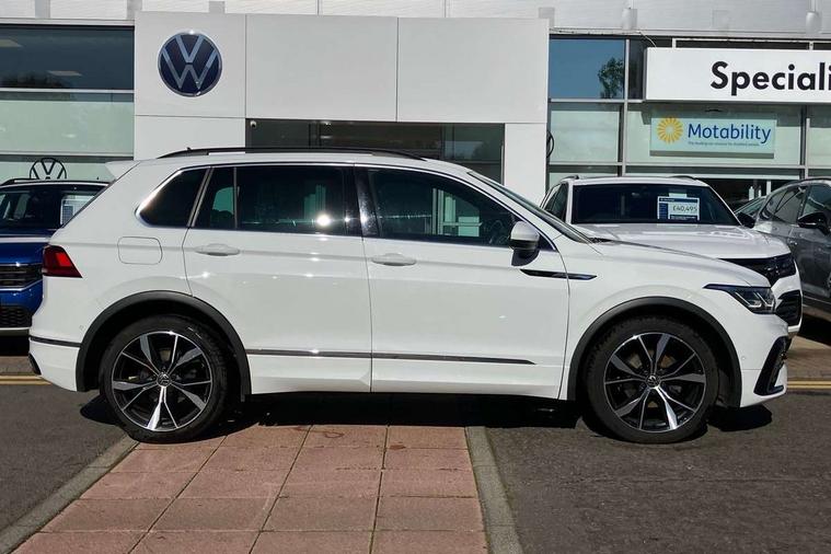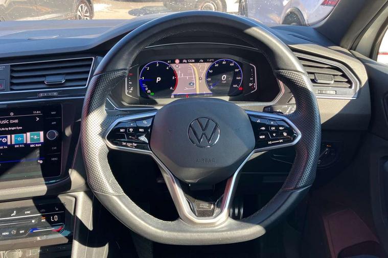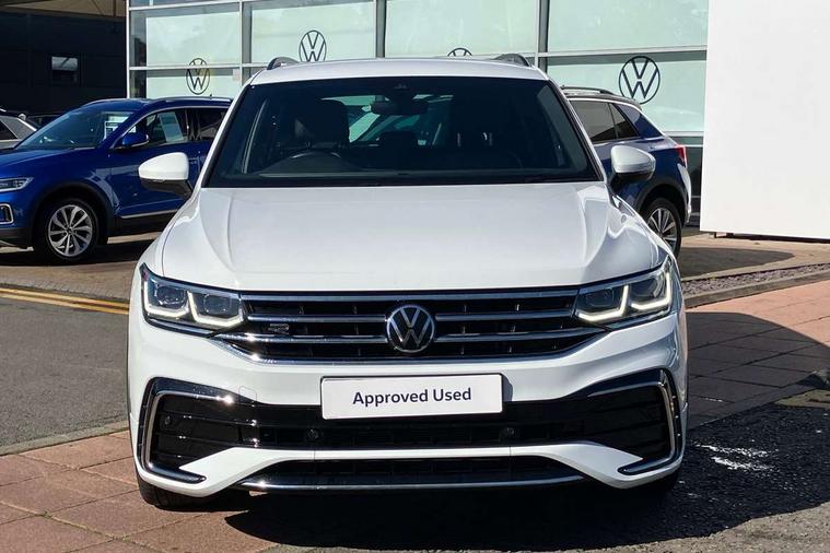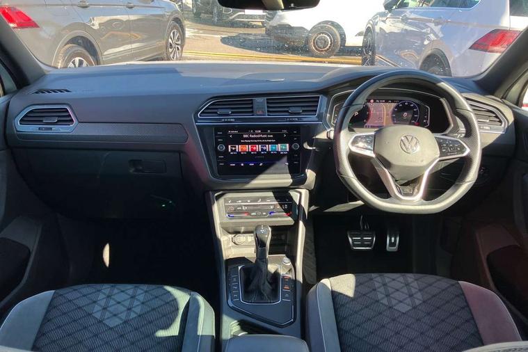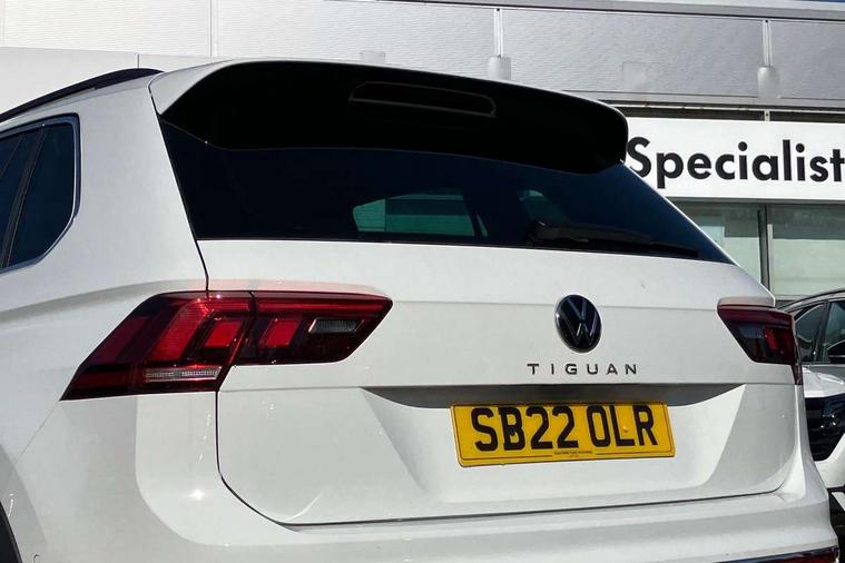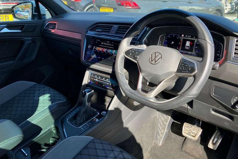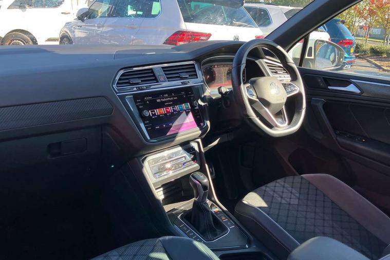Adaptive cruise control ACC stop and go including speed limiter, App-Connect incl. App-Connect Wireless for Apple CarPlay and Android Auto, Bluetooth phone integration system, Distance control assist, Driver alert system, Driver profile selection, Dynamic road sign display, eCall emergency call system, Electromechanical speed sensitive power steering, Engine start/stop button, Lane keeping system Lane Assist, Lights on warning, Multifunction front facing camera, Outside temperature display, Premium multifunction display with multi colour display, Remote control boot opening, Rev counter, Revision / skills operating concept travel assistant, Service interval indicator, Speed limit display, Start/stop system with regenerative braking, Trip computer, Warning sound and light for doors and tailgate open, Battery regeneration during braking, Diesel particulate filter, Misfuel prevention device for diesel engine, Selective Catalytic Reduction, XDS electronic differential lock for improved traction and handling, 4 X 20 watt output, 8 Speakers, Diversity antenna for FM reception, Radio, SD card slot, Simultaneous pairing of 2 compatible mobile devices, SMS functionality - read, compose and send SMS messages using touch-screen display, Title and cover art display, USB C ports, Auto dimming interior rear view mirror, Automatic headlight control system, Body colour door handles, Chrome moldings on the side windows, Coming/leaving home lighting function, Dynamic headlight range control, Front and rear electric windows, Heated rear window, High level 3rd brake light, Laminated safety glass windshield, heat and sound insulating, LED headlamps with LED separate daytime running light and dynamic cornering light, LED rear combination lamps, LED rear number plate lights, License plate carrier in front and rear, Poor weather light and cornering light, R Line body kit, R Line side sills, Rain sensor windscreen wipers, Rear exhaust tailpipe, Rear fog lamp, Rear side wing doors, Rear spoiler in R style, Rear windscreen washer and wiper with interval delay, Side and rear windows in heat insulating glass, Trailer Stability Programme, Unique R Line badging, Windscreen wipers/ intermittent wipe + 4 position delay, 12V outlet in center console rear and in luggage compartment, 12V outlet in front and tray, 2 cup holders in front, 2 LED front reading lights, 2 LED rear reading lights, 3 bench rear seats in 2nd row, 3 rear headrests, 4 load lashing points, 40:20:40 split folding rear seats, Air Care Climatronic 3 zone automatic climate control with enhanced air filter and controls in the rear, Backrest release for left front seat, Black headlining, Brushed stainless steel pedals and footrest, Carpet mats in front and rear with decorative stitching in Gray, Climate control unit rear with touch function, Door and side trim panel in foam film, insert in leatherette, Front centre armrest, Front footwell illumination, Front seats head restraints (x-adjustment), Height adjustable front seats, Height/reach adjust steering wheel, Instrument lighting white adjustable panel illumination, Interior light with delay, Isofix Preparation 2 Rear child seats, Leather gear knob, Lockable cooled glovebox, Luggage compartment lighting, Luggage net, Rear bench seat asymetrically split folding, longitudinally movable and folding with load-through hatch and center armrest, Remote unlocking for rear seat backrest, Removable luggage cover, Removable rear headrests, Safety optimised front head restraints, Single front passenger seat, Sliding/reclining rear seats, Standard rear seat release, Storage compartment in driver's door, Storage compartment in passenger's door, Storage compartment in rear doors, Storage compartments in luggage area left and right, Storage tray on dashboard, Sun visors with illuminated vanity mirrors, Top front comfort seats, Variable boot floor, height adjustable and removable, Driver assistance pack plus - Tiguan DSG, 3 point seat belt for centre rear seats, 3 point seat belts with seat belt pretensioners for the outer rear seats, Active bonnet, Curtain airbags for front and rear passengers, Driver/Front Passenger airbags, Drivers knee airbag, Electronic parking brake with auto hold, Electronic Stability Control with driver steering recommendation, ABS, ASR, EDL, EDTC and trailer stabilization, Front assist with autonomous emergency braking (for Adaptive Cruise Control ACC up to 130 mph), Front disc brakes, Front passenger airbag deactivation, Front side airbags, Height adjustable front 3 point seatbelts + pretensioners, Hill hold control, Manual child proof rear door locks, Pedestrian monitoring system, Power assisted brakes, Proactive passenger protection system in combination with front assist, Rear disc brakes, Rigid safety cell with front and rear crumple zones, Two tone horn, Warning sound and light for front seat belts if unfastened, Anti theft alarm system with interior monitoring, backup horn and towing protection, Anti theft wheel bolts, Electronic engine immobiliser, Tool kit,